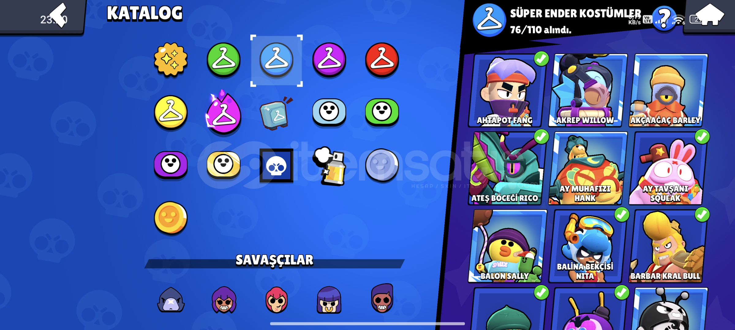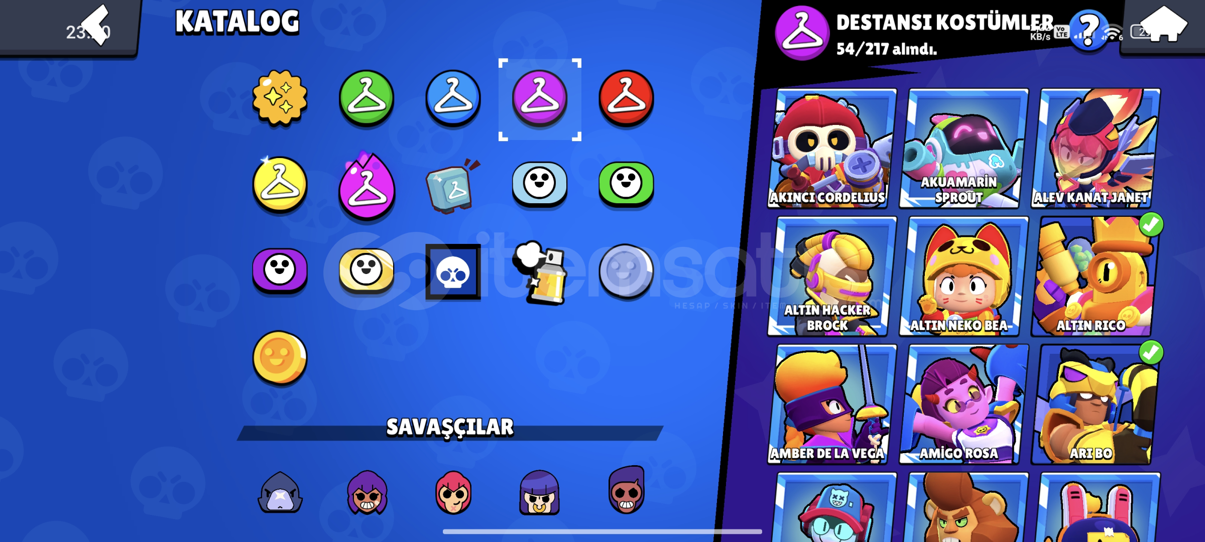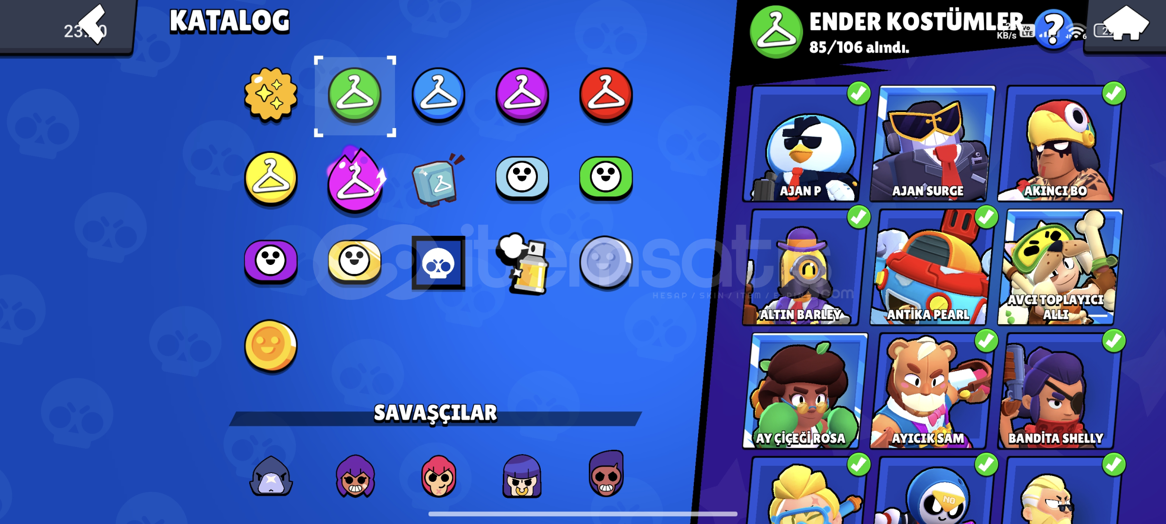 10 tane 1k savaşçı 300+ kostüm 4 gümüş 1 altın kostüm 2019 hesabı eski kostümlerde fazlasıyla vardır piper mainler için harika bir hesap