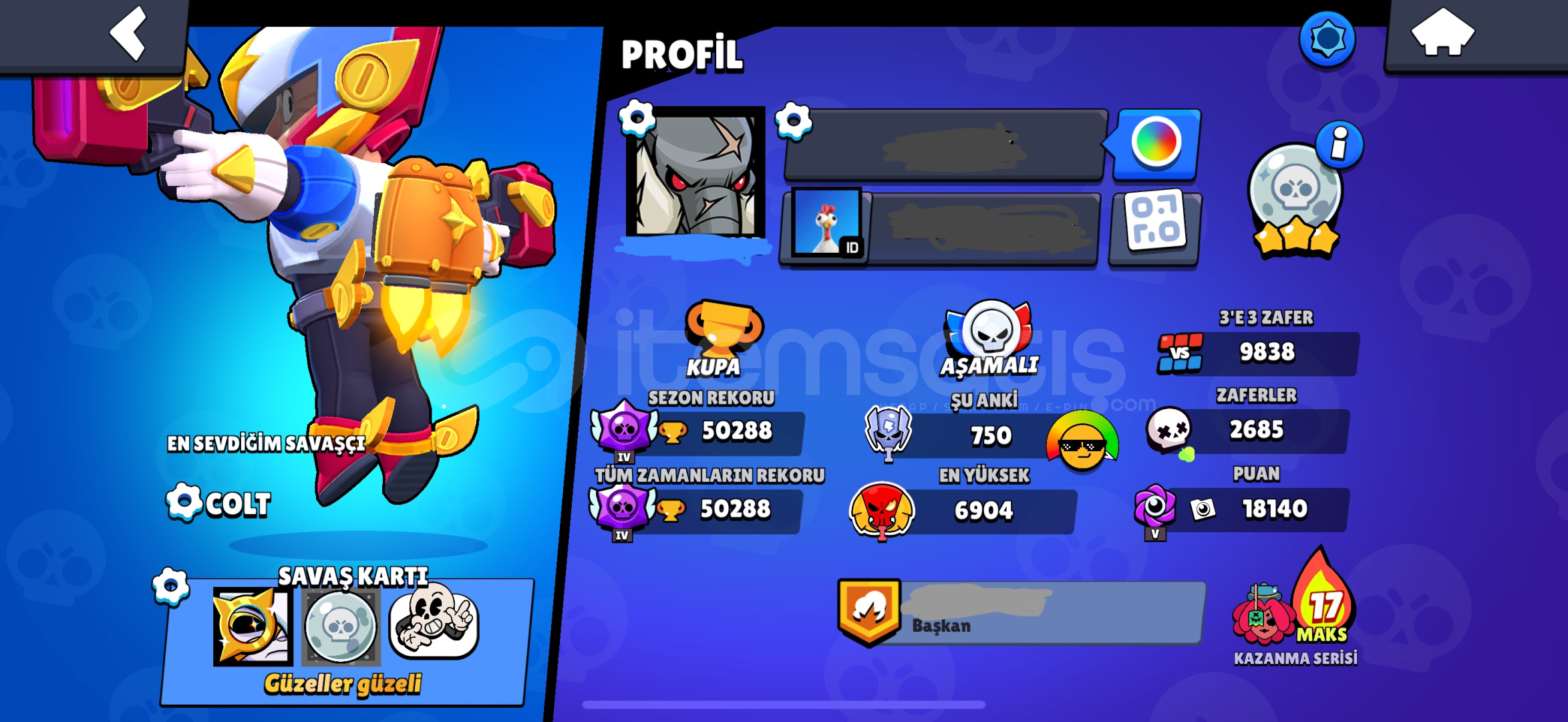5 BİN KUPALI CLASH ROYALE HESABIDA PAKETE DAHİLDİR!!•İSTEDİĞİNİZ MAİL HESABINA AKTARILIRHESAPTA BULUNANLAR:•7 Efsanevi Skin•4 Hiperşarj Skin•11 Gizemli Skin•78 Destansı Skin•7 tane Ünvan•9800 3’e 3 zafer•Ay Şöhreti 3•95 Karakter•180 Elmas 4k mücevher•Brawl Pass indirimli-Uygun Fiyatlı Fırsat Hesabıdır, paraya ihtiyacım olduğundan uc...
