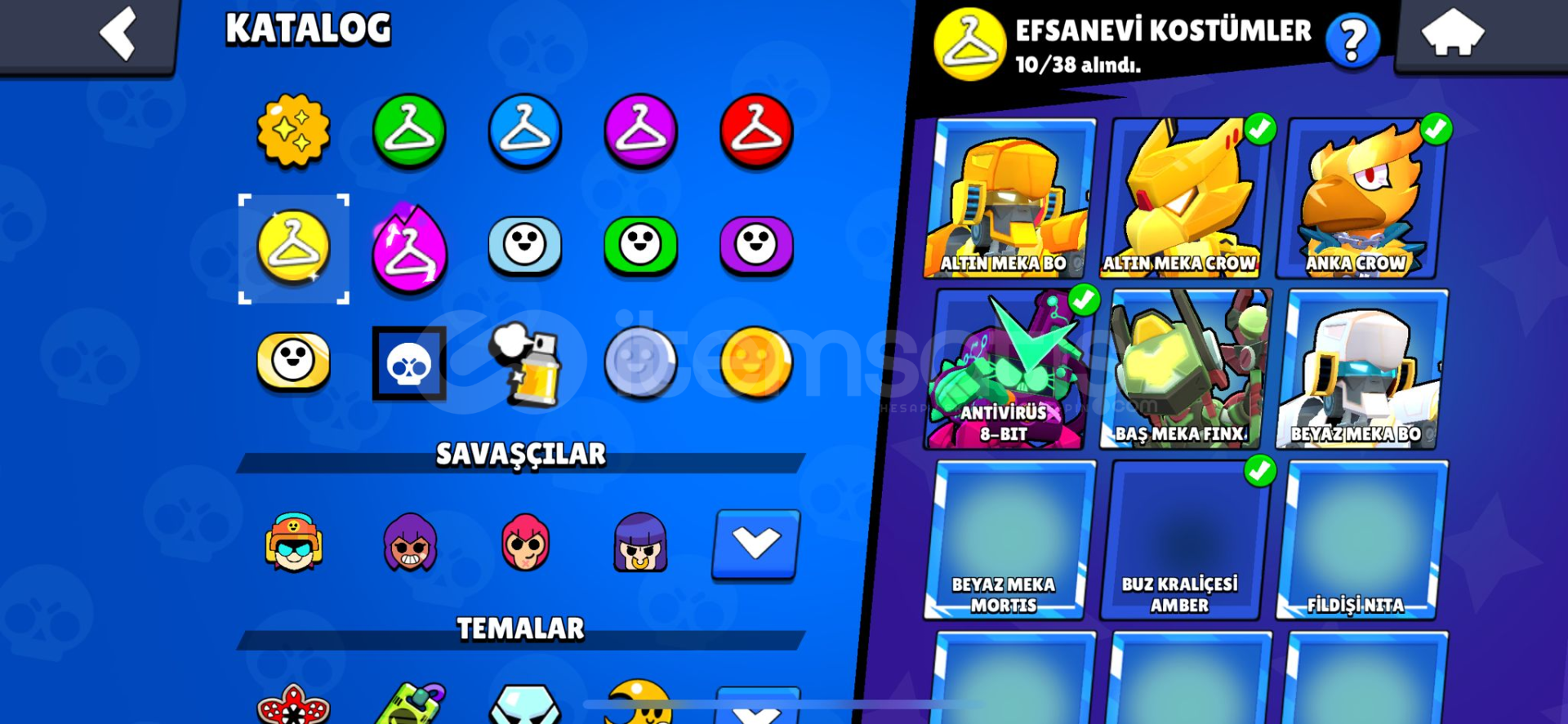 214 KOSTUMU VARDIR BUNLAR: 85 ENDER KOSTUM, 67 SÜPER ENDER KOSTUM, 42 DESTANSI KOSTUM, 8 GİZEMLİ KOSTUM, 10 EFSANEVİ KOSTUM,5 HİPERŞARJ KOSTUM,0 SAF GÜMÜŞ, 1 SAF ALTIN KOSTUM VARDIR