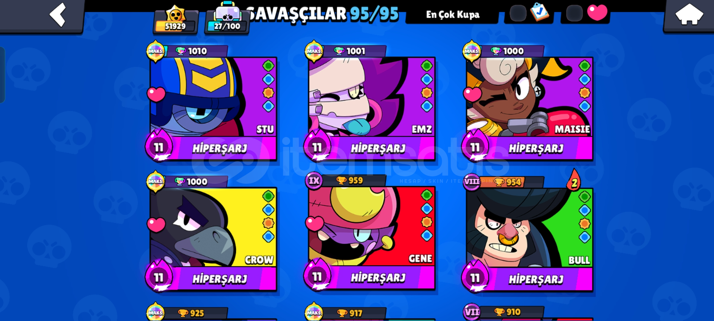 51kKaraktetler FullSayısız kostüm300 pp simgesi180 spreyTüm karaktetler en az 9 seviyeSayısız hiperşarz level basmadıklarımda var400+ efsanevi rozetPazarlık vardır alana hayırlı olsun