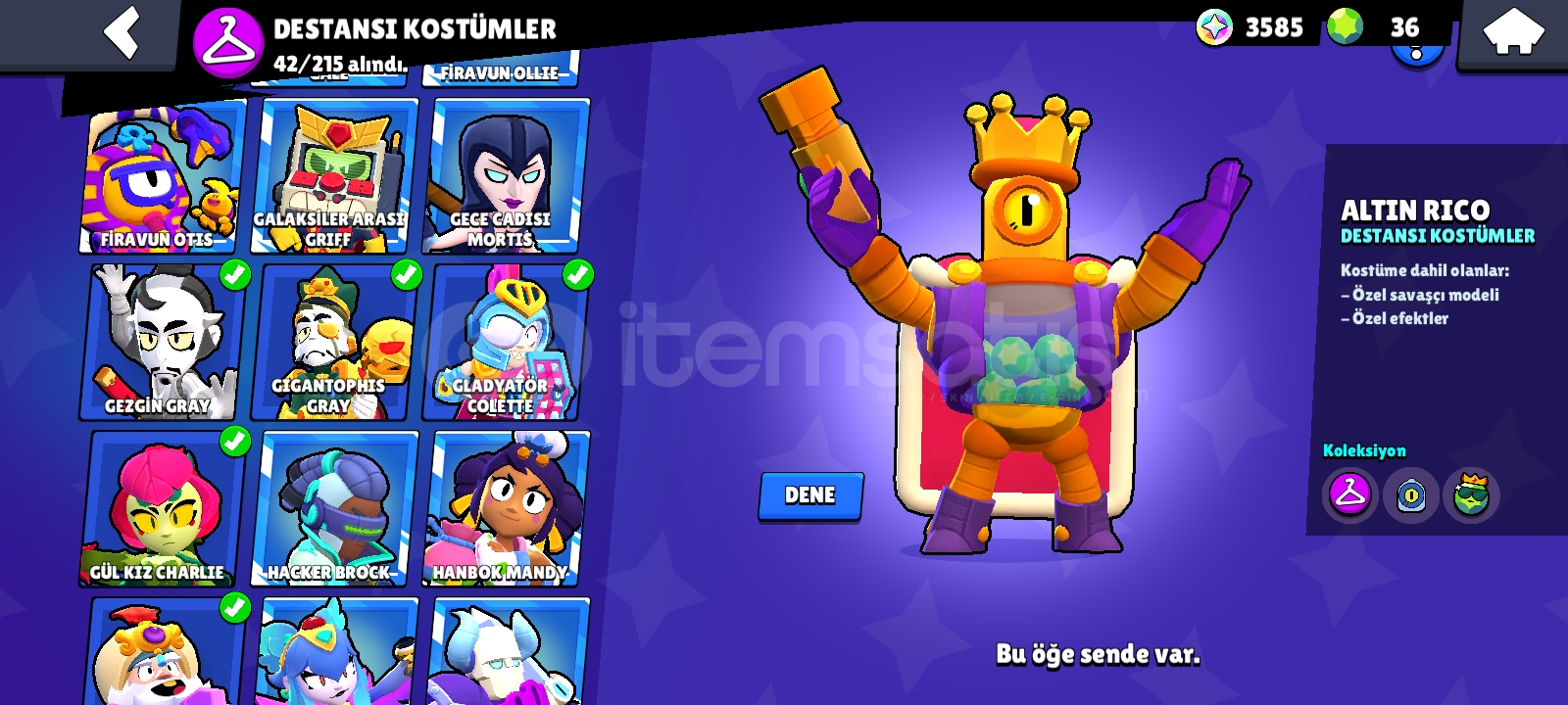 2019 BAŞLANGIÇLI 12ADET 1K KAREKTER 73 ADET ENDER KOSTÜM 67 ADET SÜPER ENDER KOSTÜM 42 ADET DESTANSI KOSTÜM 3 ADET G...