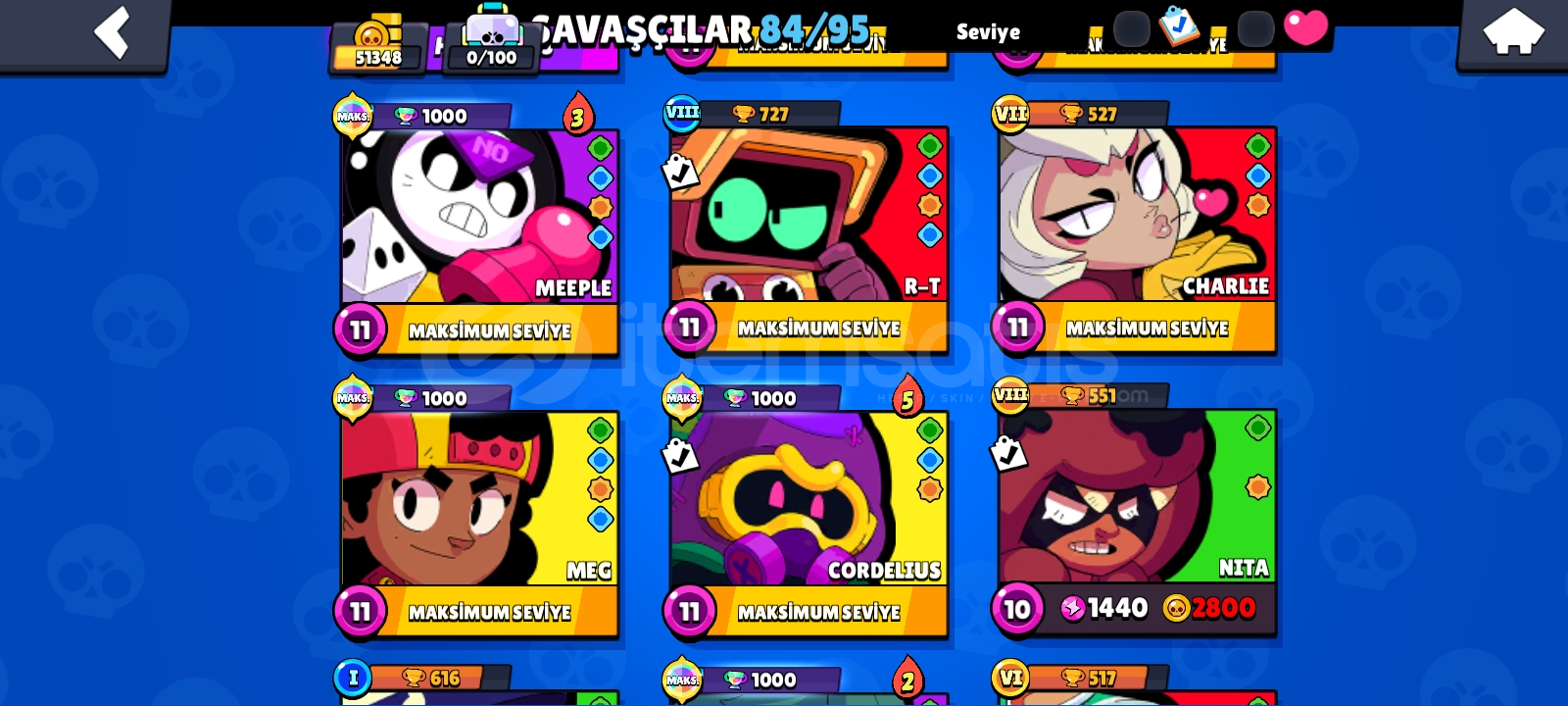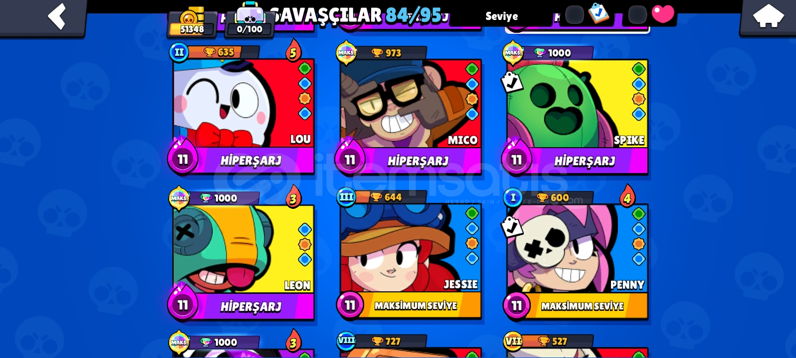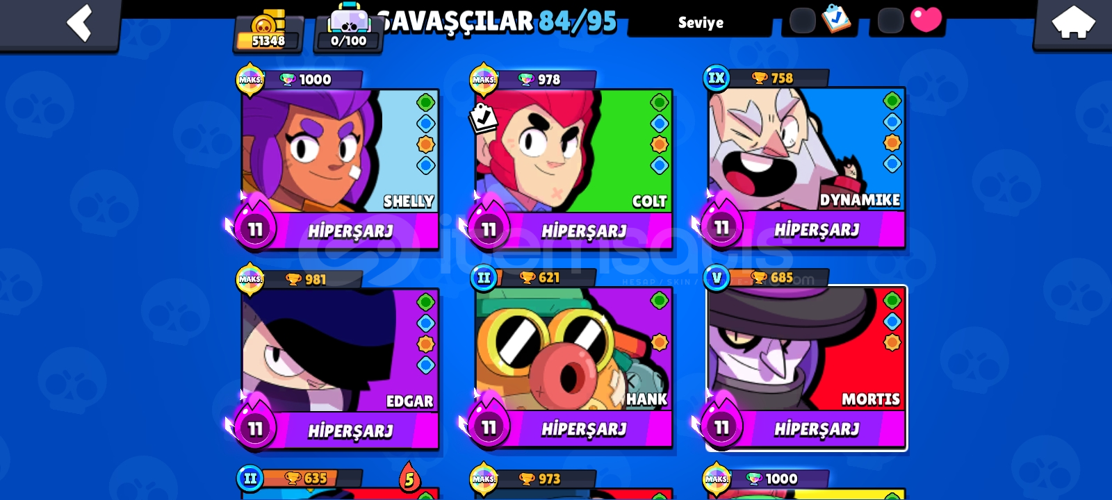 51 BİN KUPA⚡84 KARAKTER MEVCUT 17 MAX KARAKTER 10 HİPERŞARJ KARAKTER⚡150+SKIN BULUNUYOR 2 ÖZEL ÜNVAN VARDIR⚡