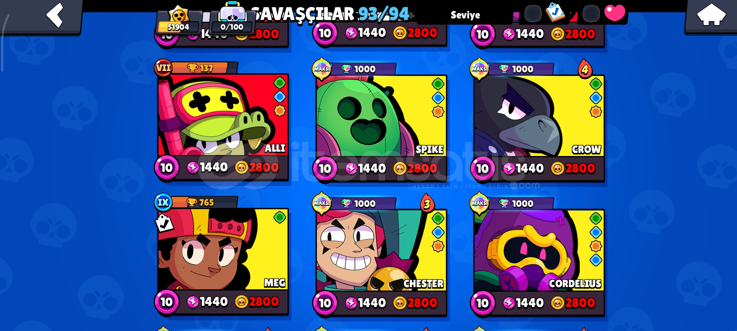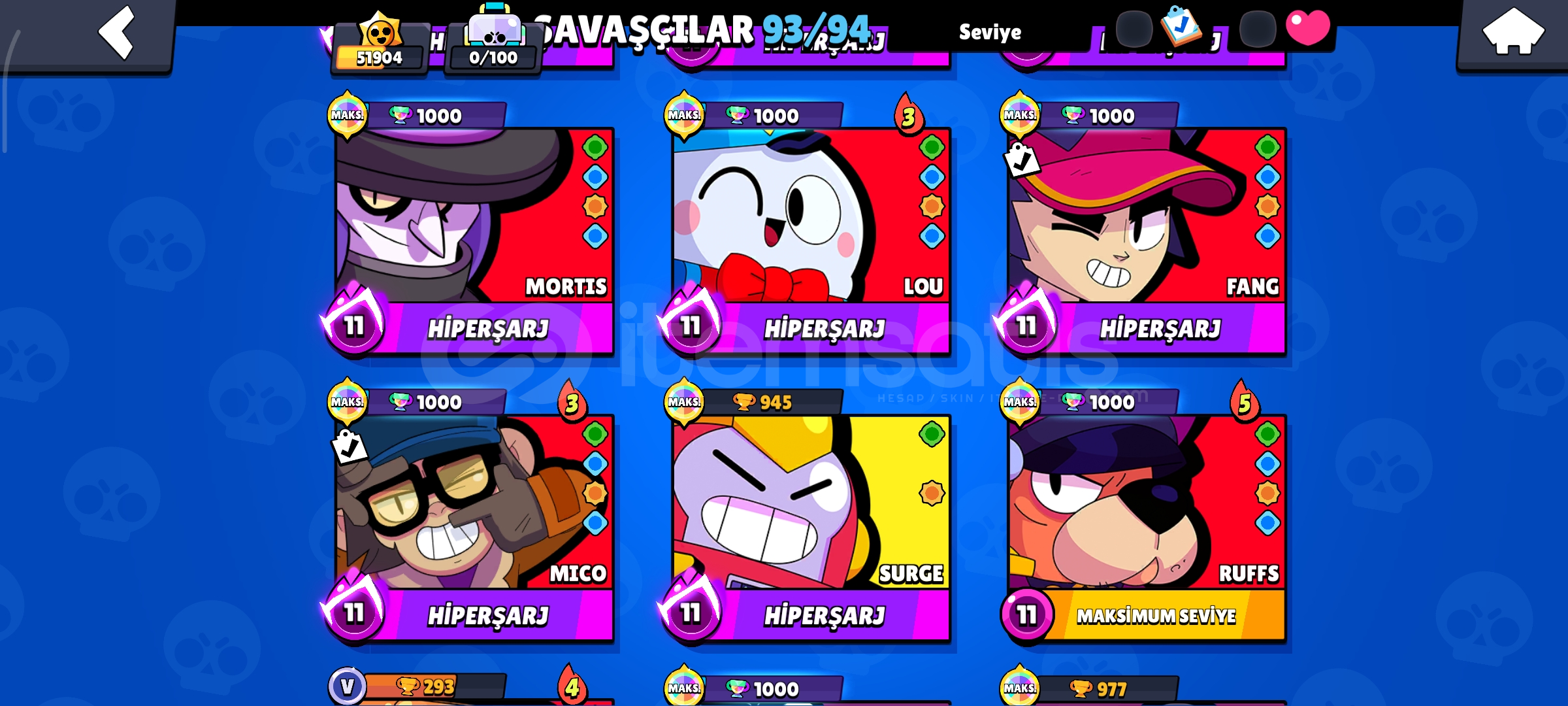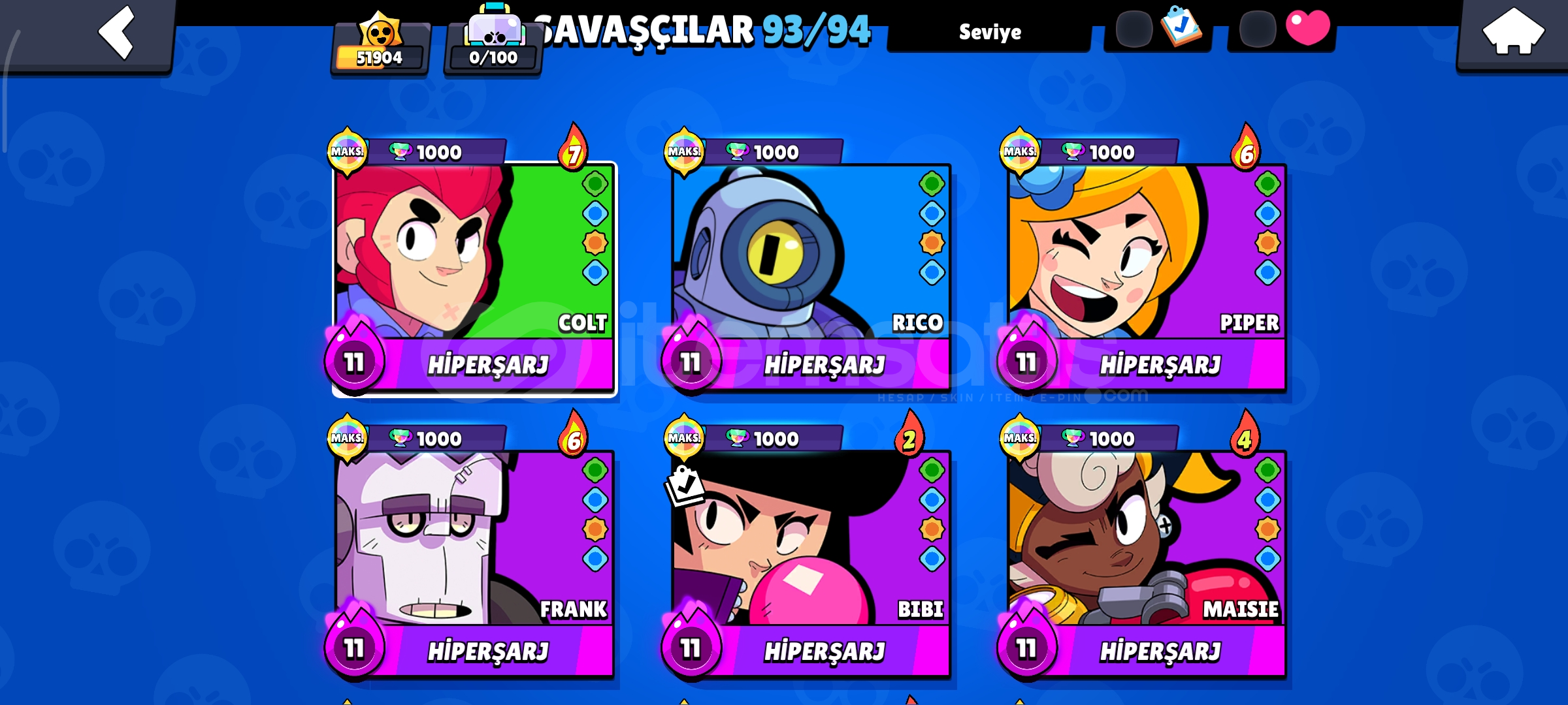 93 karakter-11 tane sv11 hiperli savaşcı-16 tane sv11 savaşcı-34 tane 1.000 kupa karakter-...... Ender kostum 64-super ender 75- destansı 56- efsanevi 5- hiperşarj 2-kayıt kartı 5- dünya şöhreti-5 açık ünvan-... Korsan colt-......pazarlığa açık hesap, alödan geçen pişman kalır