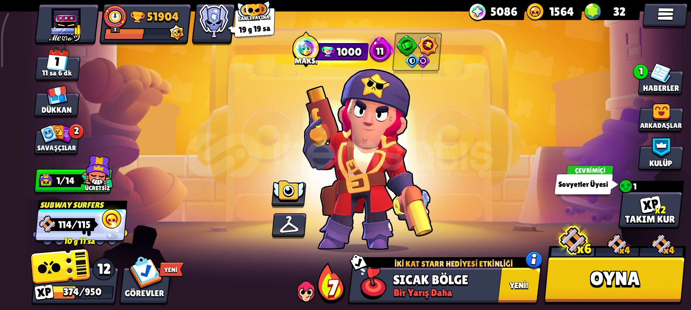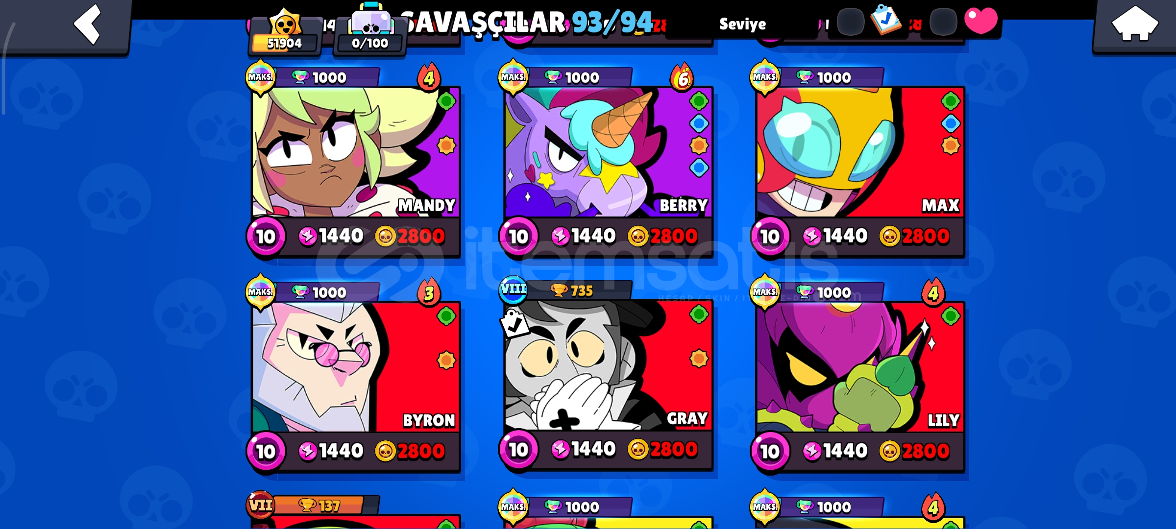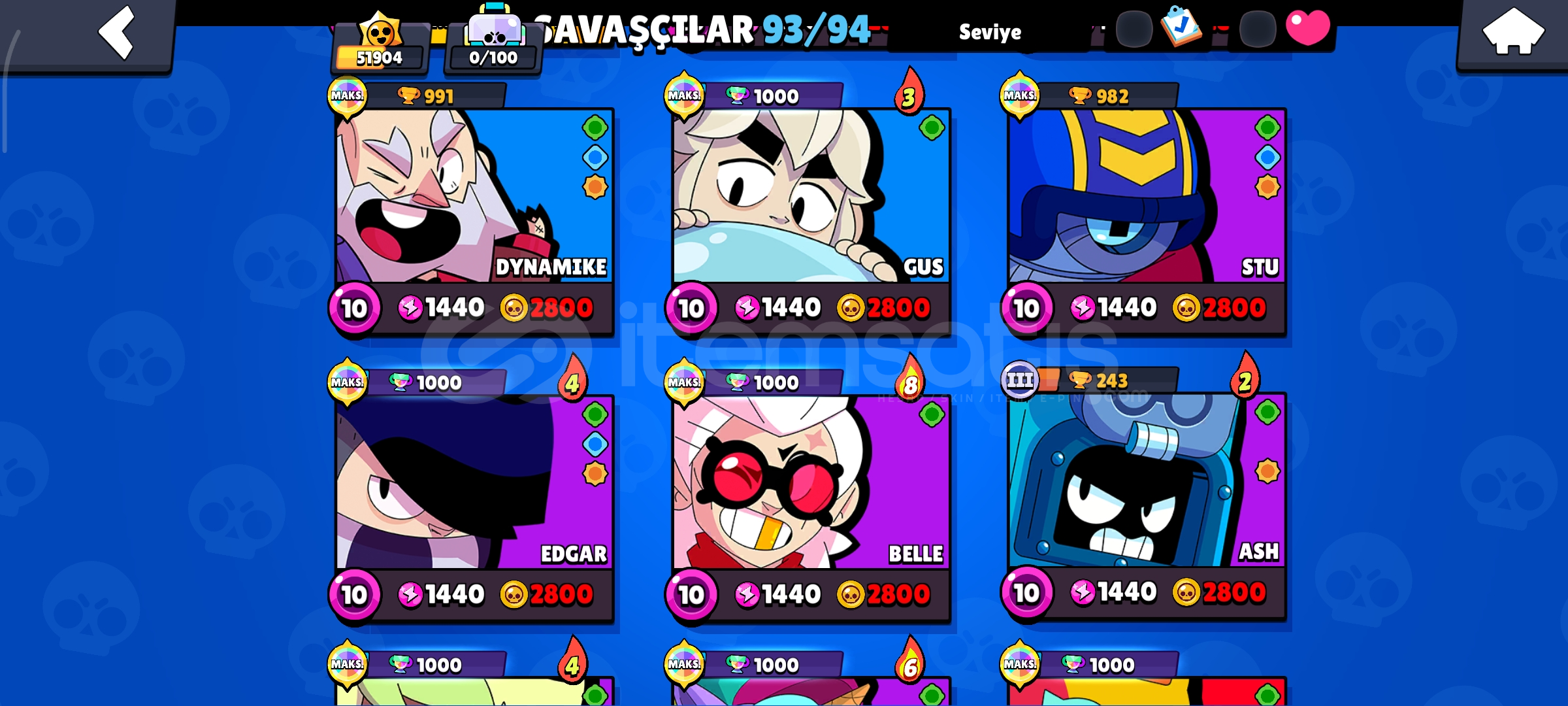 93 karakter-11 tane sv11 hiperli savaşcı-16 tane sv11 savaşcı-34 tane 1.000 kupa karakter-...... Ender kostum 64-super ender 75- destansı 56- efsanevi 5- hiperşarj 2-kayıt kartı 5- dünya şöhreti-5 açık ünvan-... Korsan colt-......pazarlığa açık hesap, alödan geçen pişman kalır