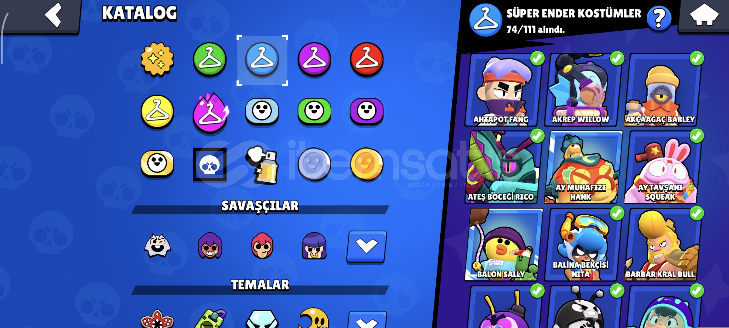 53.238 KUPA 96 KARAKTER FULL ÇOĞU 1 K VE FULL KARAKTERLERTERTEMİZ HESAP MAİL BOŞ ÜZERİNİZE YAPILIR GOOGLEDAN 218 KOSTÜM 87 ENDER 74 SÜPER ENDER 45 DESTANSI 6 GİZEMLİ 2 EFSANEVİ 3 HİPERSARJ 1 ALTIN KOSTÜM KOSTÜMLER ÇOĞU NADİR DÖNEMSEL SAĞLAM KOSTÜMLER BRAWL PASS İNDİRİMİ MEVCUT 65 TLFIRSAT HESABI KAÇIRILMAZ