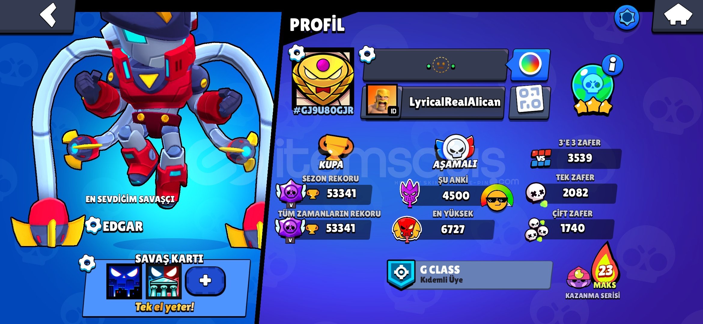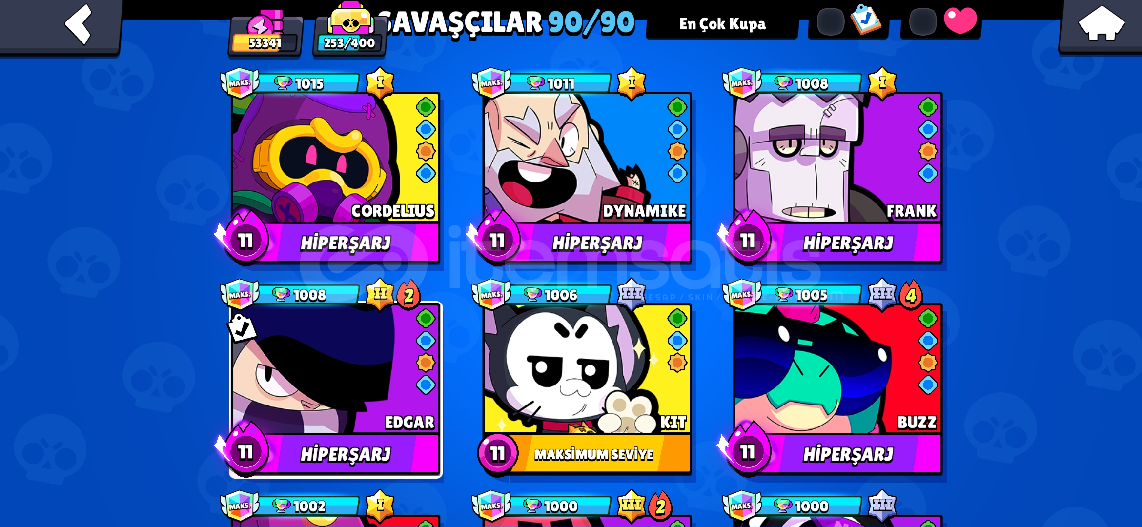 -53.5K KUPA-90 KARAKTER (33MAX)-250+ KARAKTER-15 KEZ BRAWL PASS ALINMIŞTIR KOSTÜMLERİ RESİMLERDE MEVCUTTUR TOPLAM (6000TL LİK)