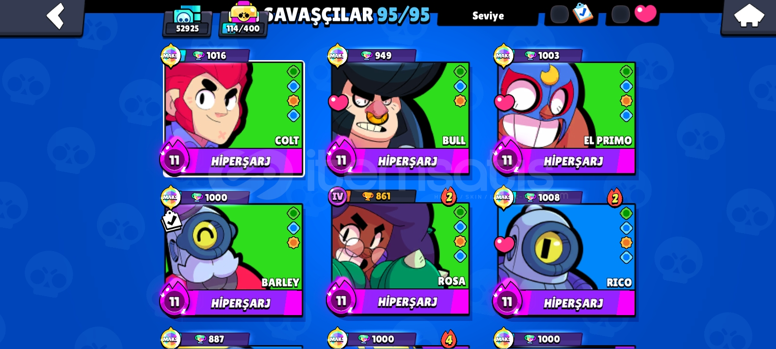 53 BİN KUPA⚡270 +SKINLI BOL NADİR SKIN MEVCUT⚡95/95 KARAKTER VAR 18 MAX 16 HİPERŞARJ KARAKTER⚡16 ÖZEL ÜNVAN