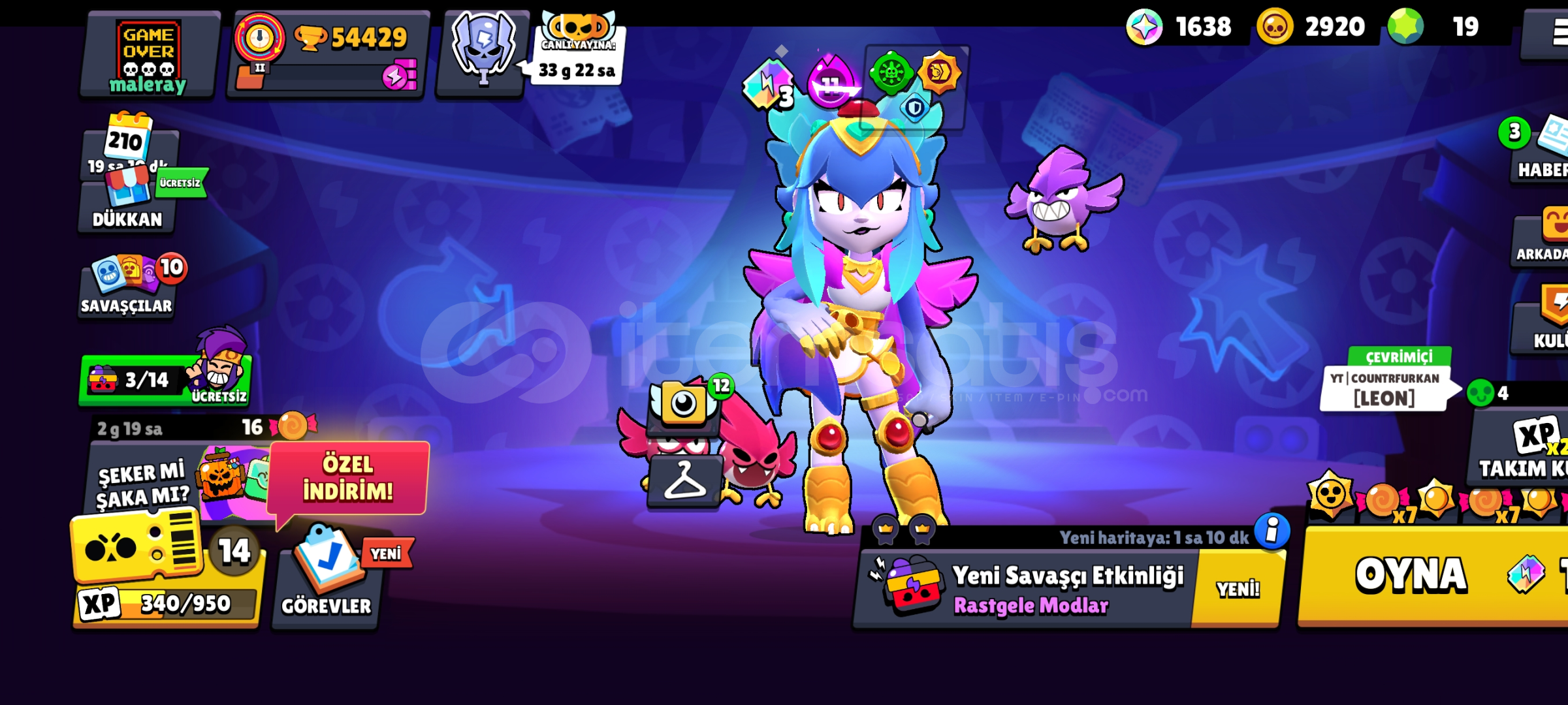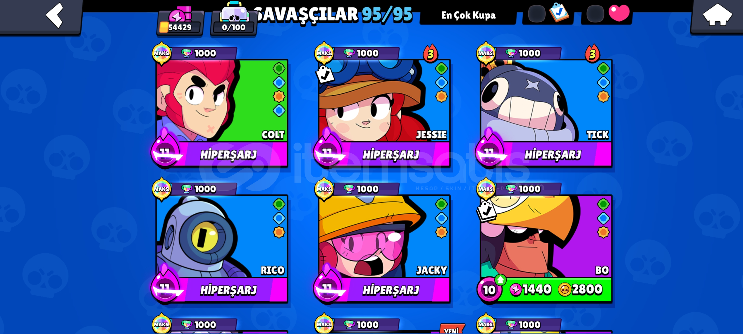 54000 KUPADİR95 KARAKTERİN TAMAMİ VARDİRPAZARLİK YAPİLİR ÖLÜ FİYAT OLMİCAK SEKİLDEAY ŞÖHRETİ DİR2 KERE BRAWLPASS AÇILMIŞTIR190+ KOSTUM VARDİRCOGU KARAKTER MAX VEYA 9 SEVİYE ÜSTÜDÜR40+ HİPERSARJ VARDİROYUNU BIRAKTIĞIMDAN DOLAYİ SATİLİKTİRALANA HAYIRLI UĞURLU OLSUNMESAJLARA DİREK BAKILIR 1 VE 12 ARALİĞİNDA