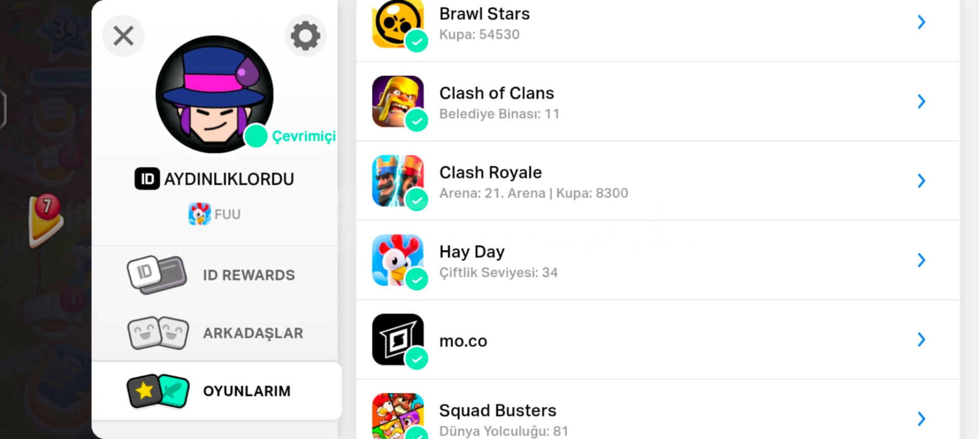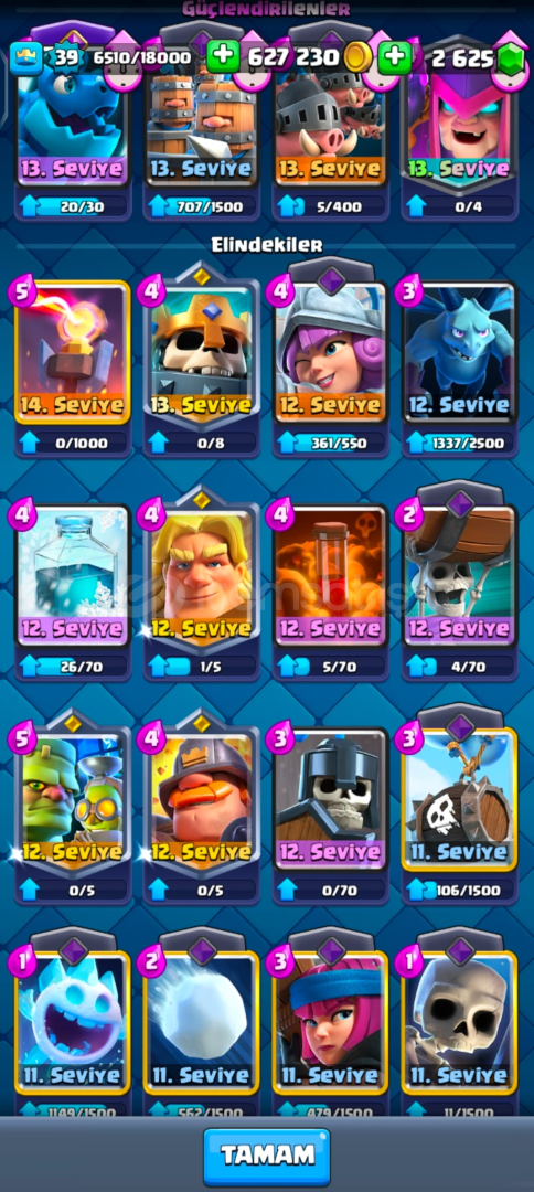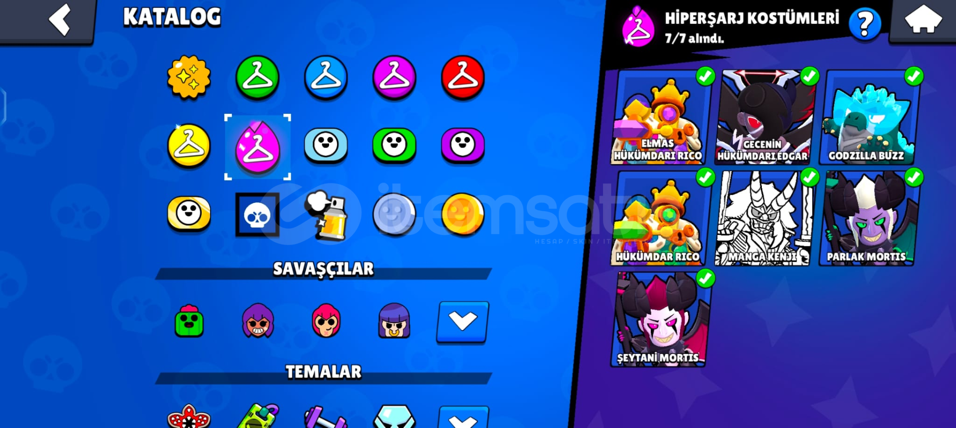BRAWL STARS 54500 KUPA7 HİPERŞARJ KOSTÜM İÇERİR97 KARAKTER246 ELMAS10 EFSANEVİ KOSTÜM8 GİZEMLİ KOSTÜM261 TOPLAM KOSTÜMCLASH ROYALE 8300 KUPA10 EVRİM117 KART (4 KART EKSİK)2625 TAŞCLASH OF CLANSBB11 MAXA YAKIN2 EFSANEVİ BARBAR KRAL KÖSTÜMÜ34 SEVİYE HAYDAY19 SEVİYE MOCO81 SEVİYE SQUAD BUSTERS DETAYLI BİLGİ İSTEYENE ÖZELDEN ATILIR!TESLİM: HESAPIN MAİLİ S...