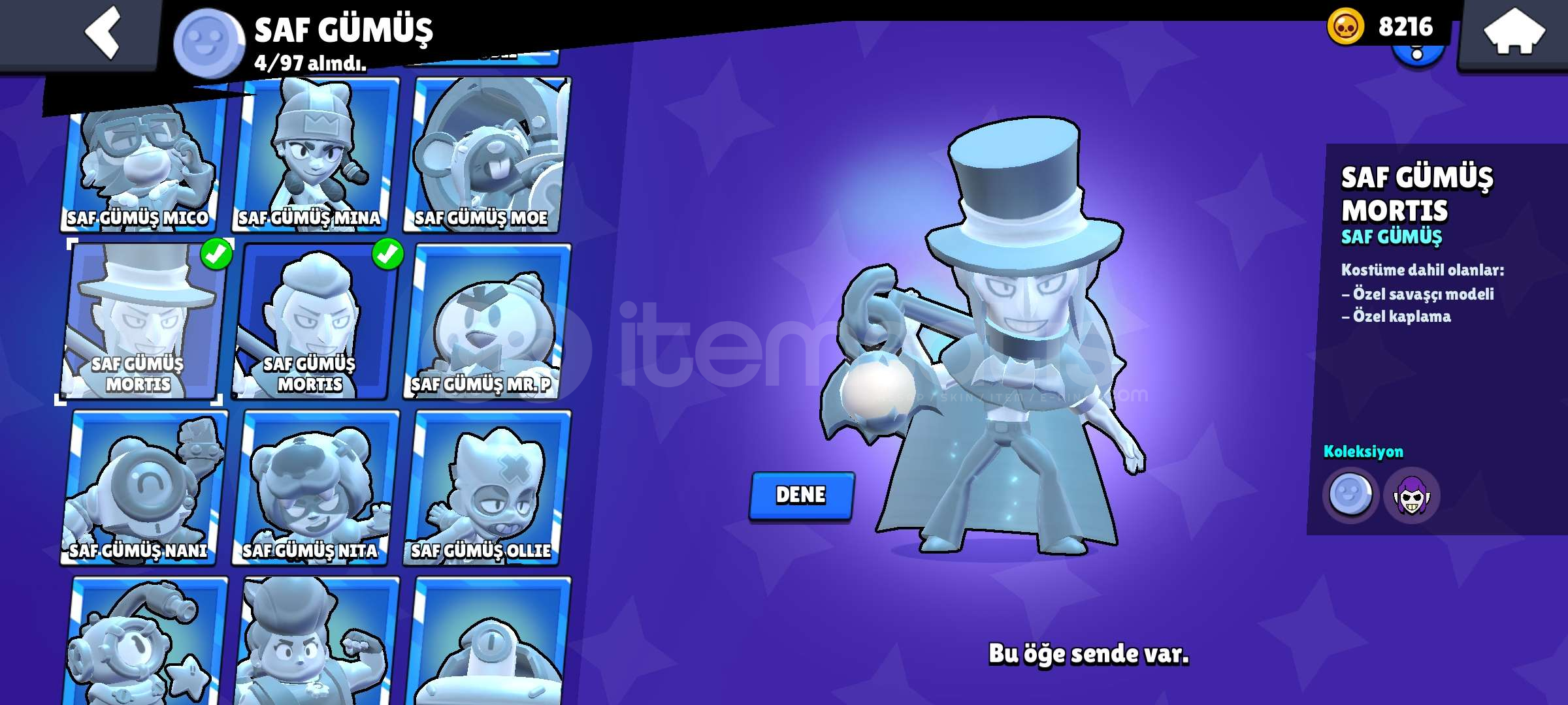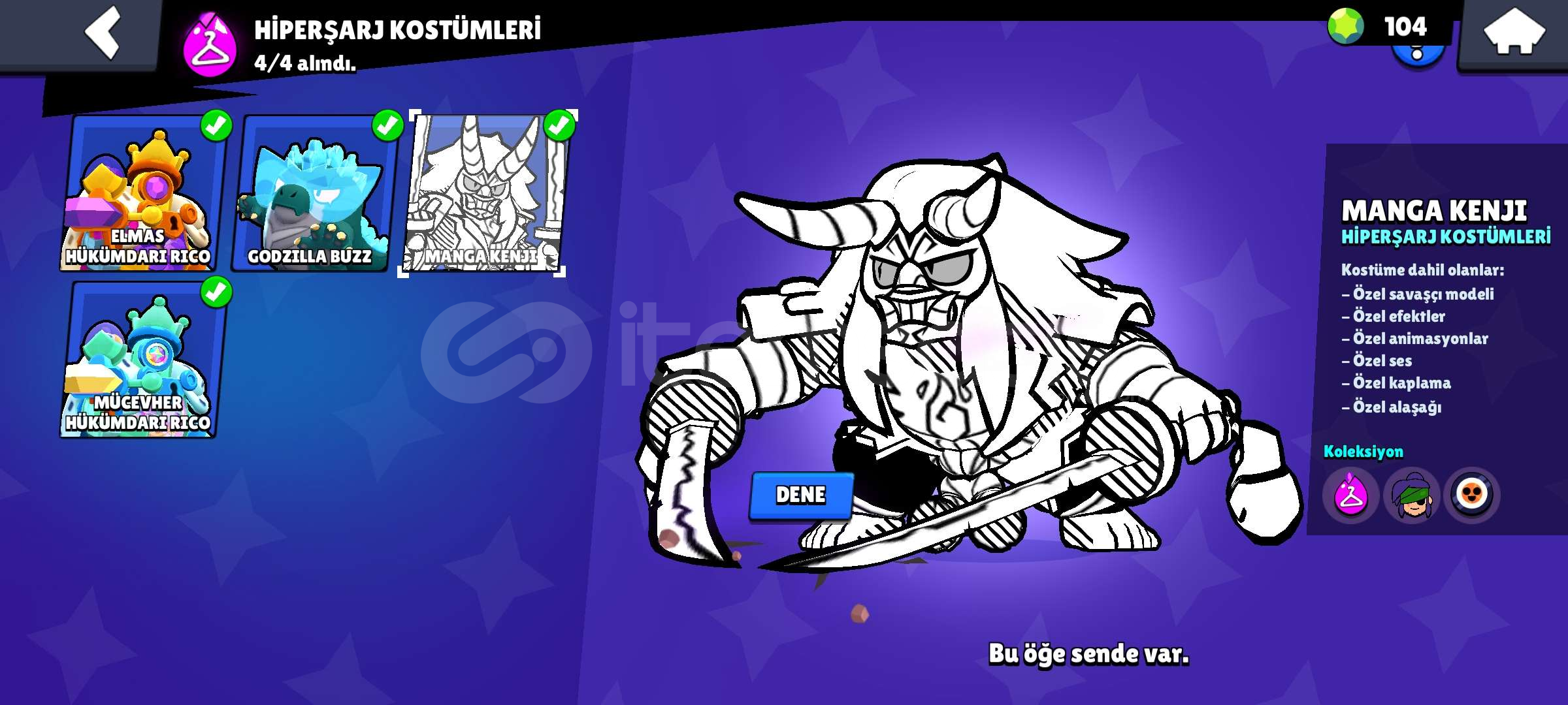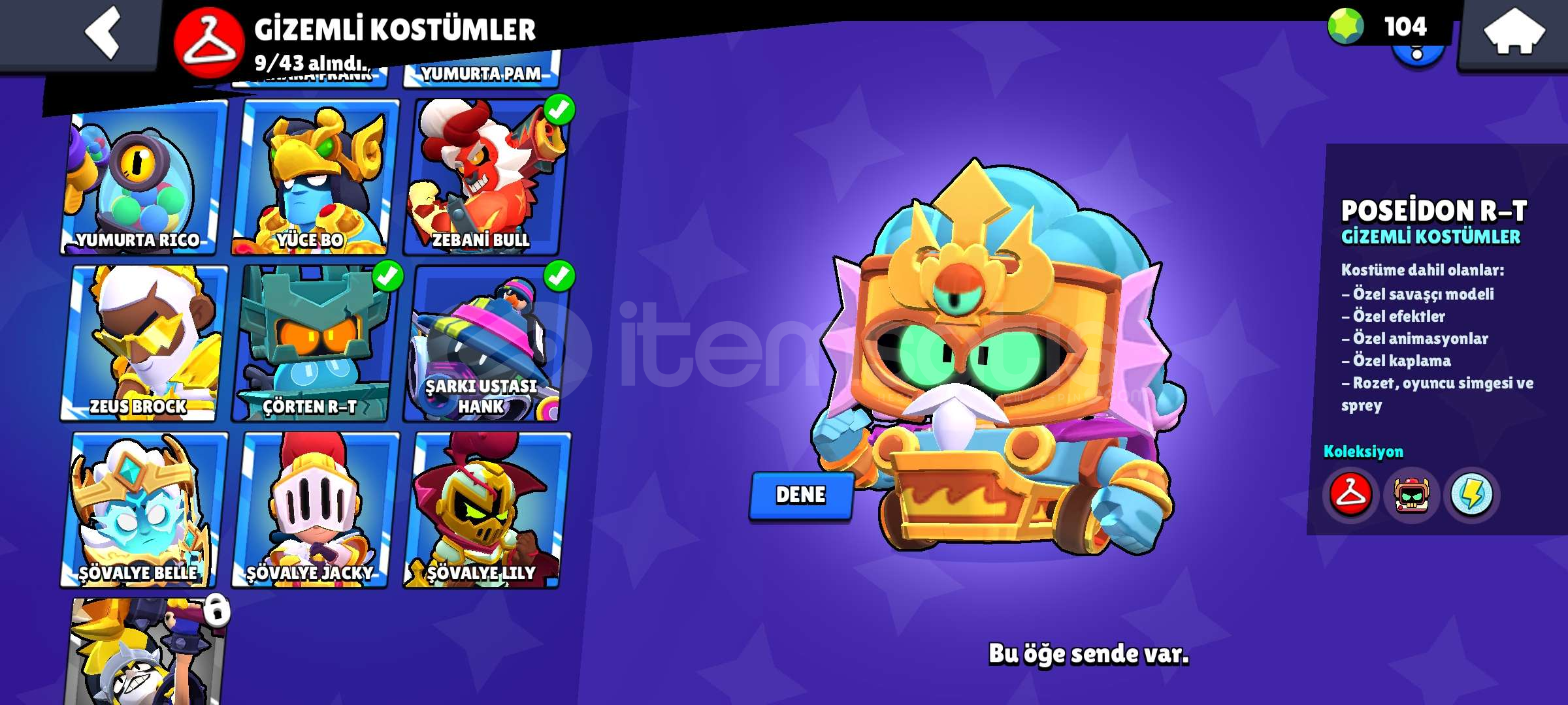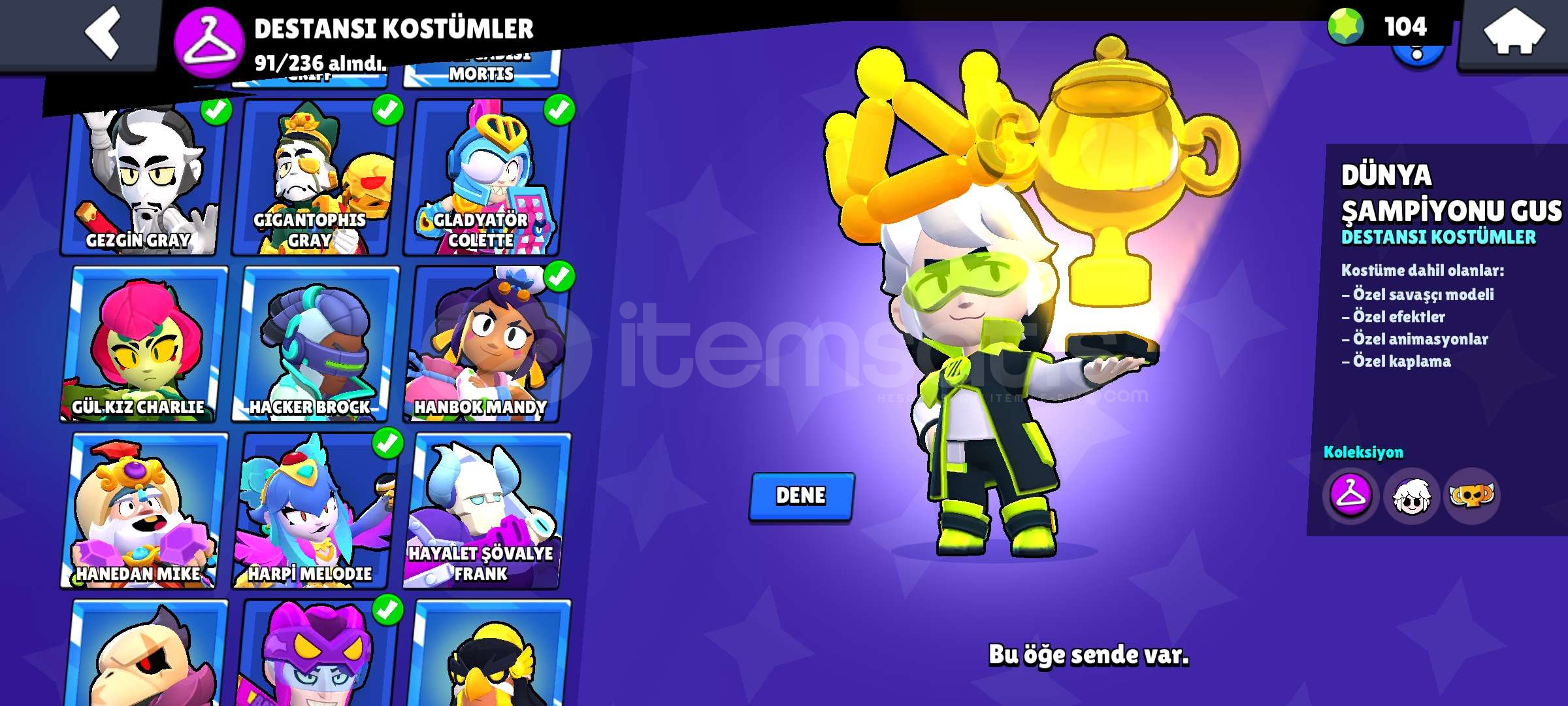 Hesap aktif olarak kullanılmıyor, el değiştirmeye hazırdır.Tüm bilgiler güvenli şekilde devredilecektir.Hesapta hiçbir ban, ceza veya sorun yoktur.Hesapta 54000 Kupa 95 Karakter 35 Adet 11 Seviye karakter vardır, 20 ye yakın 1000 kupa üstü karakter vardır ve bir çok kostüm(birkaç kez BP Plus açılmıştır ve Coltun Pro passi açılmıştır.) ve özel ...