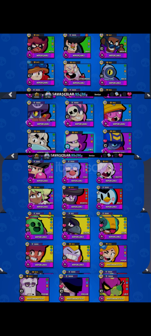 * HESAP 55 BİN KUPA *HESAPTA 290 KOSTÜM BULUNUR *HESAPTA 22 EFSANESİ KOSTÜM BULUNUR *HESAPTA 23 TANE HİPERŞARJ BULUNUR *HESAP HIZLI TESLİM EDİLİR *GMAİL DEĞİŞTİRİLİR*YANINDA EK OLARAK 5600 CLASH ROYALE HESAP HEDİYE
