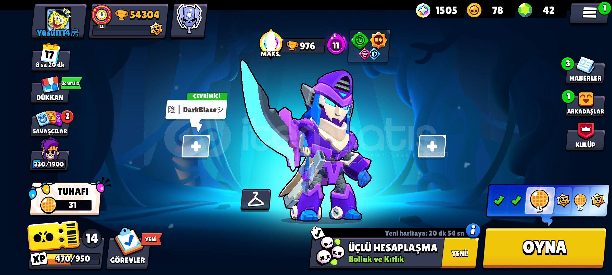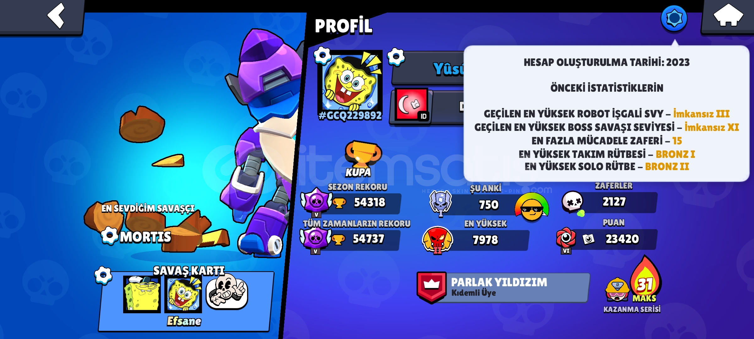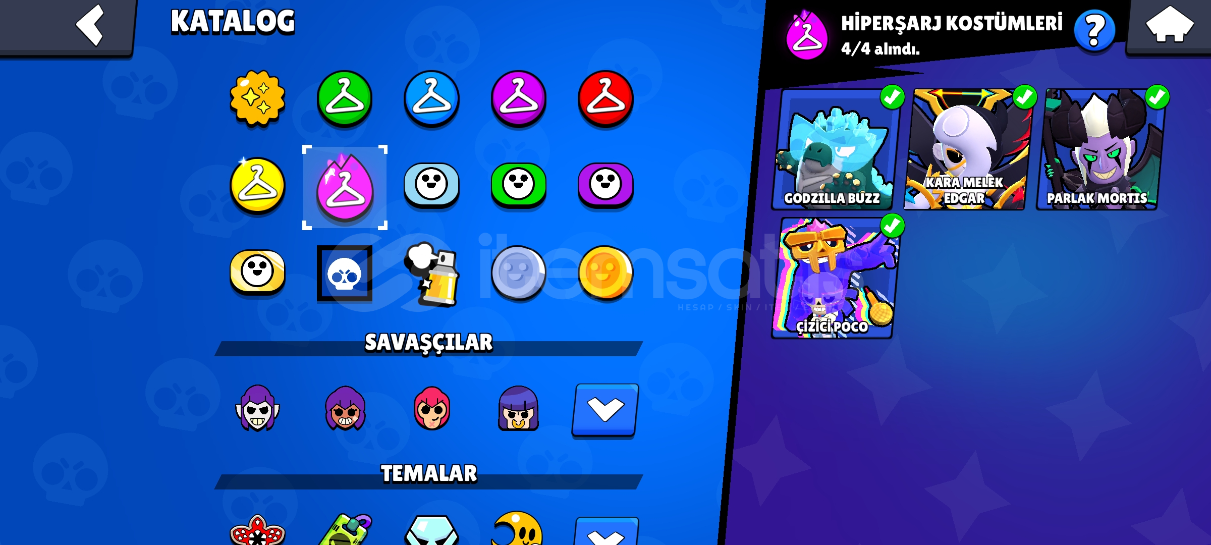 * HESAP 55 BİN KUPA *HESAPTA 290 KOSTÜM BULUNUR *HESAPTA 22 EFSANESİ KOSTÜM BULUNUR *HESAPTA 23 TANE HİPERŞARJ BULUNUR *HESAP HIZLI TESLİM EDİLİR *GMAİL DEĞİŞTİRİLİR*YANINDA EK OLARAK 5600 CLASH ROYALE HESAP HEDİYE