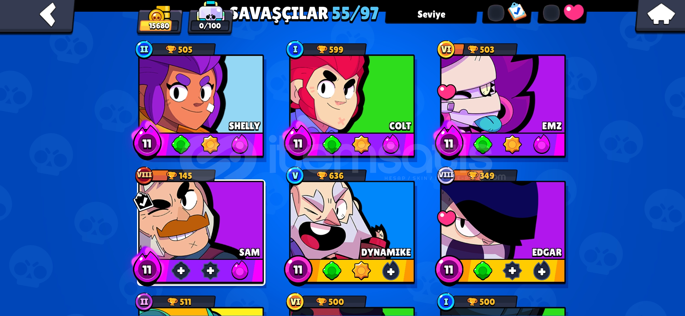 55 tane karekter mevcutdur 15.500 kupa hesapYeni başlayanlara uygun ucuz fiyatlı Bir hesaptr