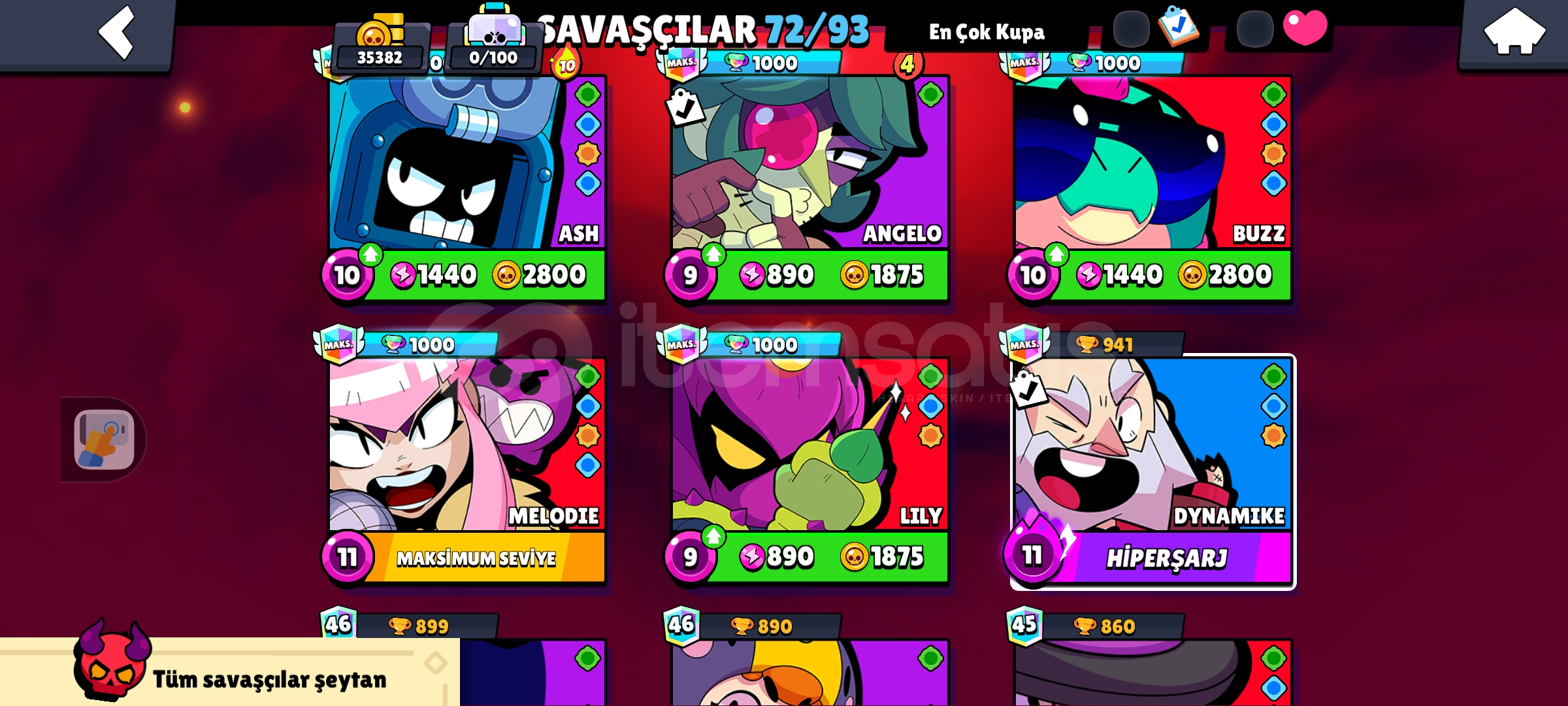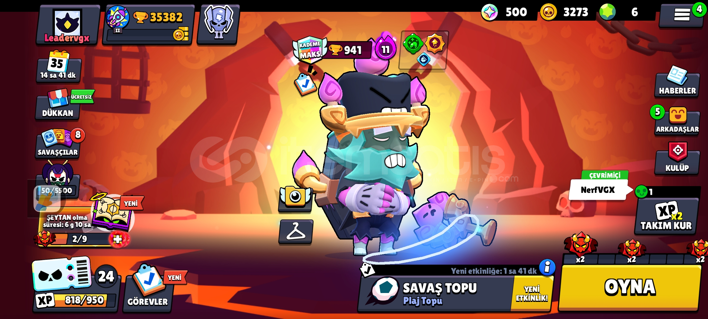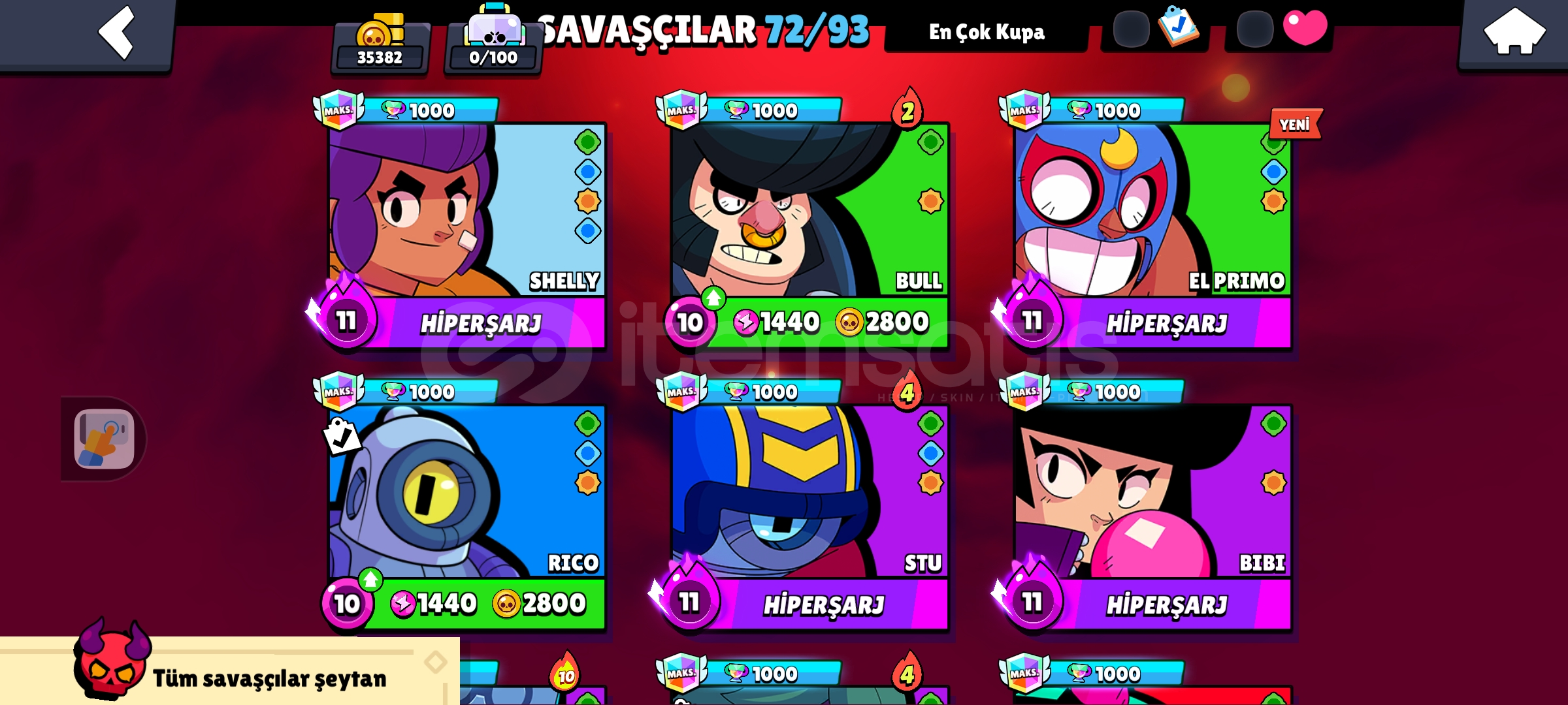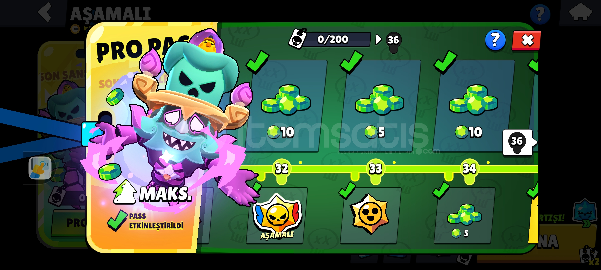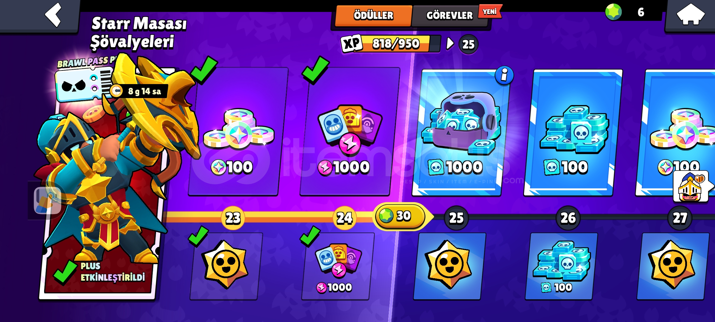 5 kez brawl ps plus 1 kere pro pas 10 tane Max tier hesapta Nerfvgx ekli