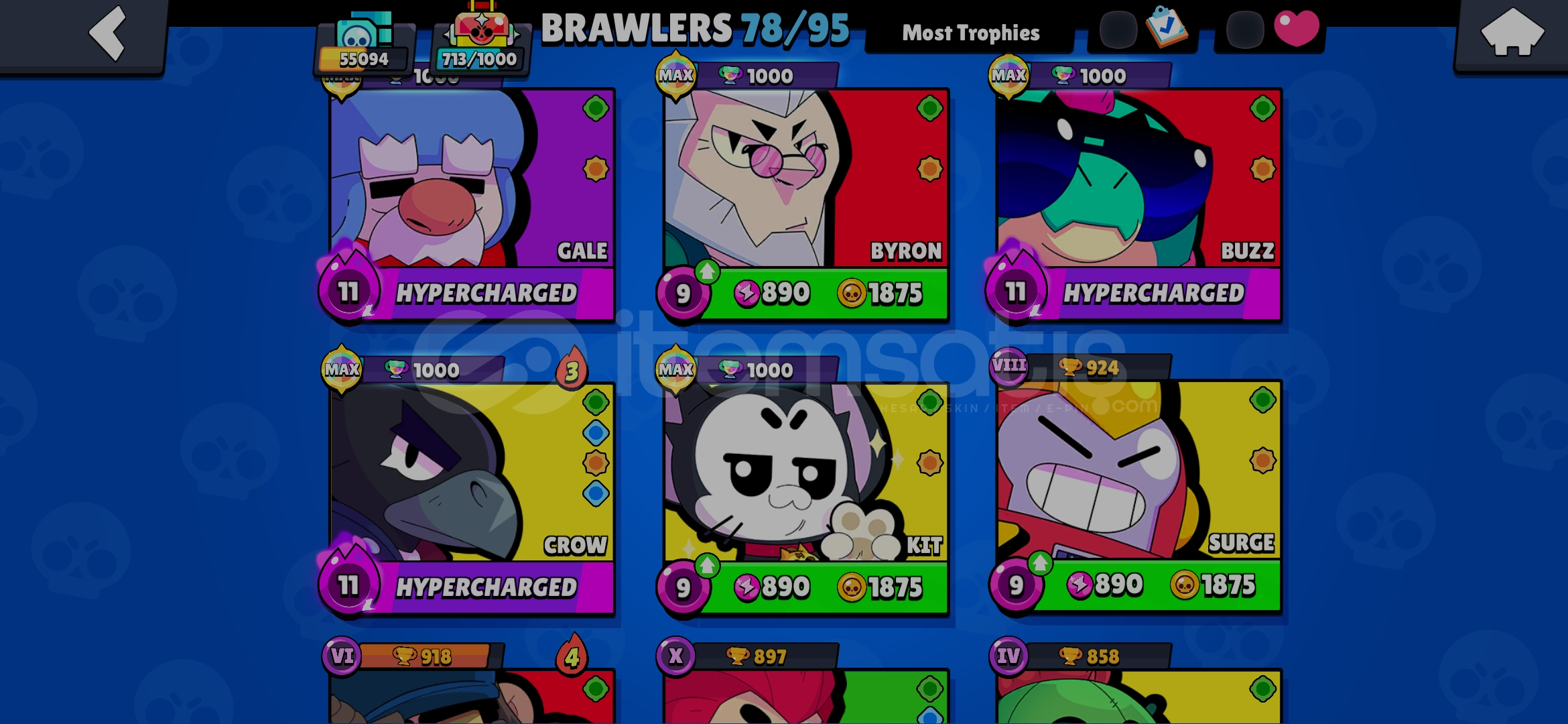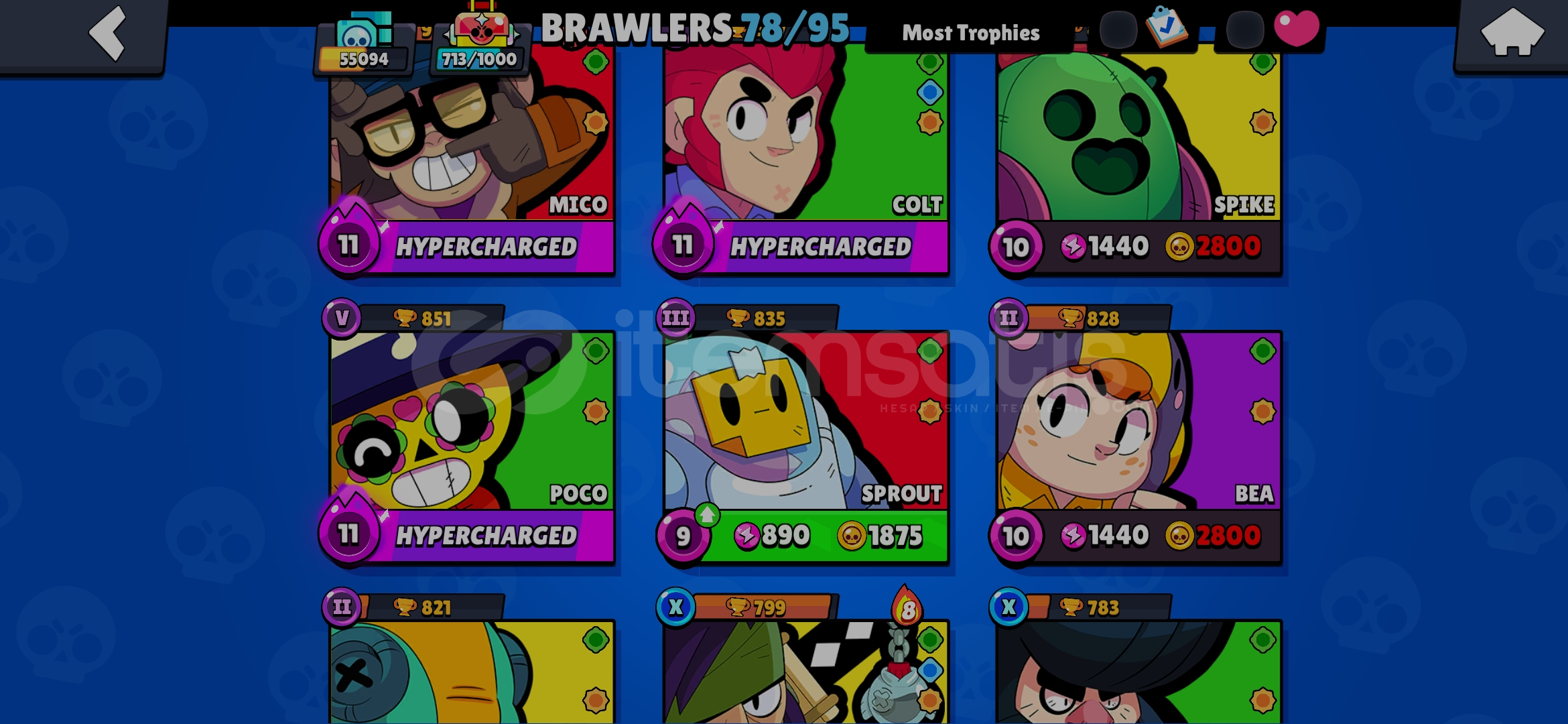 Hesap 55k78 karakteri var200+ kostümü var(6 efsanevi 4 gizemli 3 saf gümüş 1 saf altın).Asamalida efsanevi olmuşYanında 8k kupali CR hesabı varE posta değiştiririzHesaptan çıkış yaparken video atılır