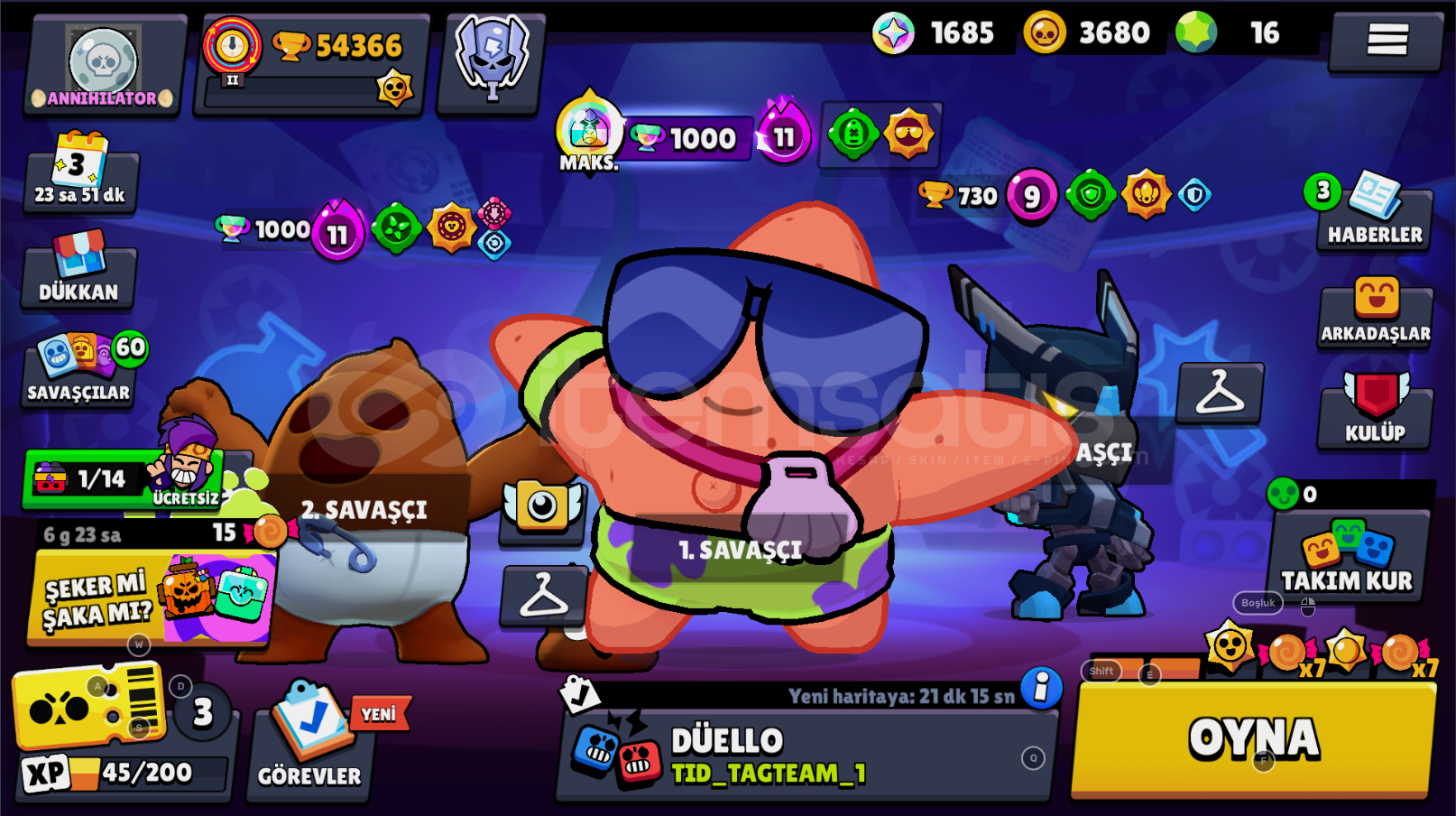 5 Brawlpp Açılmıştır. 6122 3e3 Zafer Vardır, 26 Bin Güç Puanı Vardır.