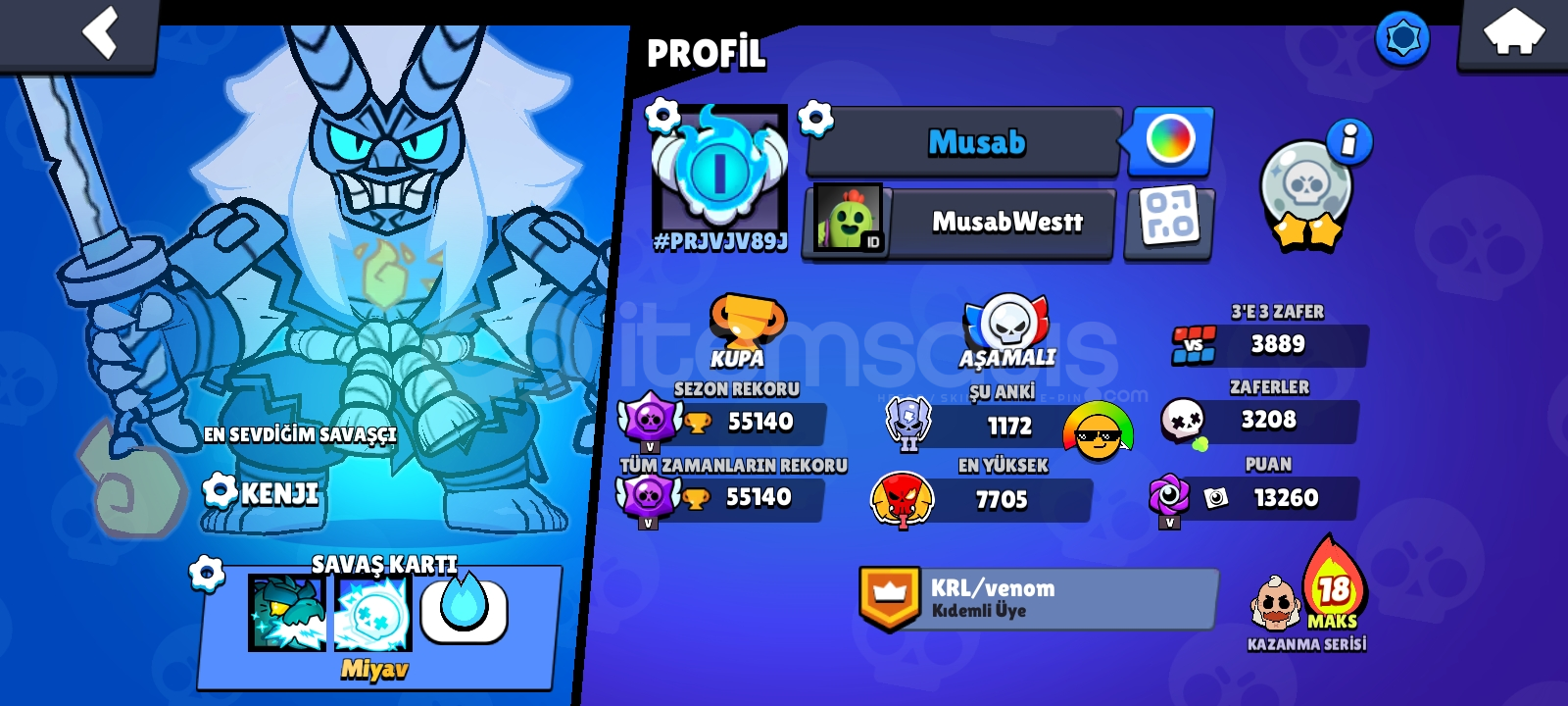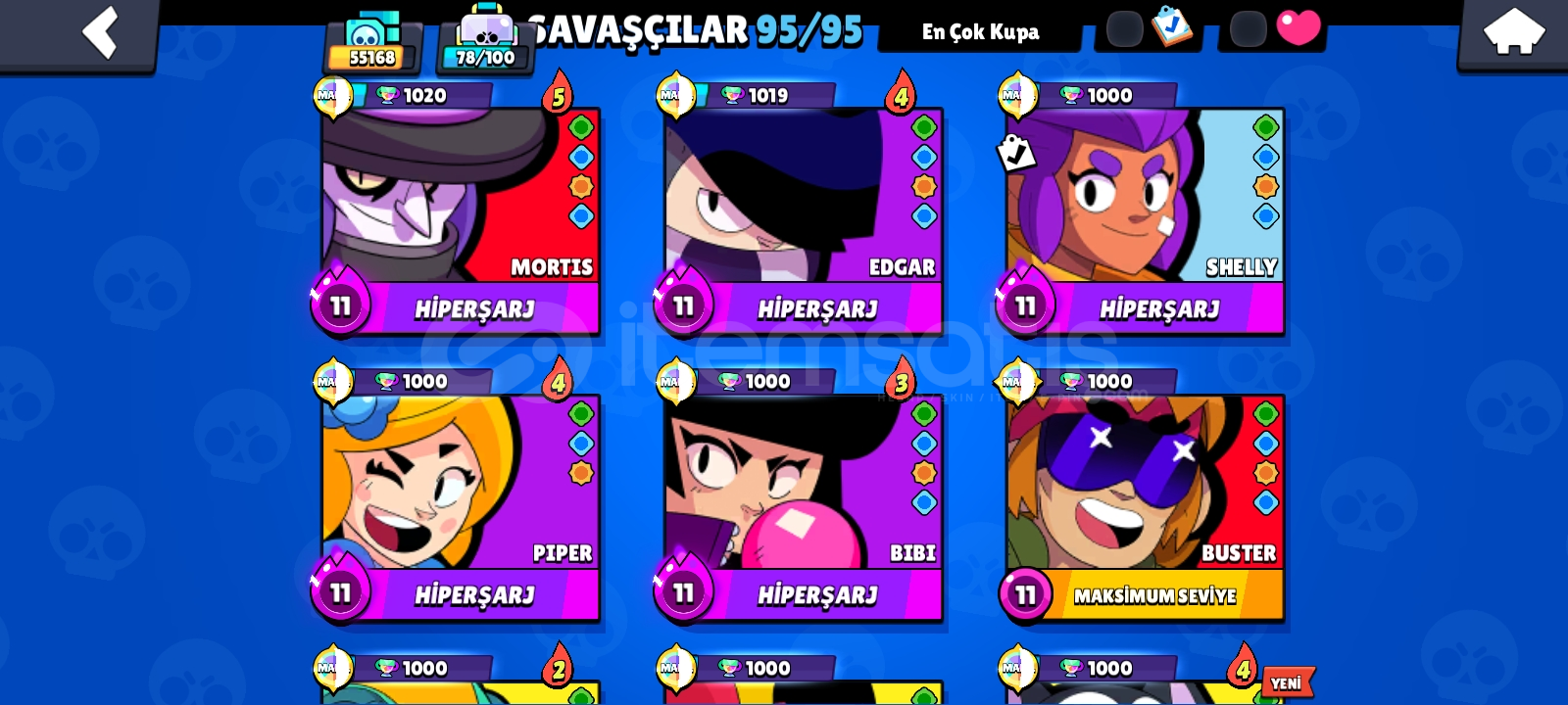 Almadan Önce Mesaj YazınızHesapta Tel Bağlıdır Sizin Telinize Ve Gmailinize Geçiş YapilacakHesap 55.164 Kupadir GüncelHesapta 262 Kostüm 95 Full Karakter VardırKostümler;Ender- 74Süper Ender - 68Destansı - 89Gizemli - 8Efsanevi - 10Hiper şarjlı - 5Yenilerden 5Hesapta 10 Tane 1000 Kupa Ve Üstü Karakter VardirHesabin İçinde 39 Elmas BulunmaktaSorusu olan yazabilir