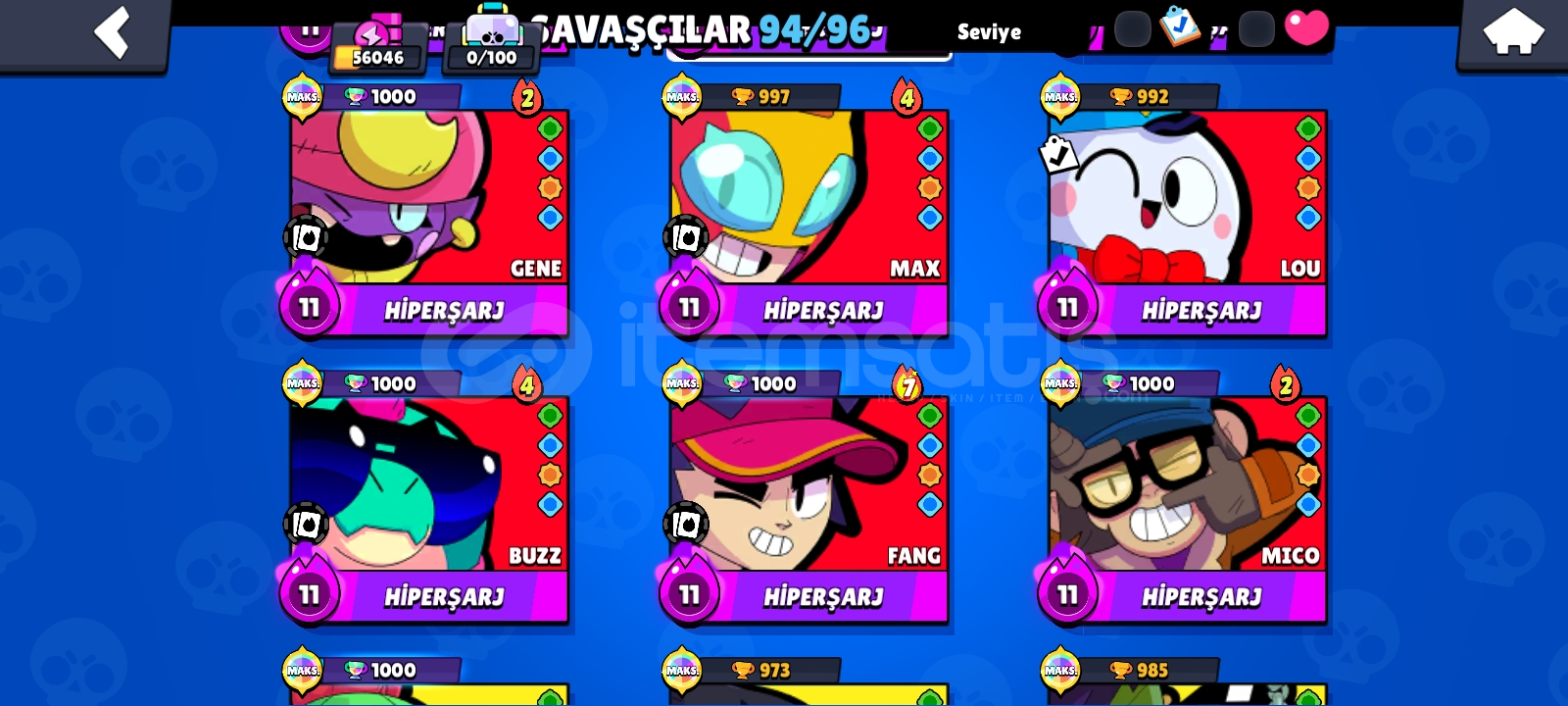 56 BİN KUPA⚡HESAPTA 94 KARAKTER VARDIR 26 MAX KARAKTER 21 HİPERŞARJ KARAKTER BULUNUYOR⚡240 KOSTÜM VAR 5 ÖZEL ÜNVAN⚡