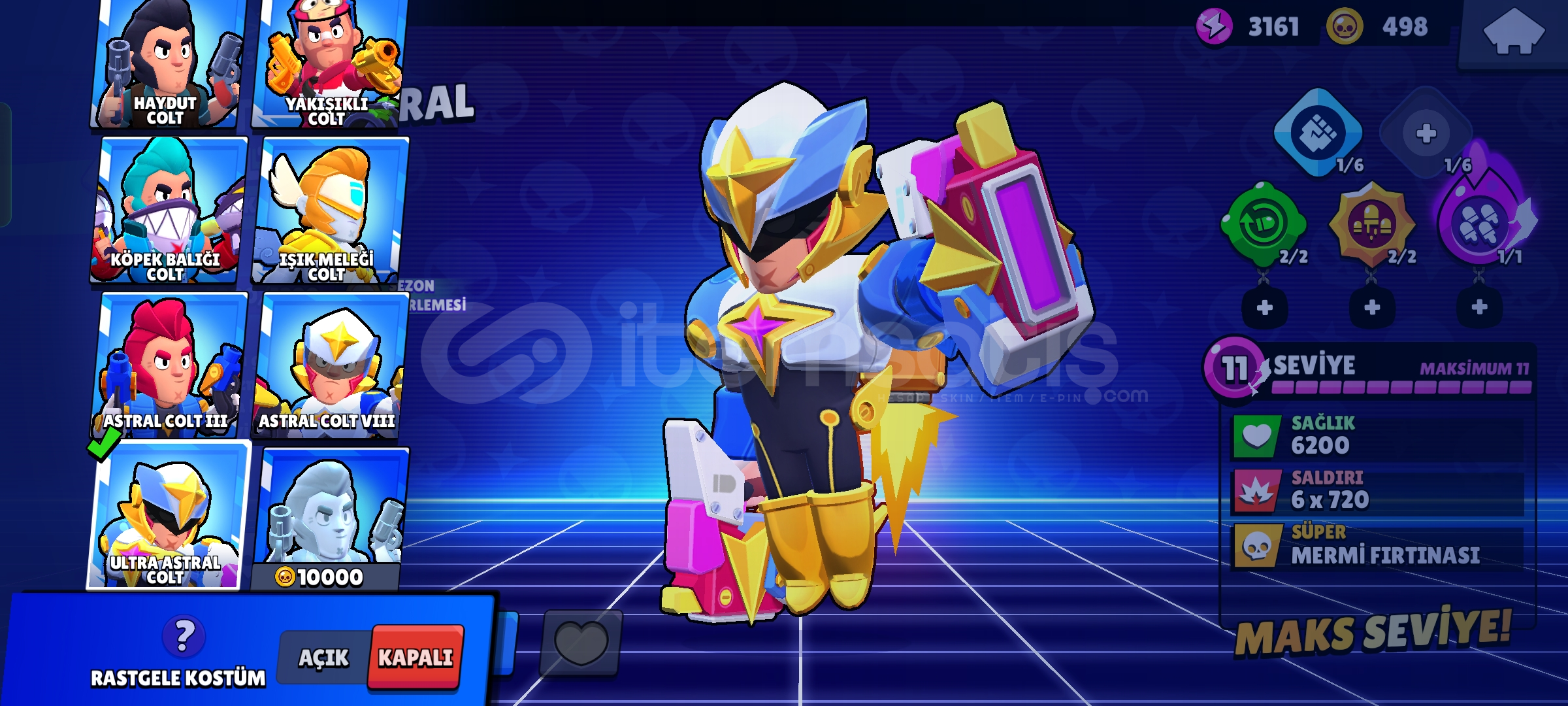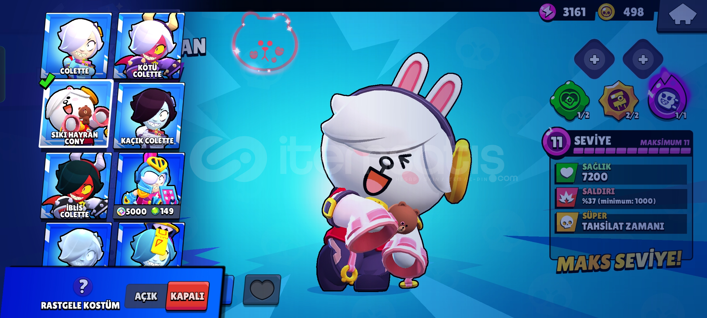 Hesapta 27 adet Max toplam 97 karakter vardır ve birbirinden güzel 283 kostüm bulunmaktadır.