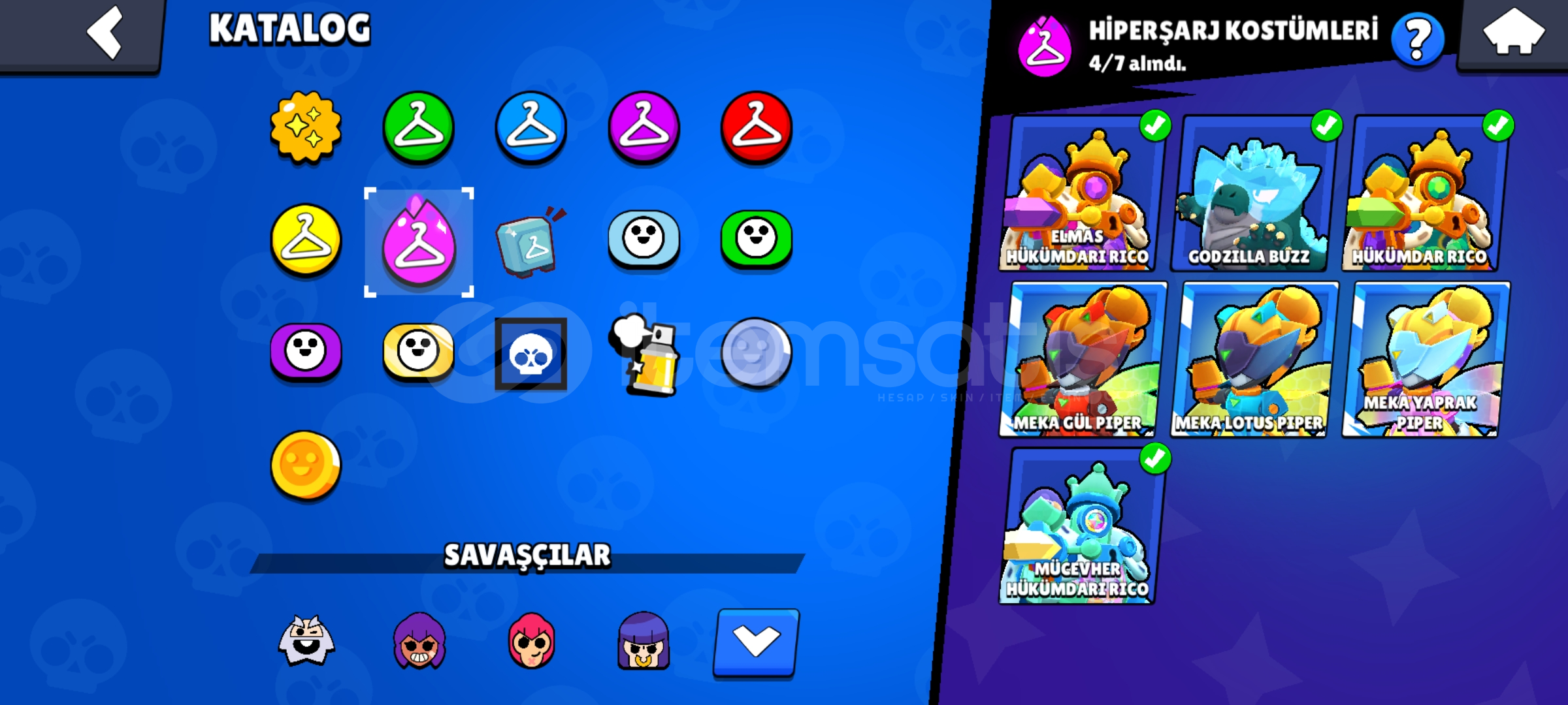 Hesapta 200+ Kostüm bulunuyor. 96 karakter var ,aynı zamanda 16 adet 1000 kupa karakter içeriyor. 23 adet hiperşarjlı karakter var...