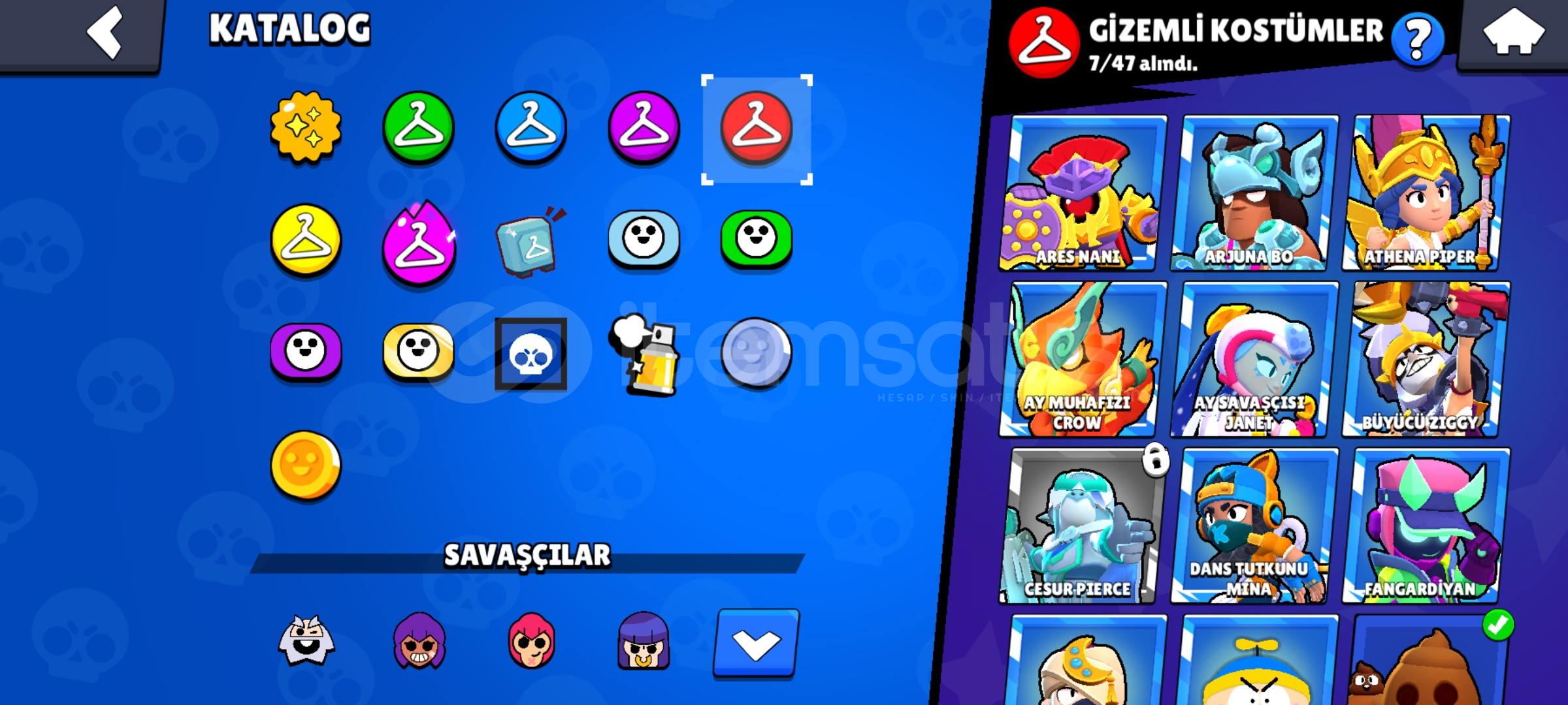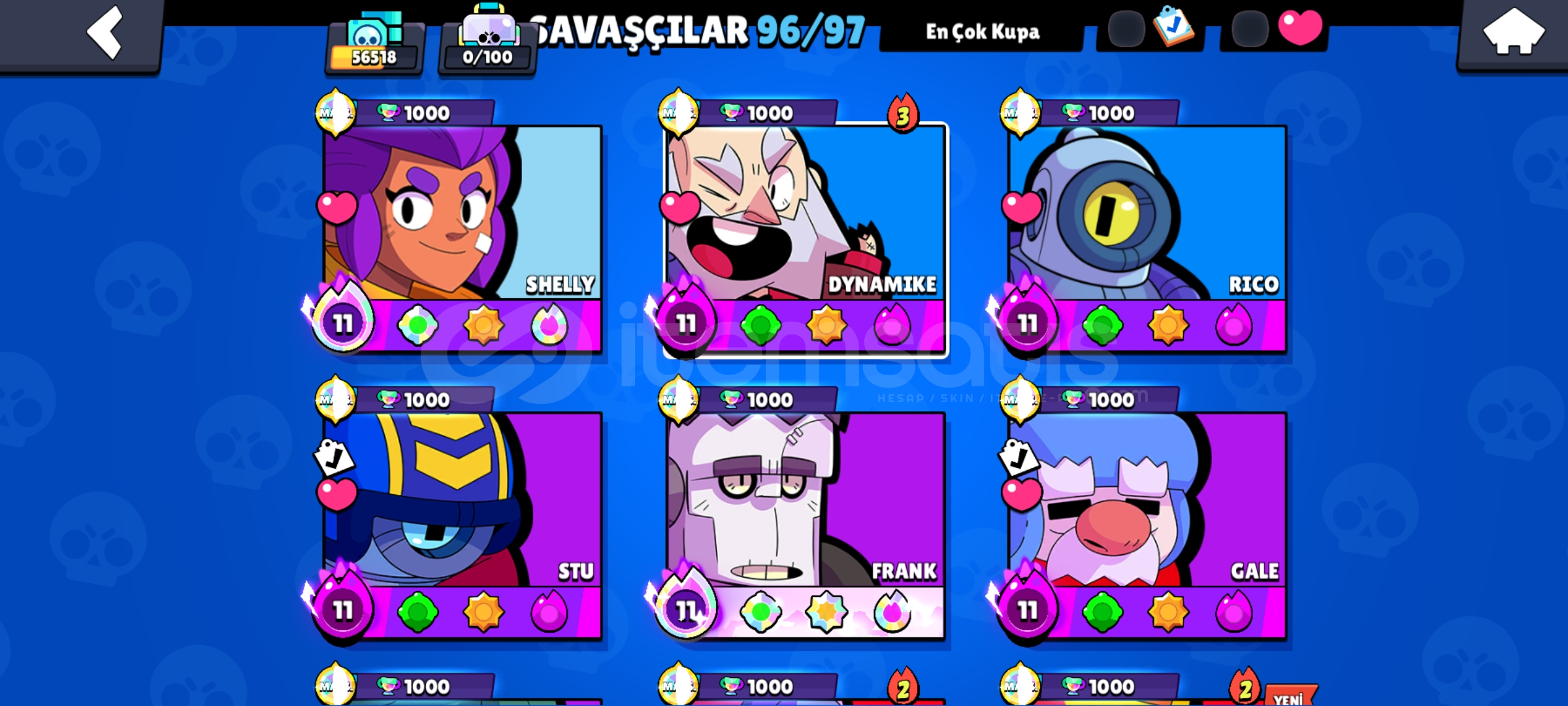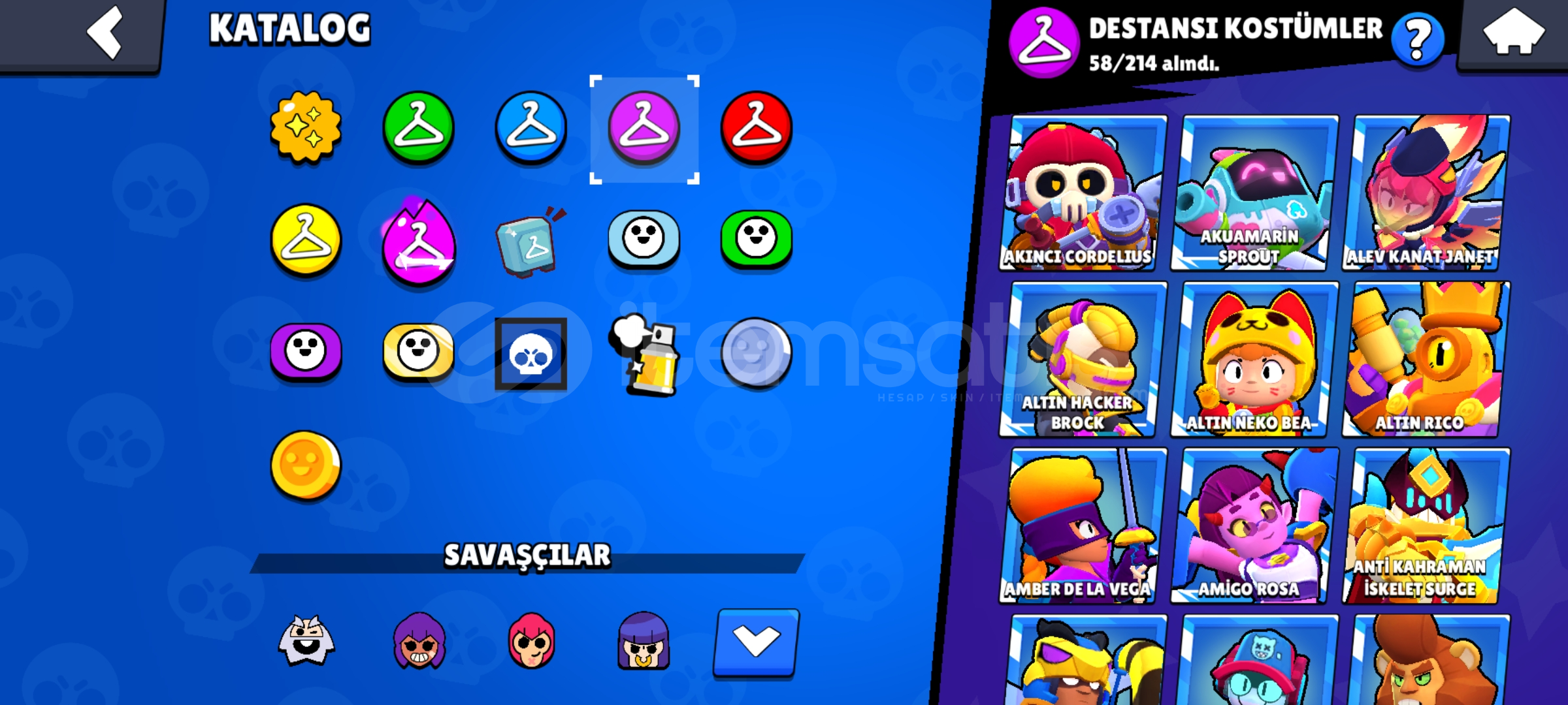 Emek hesabıdır alana şimdiden hayırlı olsun.Hesapta 200+ Kostüm bulunuyor. 96 karakter var ,aynı zamanda 16 adet 1000 kupa karakter içeriyor. 23 adet hiperşarjlı karakter var...