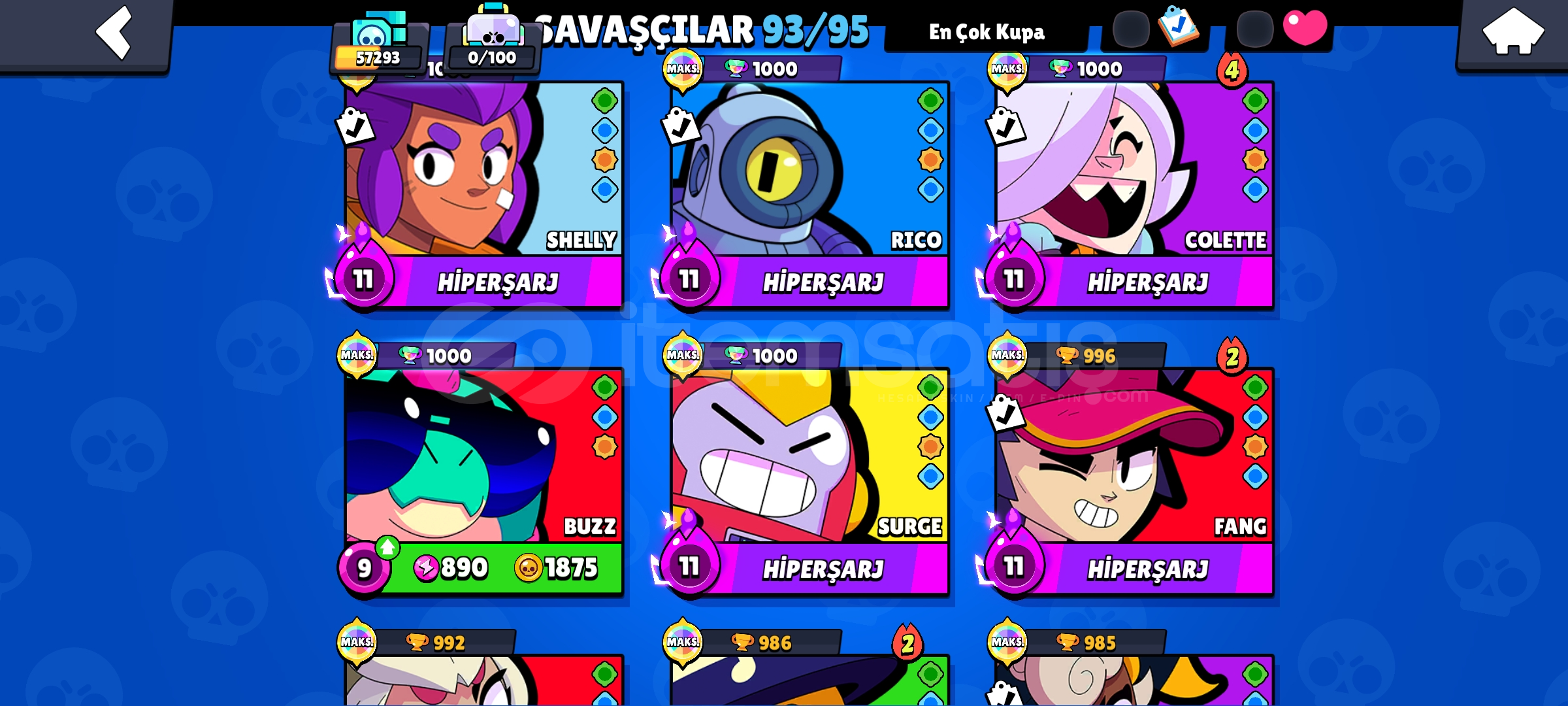 57 K Kupalı 93 Karakterli Brawl Stars Hesabı