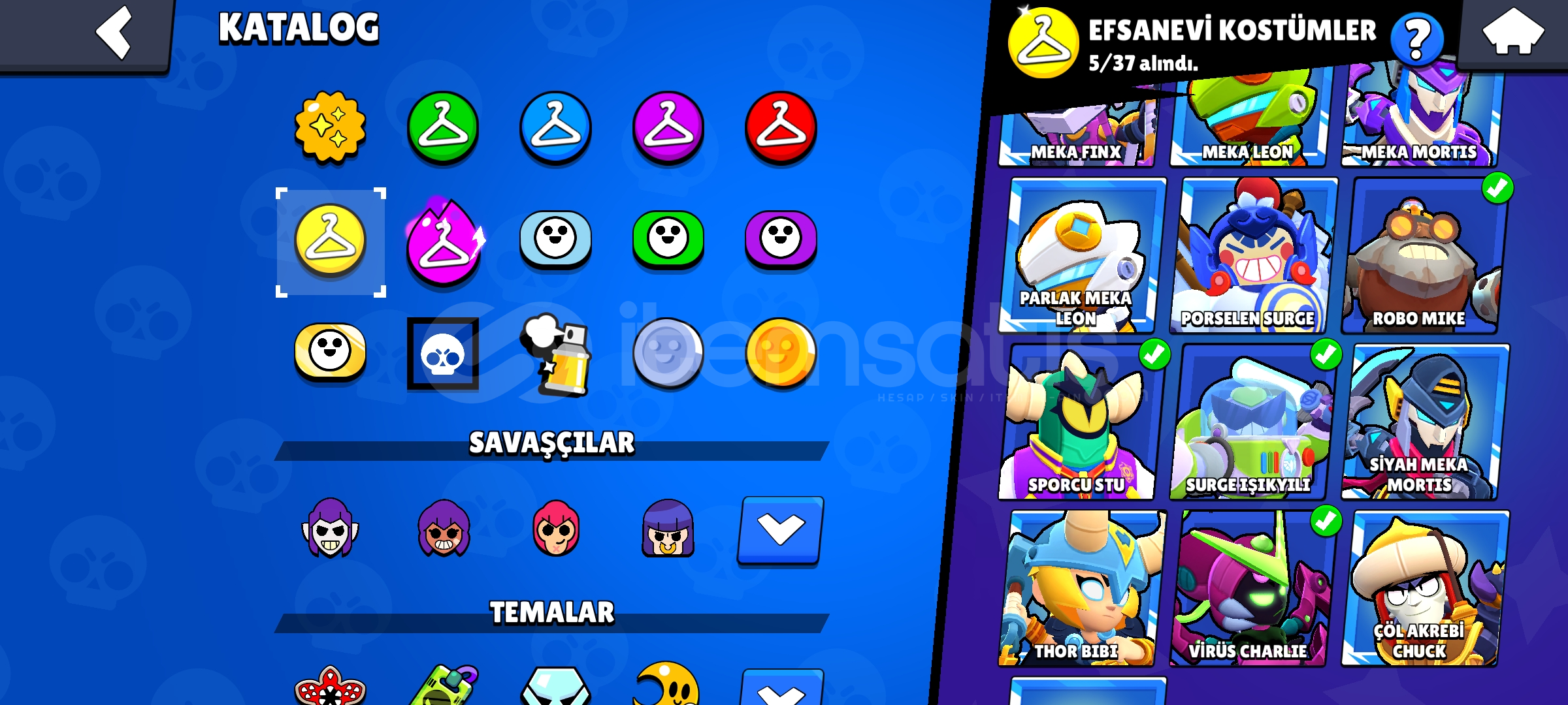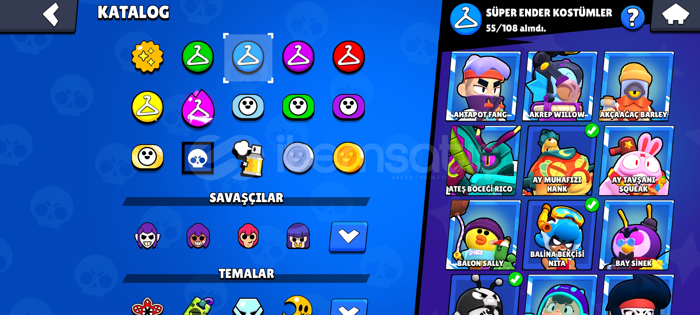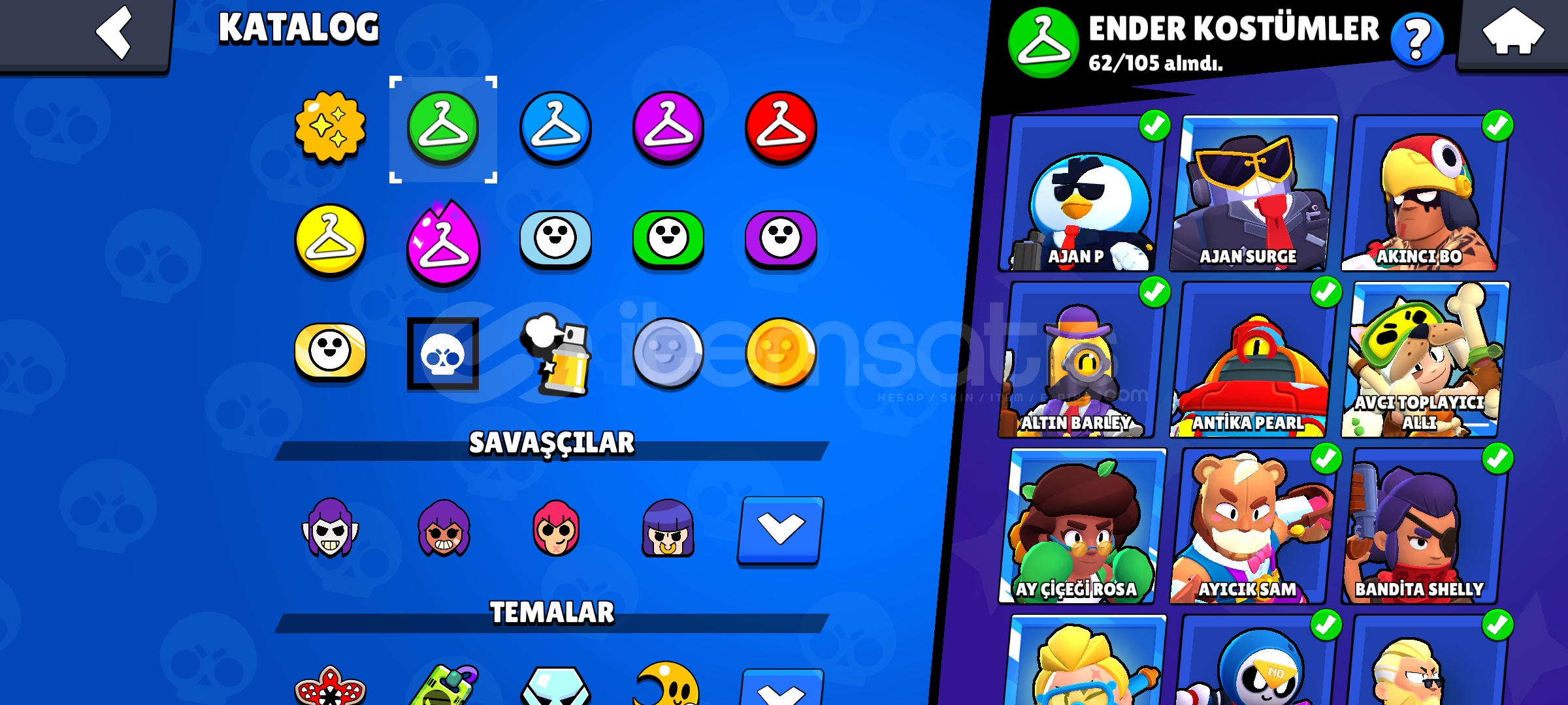 57 K Kupalı 93 Karakterli Brawl Stars Hesabı kostümler çok güzel Çok kostüm var Çoğu Karakter 11 Seviye Neredeyse her karakter de kostüm var Mail Değişiyor