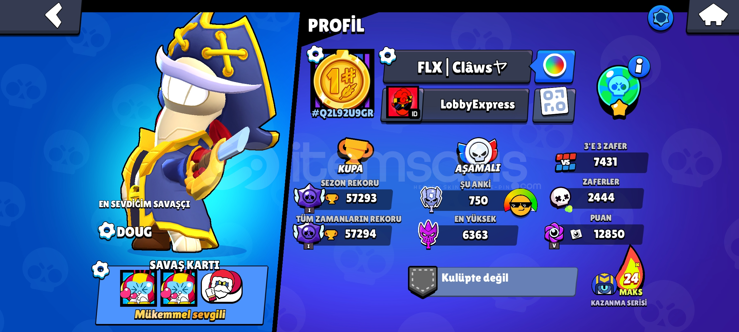 57 K Kupalı 93 Karakterli Brawl Stars Hesabı kostümler çok güzel