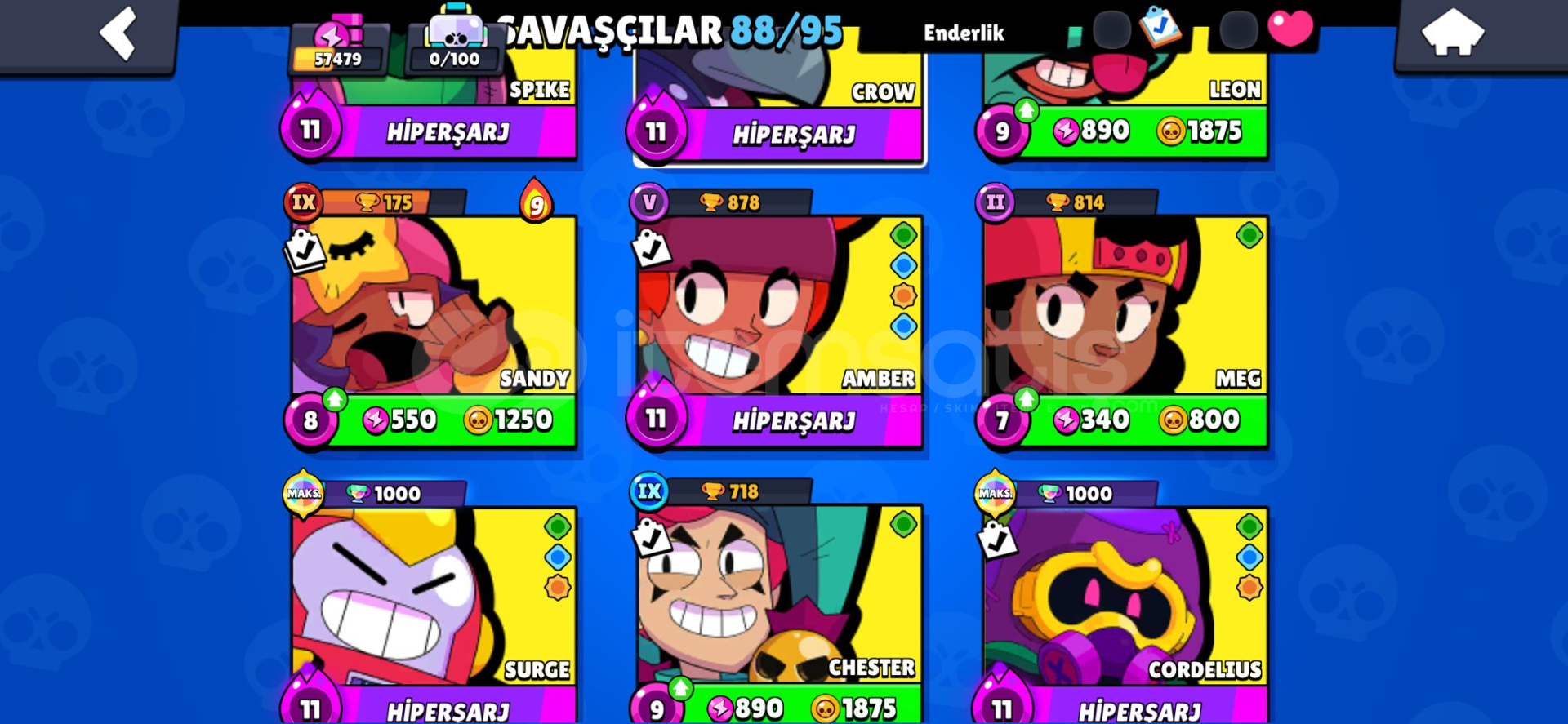 57.4k kupa 88 karakter 206 kostümMail devredilir 13 efsanevi karakter228 elmas 85 ender -59 süper ender-41 destansı-4 gizemli -1 hiperşarj kostümü-6 efsanevi kostüm -8 saf gümüş -1 saf altın