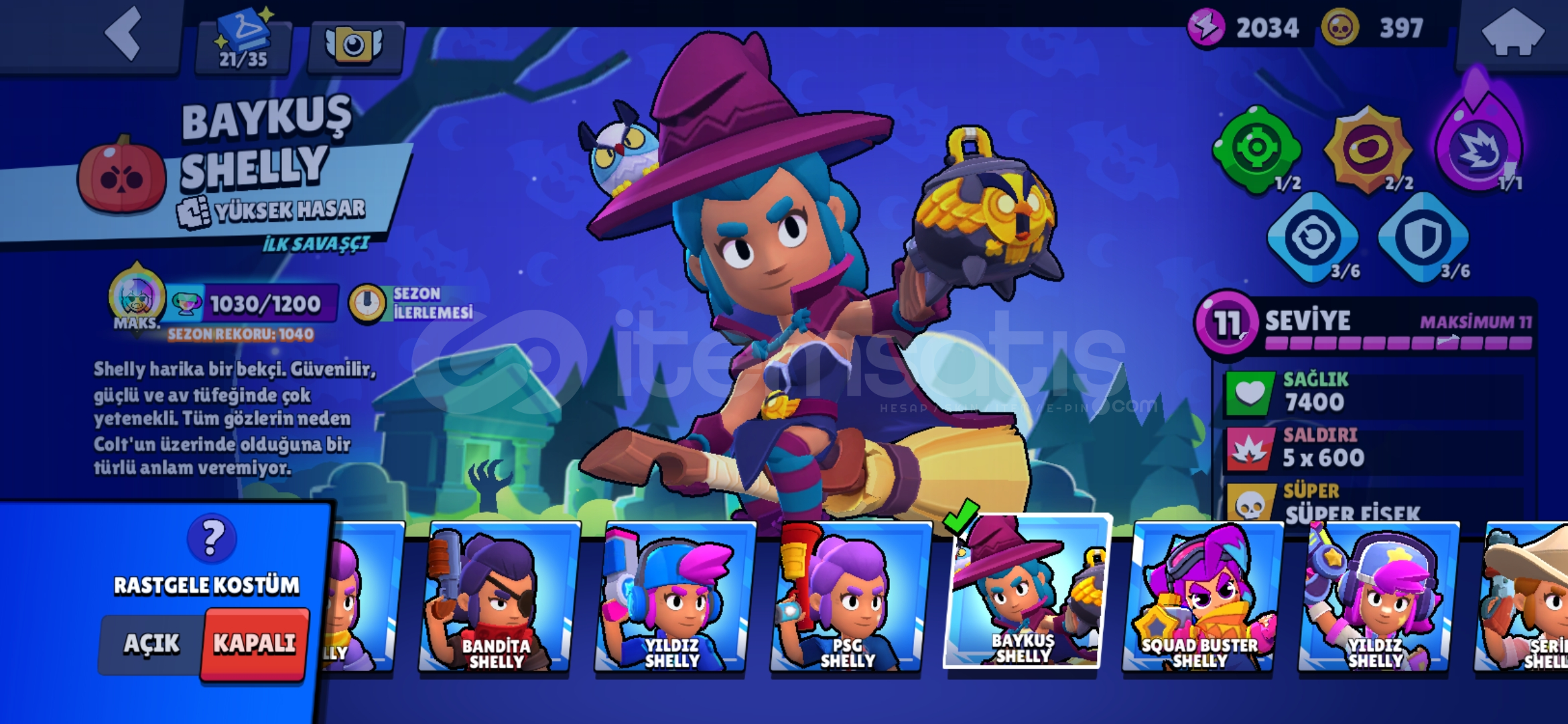 | BRAWL STARS |Kupa: 57.450Maks rütbe: GizemliKARAKTERLER: 96/96. 14 Hiperşarj, 42 MAKS level. 16 Tane 1k kupa.Emojiler: Supercell storede yaklaşık 3 BİN TL değerindeki HİHİHA emojisi ve Esneyen prenses emojisi mevcuttur ve daha fazla Nadir emoji.KOSTÜMLER: Ender: 105Süper ender: 70Destansı: 90Gizemli: 16Efsanevi: 10Toplam: 300 skinHiperşarj: 5NADİR KOSTÜMLER: Yıldız shelly | Baykuş Shelly | Şekerci Leon | ...