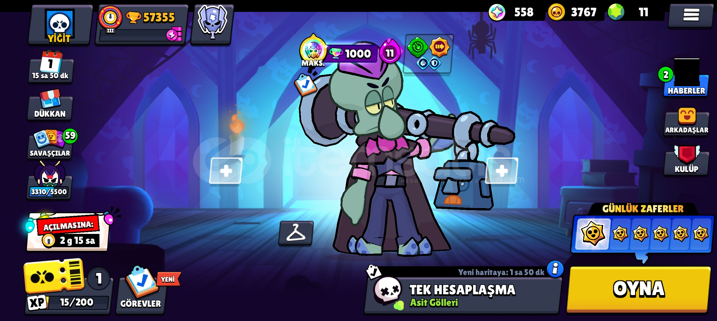 BRAWL STARS 57k full+full hesapHesapta 57k kupa vardır3 karakter dışında bütün karakterler vardır1k kupanın &u...