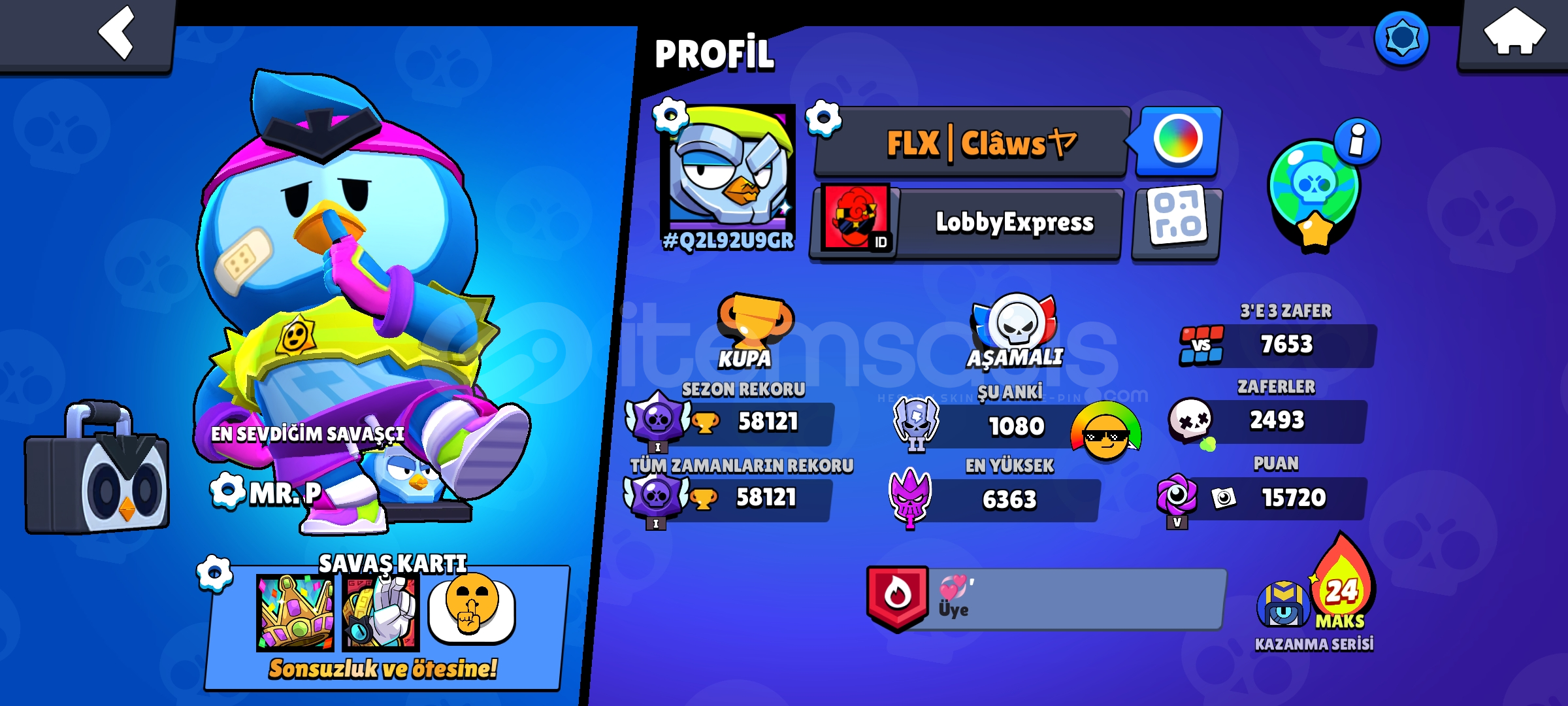 ilanı yanlış ayarlamışım ama verdiklerim yine bu hesap 58k-55k-8500 clash royale