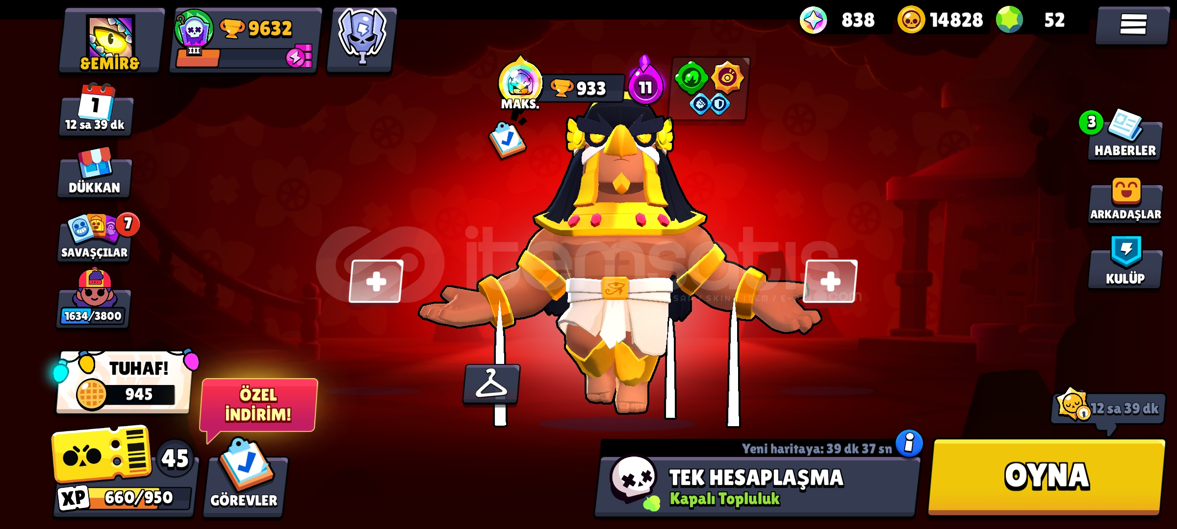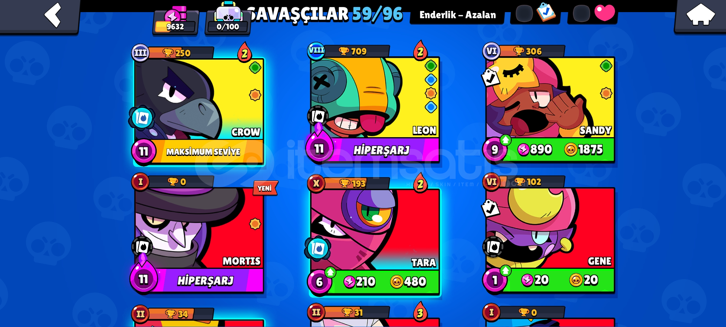 Mail değişimi var - 1000 kupa olmuş karakter var - hesap 9k kupa - 3 tane efsanevi karakter var