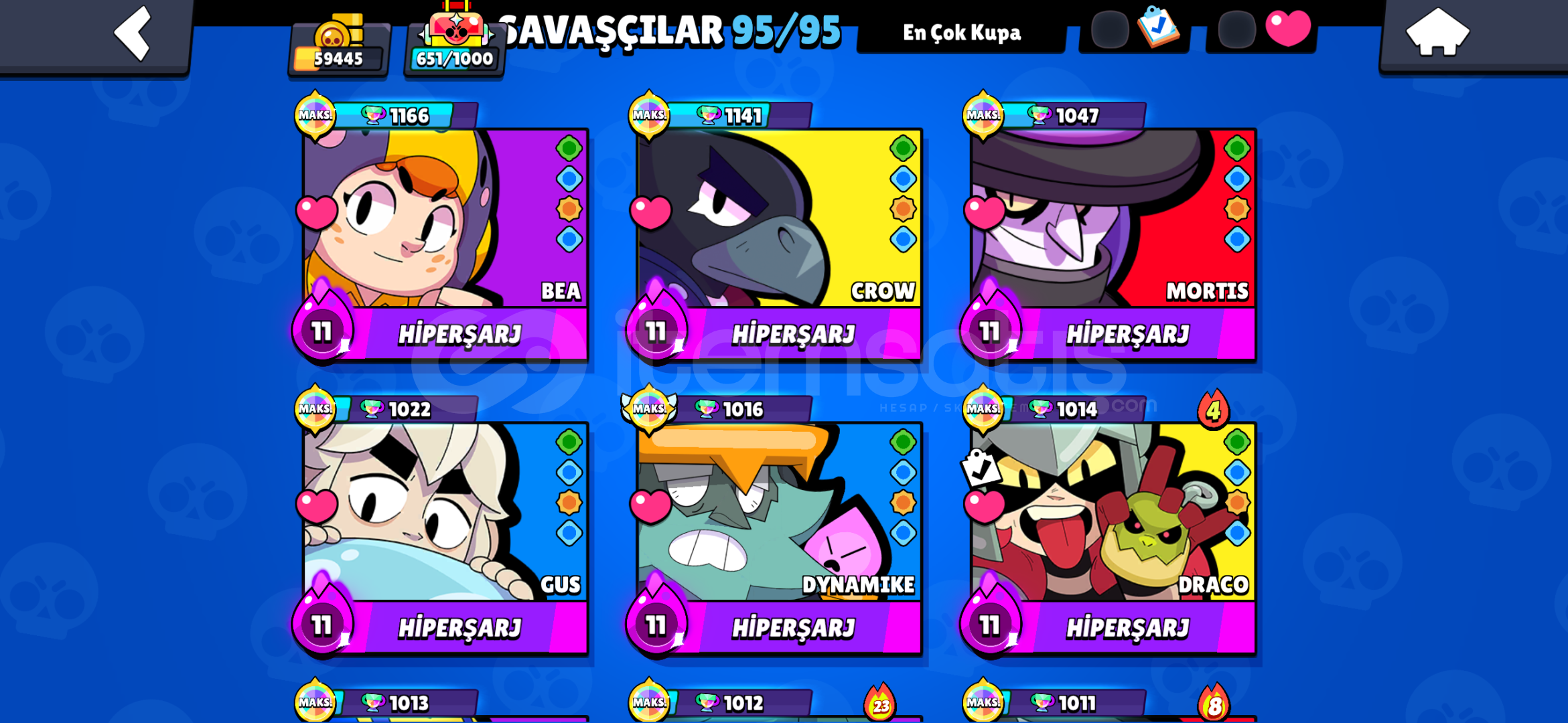-Hesapta 95karakter vardır-2XMaster 1X Prestij vardır -36 Hiperşarj 8 hipersiz max karakter-Tel Bağlı değildir Mail bağlıdır -Mailli verilir mail değişmiyor-Mailde kurtarma vs. Ekli değildir-296 Köstüm vardır Toplam-9 AdetHiper Köstüm vardır-Güncel Bpp açıktır-3bpp alınmıştır-9.7 Satıcı Performansı ve Memnuniyeti ++pro passde alınmışt&#...
