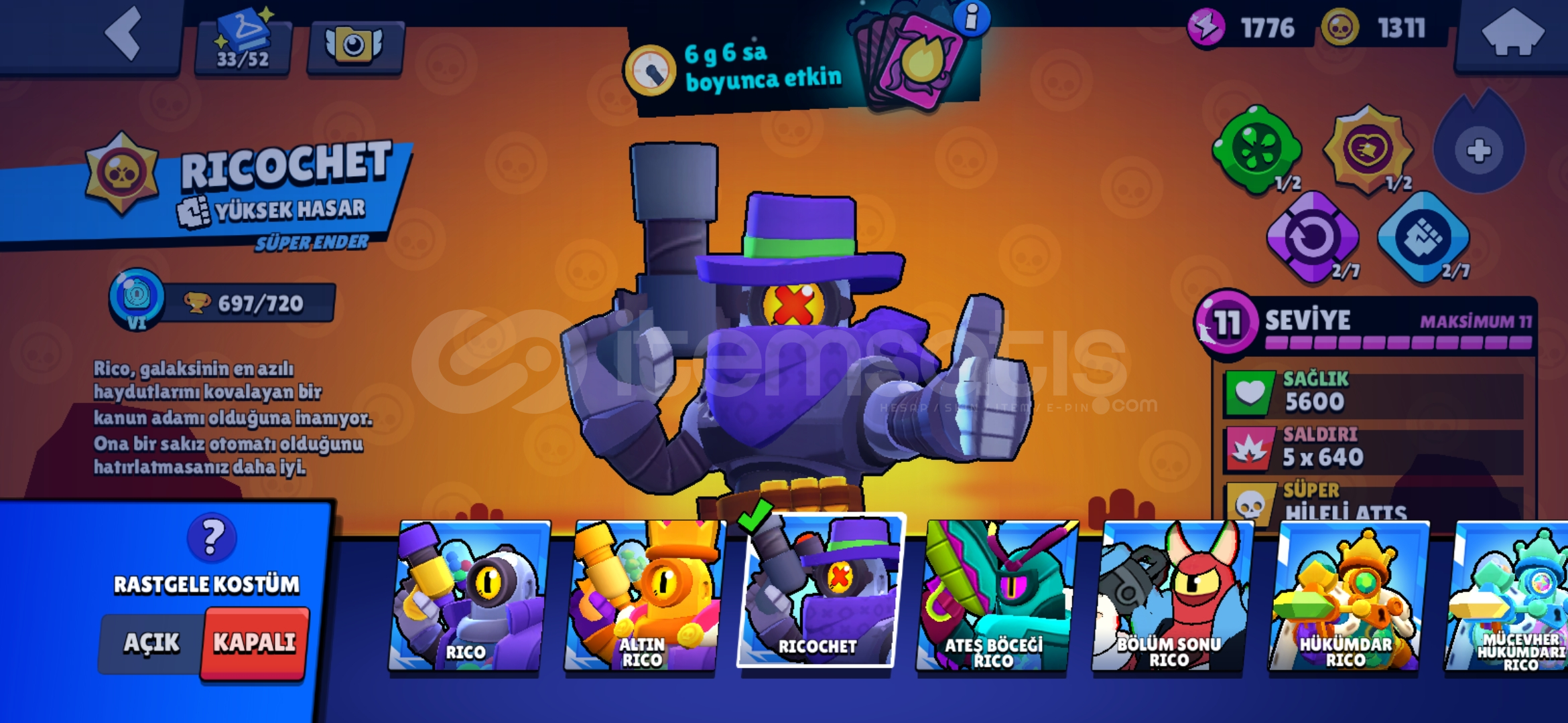 Hesap kısaca böyledir, çoğu brawl pass kostümleri vardır. Hesabın şahsi sahibi benim. Pazarlık sünnettir.