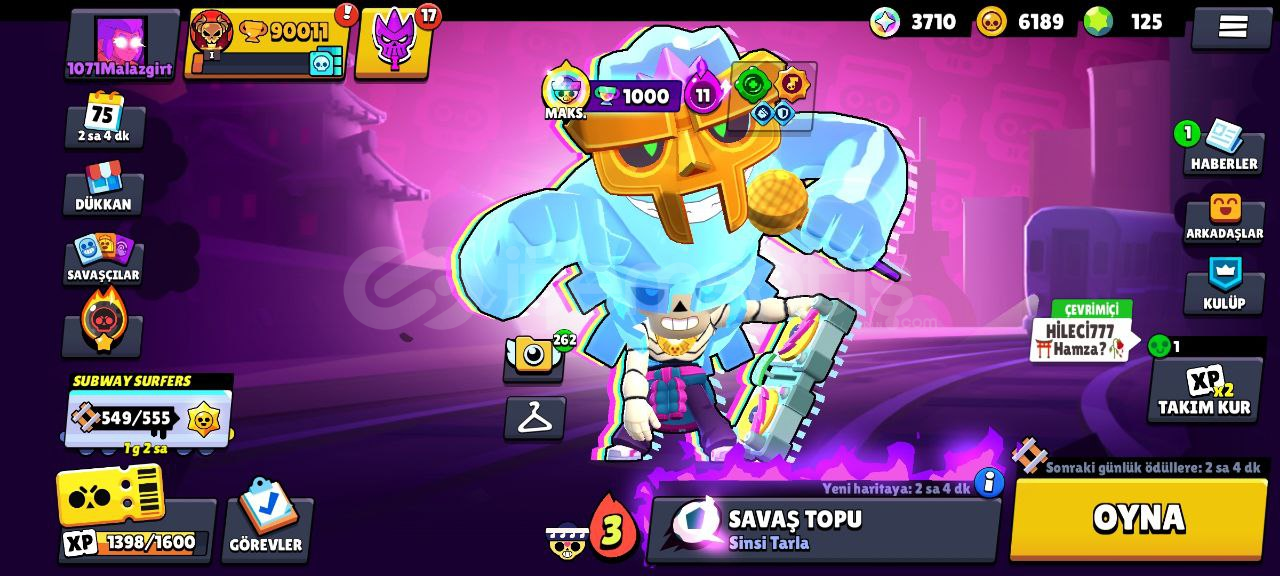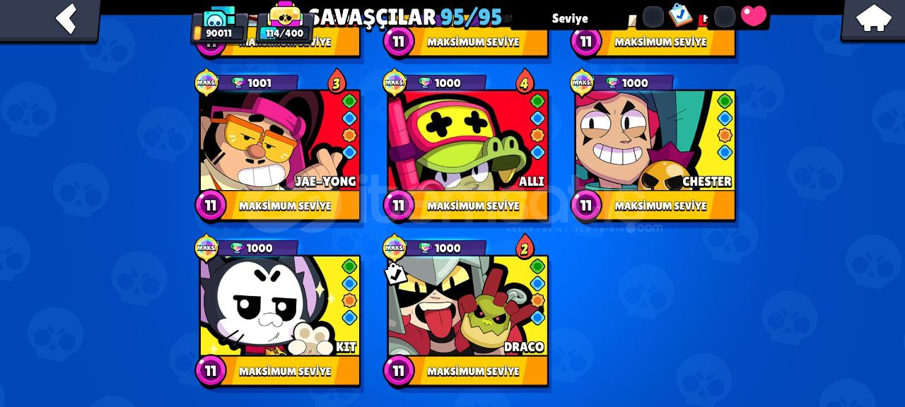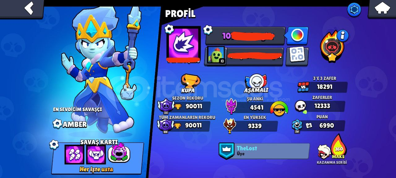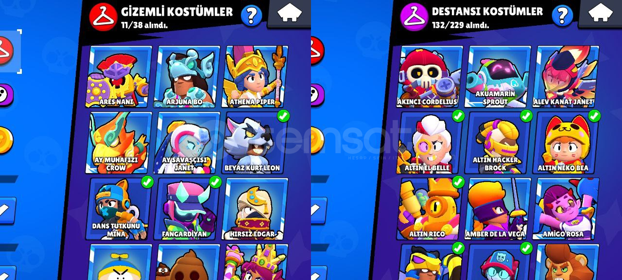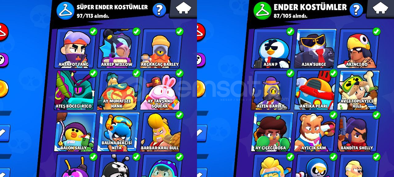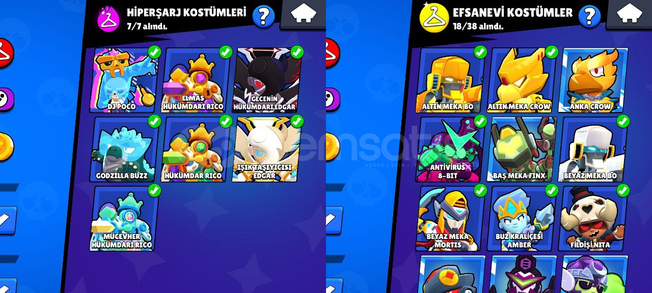 Hesap Özellikleri:6 Yıldızlı çok nadir Master profil simgesi!95/95 Karakter, Hepsi 11 seviye70 Hiperşarj185/190 Yıldız Gücü185/190 Aksesuar328/605 Eşya 87 Ender kostüm97 Süper ender kostüm132 Destansı kostüm11 Gizemli kostüm18 Efsanevi kostüm7 Hiperşarj kostümü Kupa yolunda 70k dan sonraki hiçbir ödül toplanmadı. Kayıtlarda da 262 tane alınmamı...