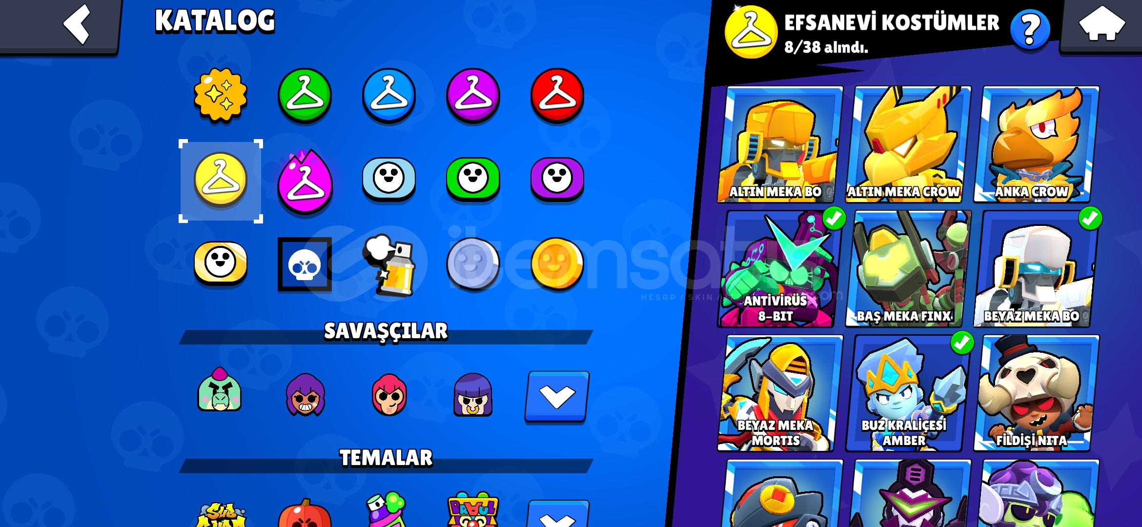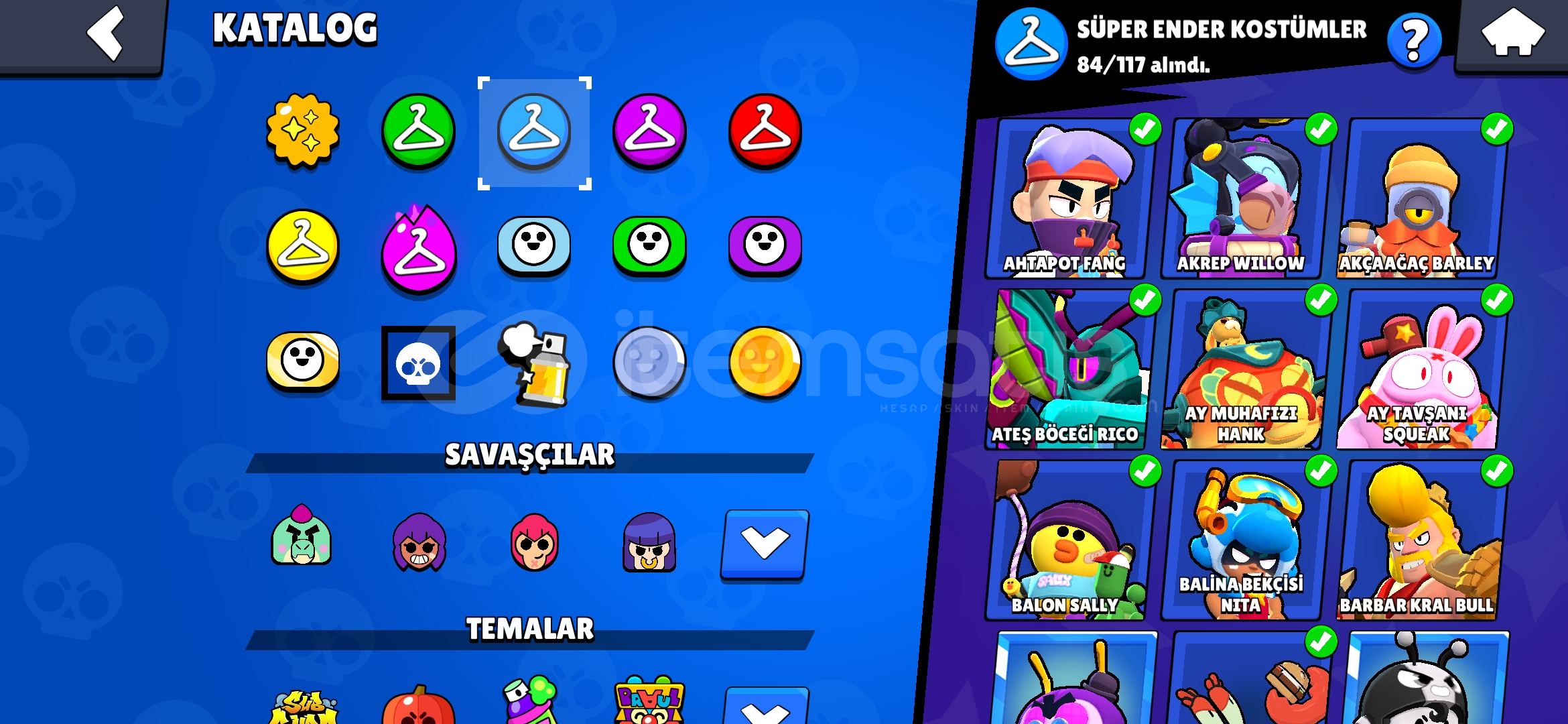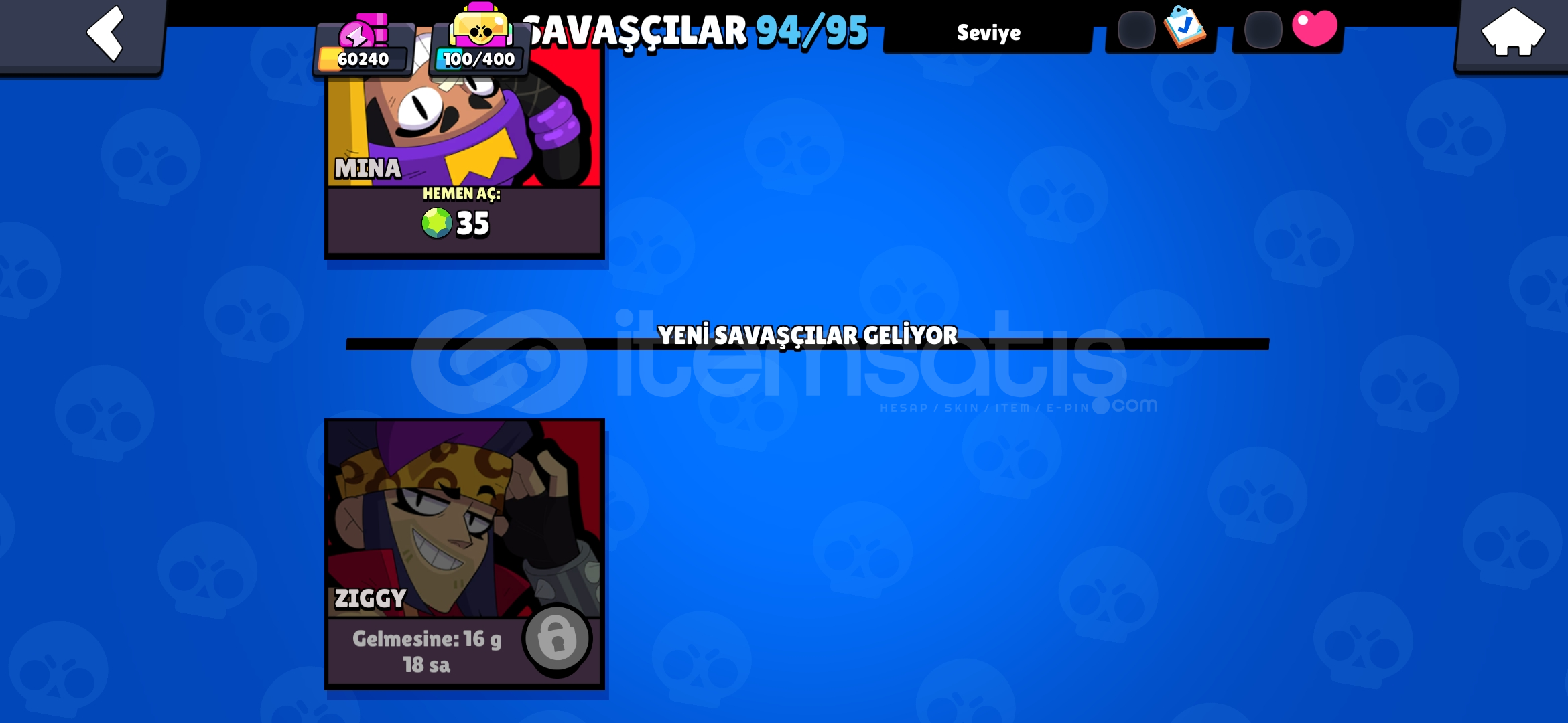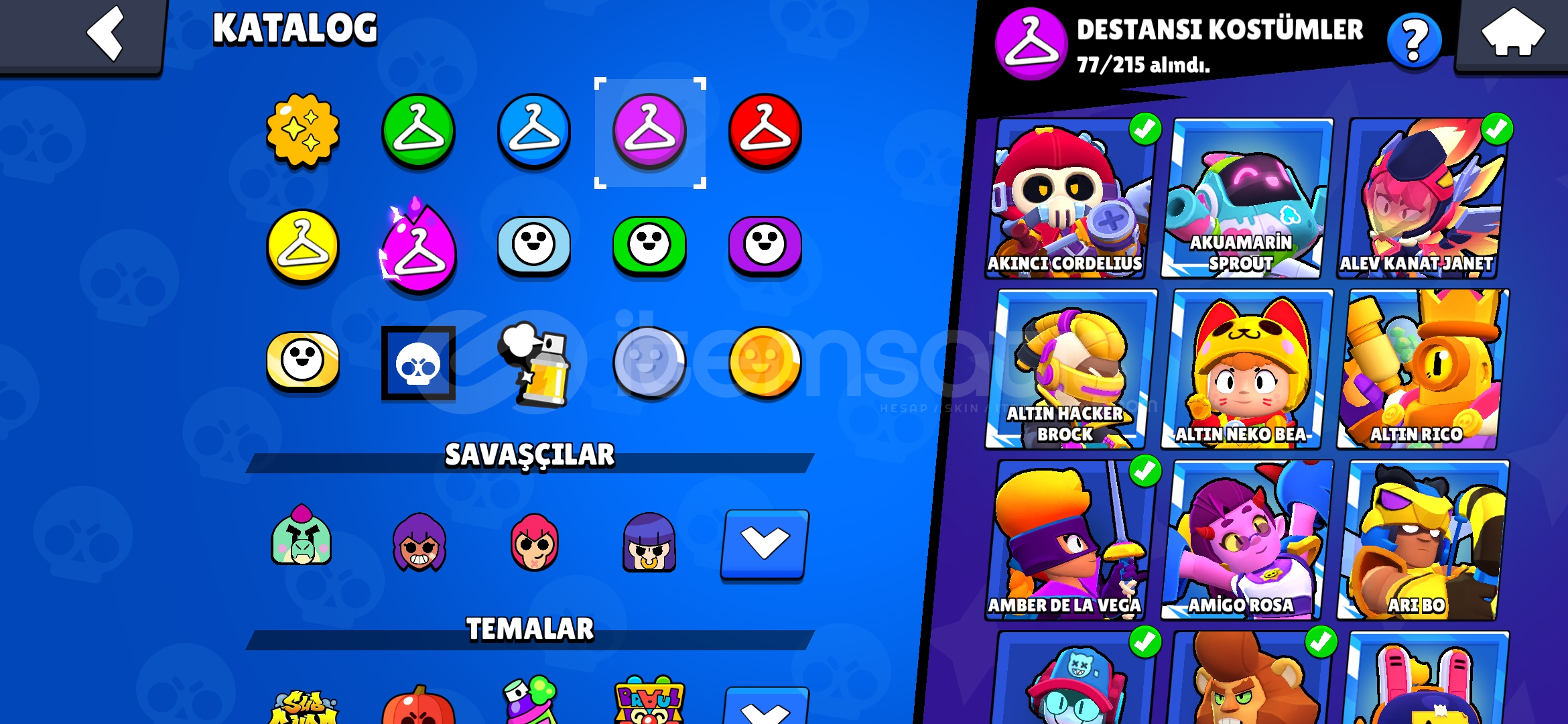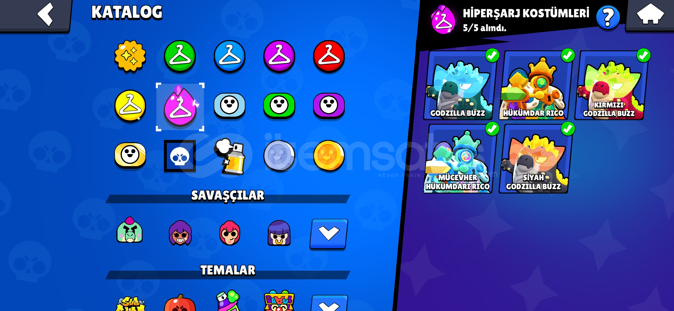 +200 skinli 94 karakter40 tane 11 level karakter 35 tanesi hiperşarzlı