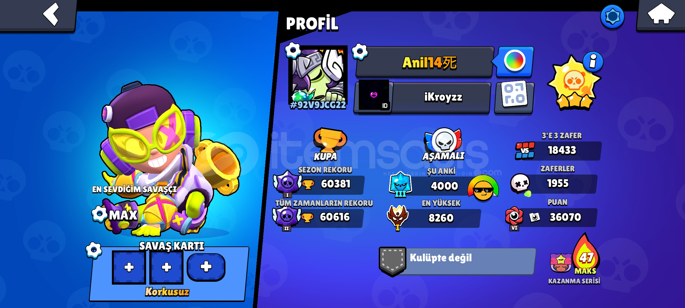 Altın mina var baya sağlam 420 kostğm var nerdeyse tüm krktelrer max oyunfan kalkan 2 kral frankde var hrsap kişisel hesabm işten dolayı satıyorm
