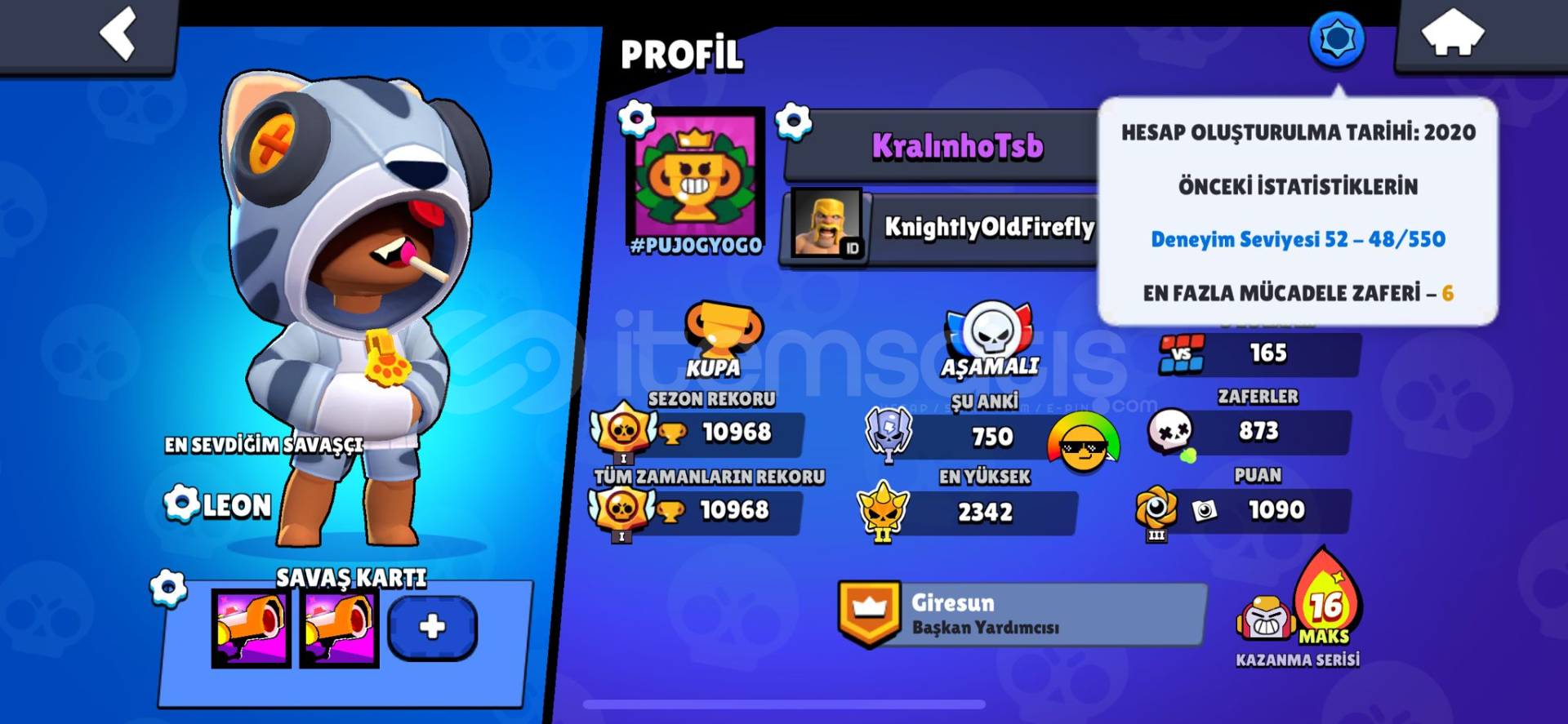 Hesapta 45 Karakter.62 Kostüm.269240 Kupalı klanda Başkan Yardımcısı.Hesap kurulum tarihi 2020 eski ve değerli kostümler bulunmaktaHesap al-sat hesabı değil kendi hesabımdır mail adresi ile beraber verilip %100 güven ve destek hizmeti vermekteyim.Hesapla ilgili merak ettiğiniz ve öğrenmek istediğiniz bilgileri mesaj yoluyla iletebilirsiniz