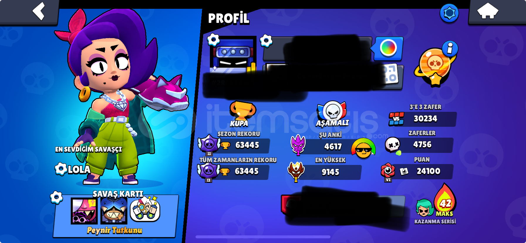 HESAB BilgileriHESAPTA EKSİ -1851 TAŞ BULUNMAKTADIReski Brawl pass skinleri mevcutkötü colettekral lousamuray ruffaltın el belledoğuştan kötü buzzninja ashasi lolaEski bazı kostümlerKurt adam leonKahraman bibiElf penyNoel baba mikeTıknaz darrlyHESAP BİLGİLERİ63-64 Karakter 11 levelNUMARA BAĞLIaltın mortis bulunmaktadıreski master bulunmaktadır Eski e spor kostümü olarakfanatik fangdü...
