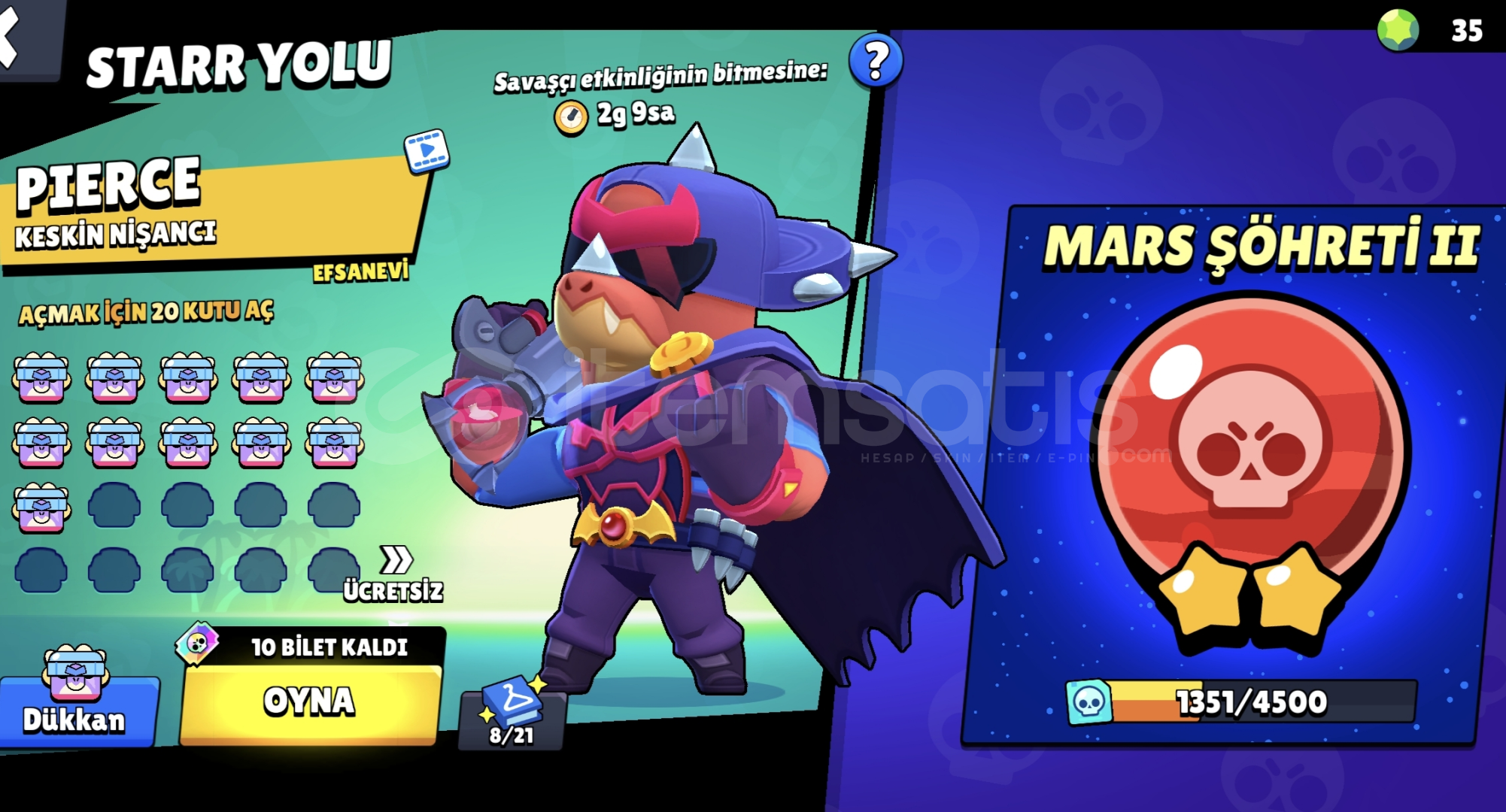 Hesap göründüğü gibidir olabildiğince çok bilgi vermeye çalıştım hesap koruması yoktur hesabin mailini uzerinize yapip vereceğim276 Kostüm vardır27 Tane aktif hiper şarj22 aktif olmayan hiper şarj3 Tane maxSamuray ruffsMega kutu darrlyGüncel olarak yeni savaşçının skini de geldiSilahşör coltRicochetAltın el belleKaranlık taraf carlKral louGibi eski kostumlerde v...