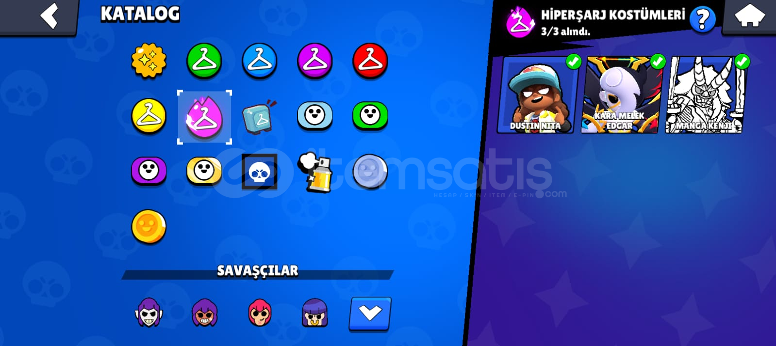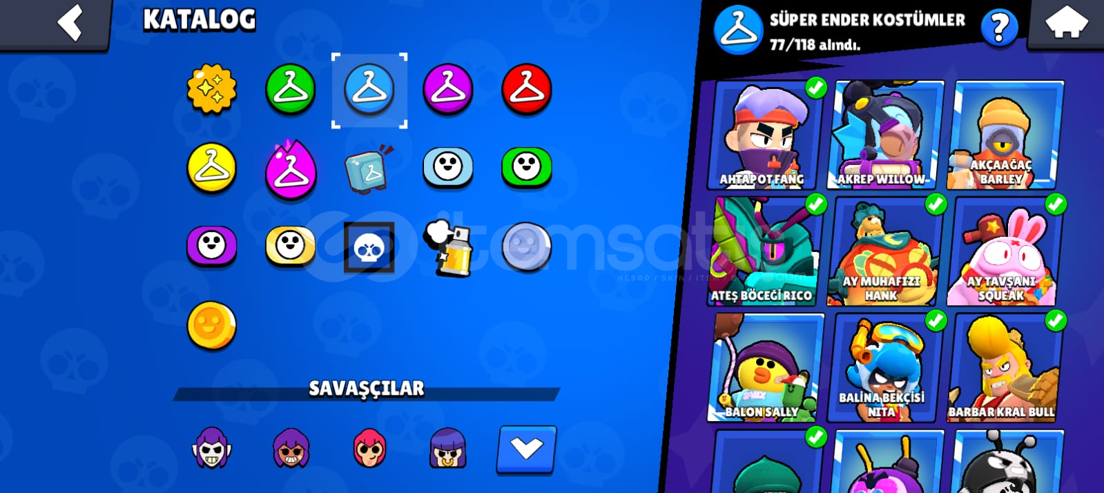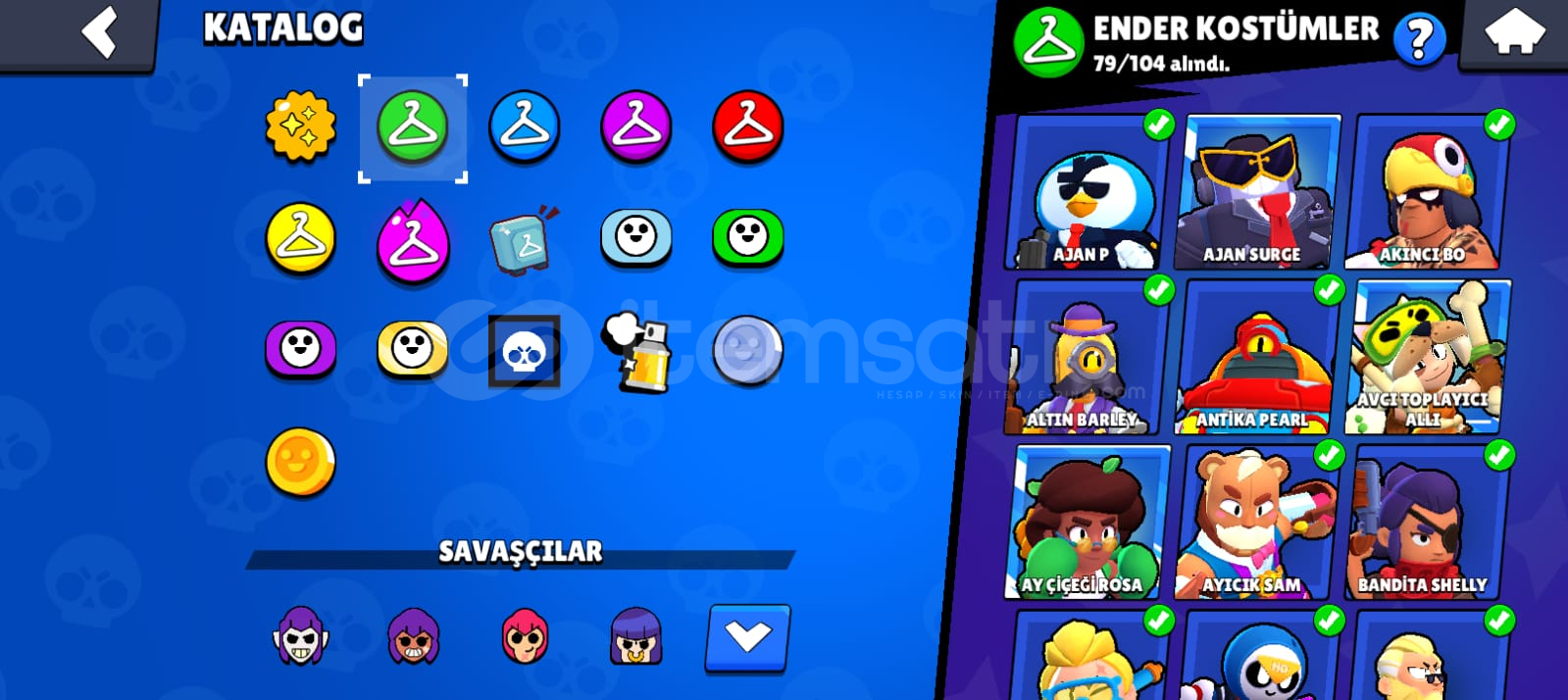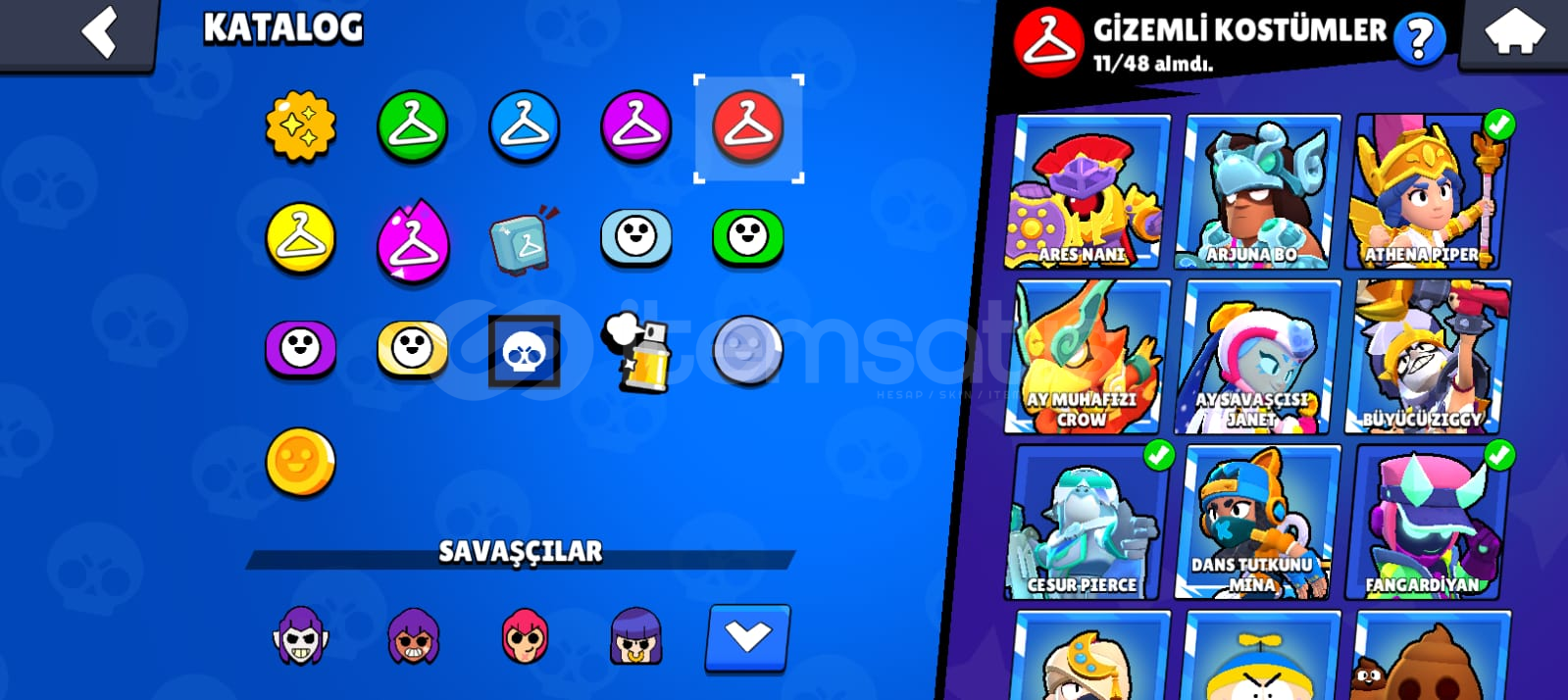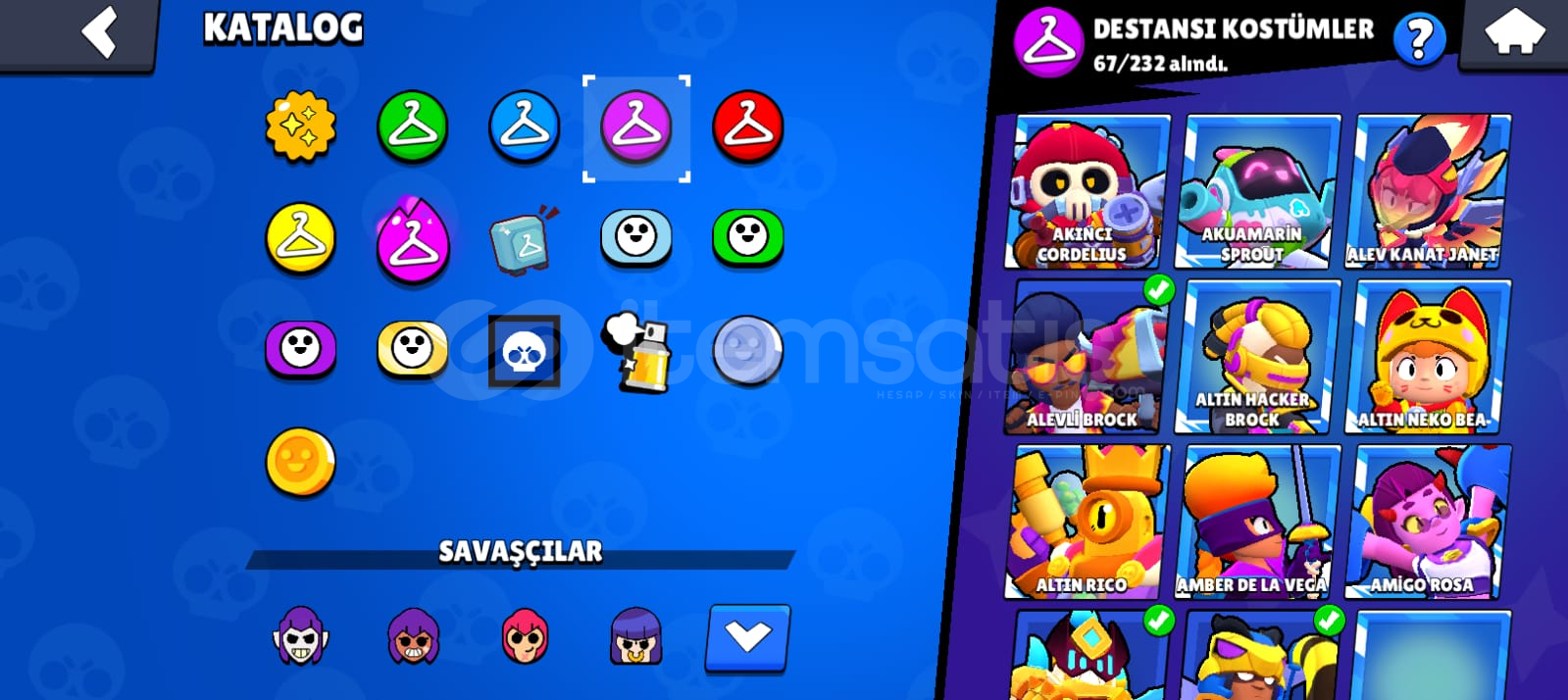 Hesap fotoğraflarda görüldüğü gibidir. Birsürü skin var. Toplamda 242 kostüm var alıcısına hayırlı olsun
