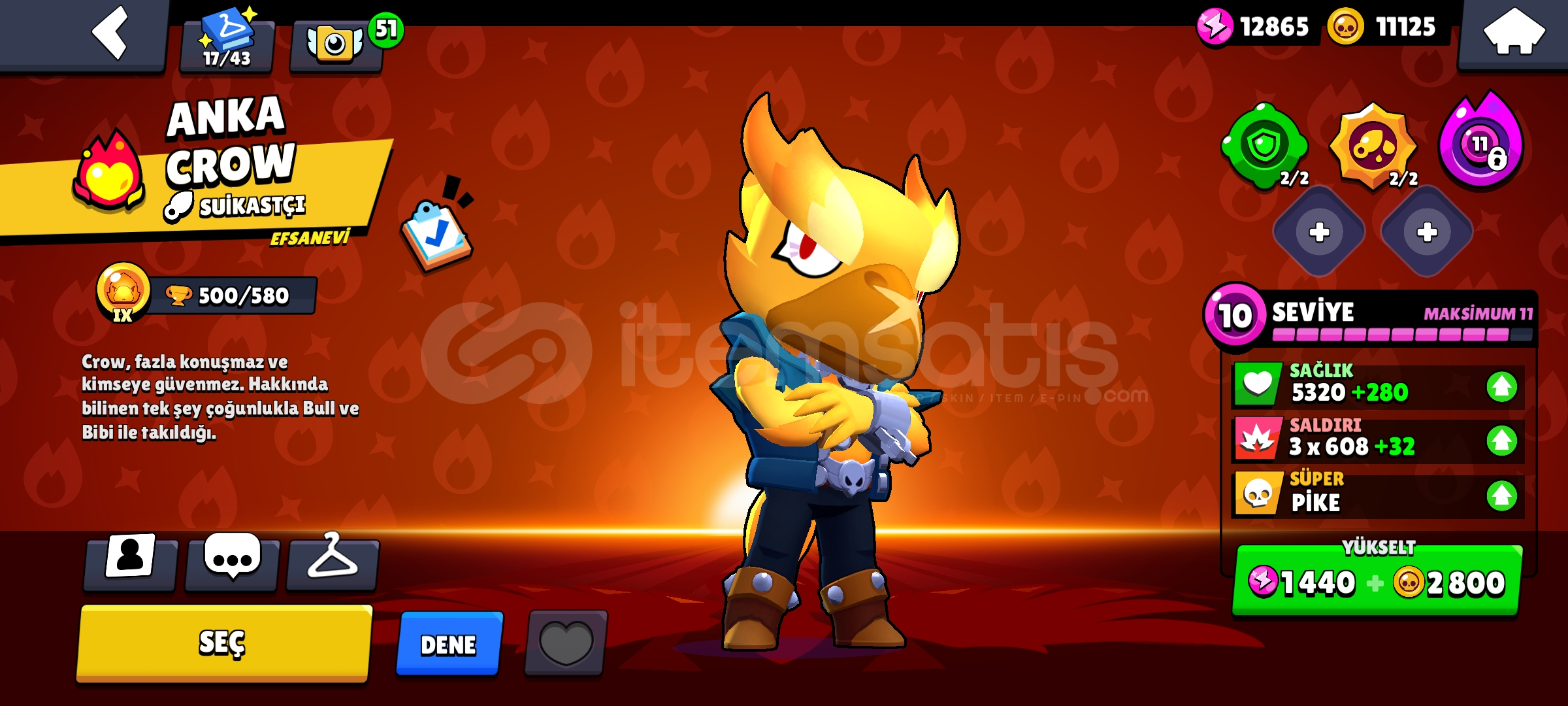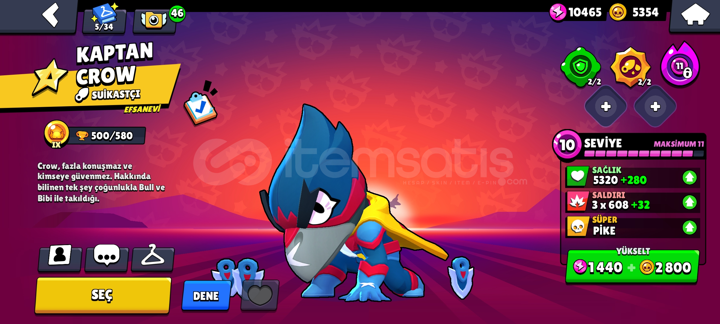 MAİL DEĞİŞİYOR- İSİM DEGİSTİRME KARTİ BULUNUYOR- ANKA CROW VARDIR-2 KARAKTER 1000+ KUPASINDA( CROW, EDGAR)-93 KOSTÜM BULUNUYOR-7 efsanevi karakter-PİYASANİN EN UCUZ BRAWL STARS HESAP SATIM YERİ SİMDİDEN HAYIRLI OLSUN:)