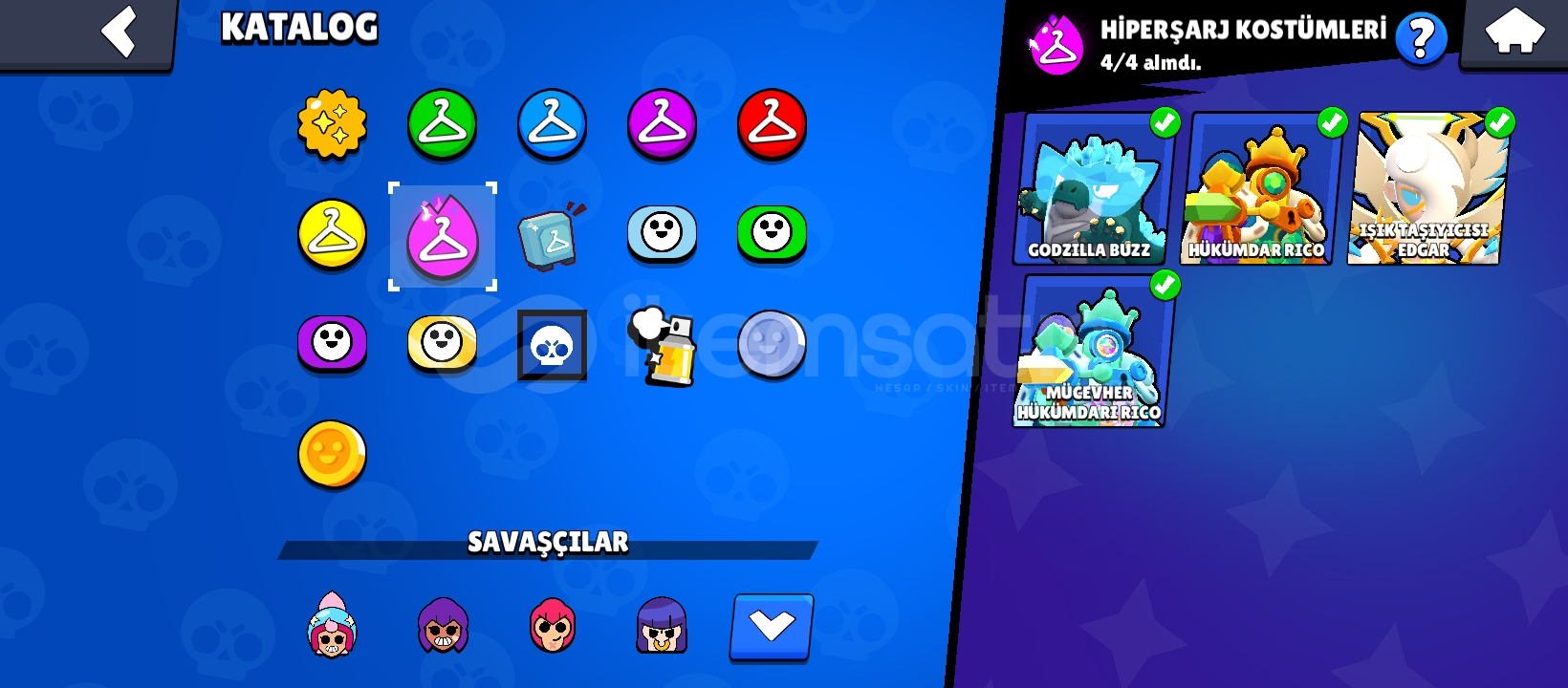 💥 2020 yılından beri aktif olarak oynadığım Brawl Stars hesabımı satıyorum.🔹 69.200 kupa🔹 41 karakter 1000 kupada🔹 71 Ender, 75 Süper Ender, 57 Destansı, 6 Gizemli, 5 Efsanevi kostüm🔹 155 elmas, 5150 altın, 2600 kostüm parası, 17.000 güç puanı🔹 Hesapta birçok nadir emoji ve koleksiyonluk skin bulunmaktadır🔹 Birçok kez Brawl Pass a&ccedi...
