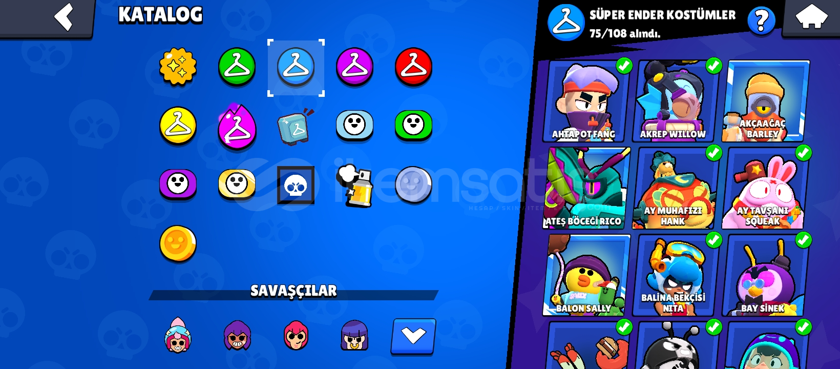 💥 2020 yılından beri aktif olarak oynadığım Brawl Stars hesabımı satıyorum.🔹 69.200 kupa🔹 41 karakter 1000 kupada🔹 71 Ender, 75 Süper Ender, 57 Destansı, 6 Gizemli, 5 Efsanevi kostüm🔹 155 elmas, 5150 altın, 2600 kostüm parası, 17.000 güç puanı🔹 Hesapta birçok nadir emoji ve koleksiyonluk skin bulunmaktadır🔹 Birçok kez Brawl Pass a&ccedi...