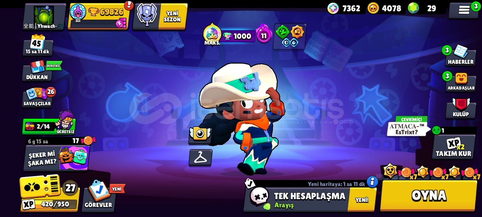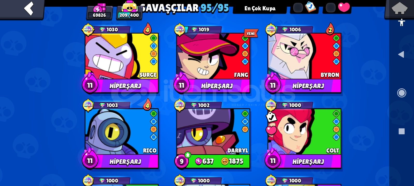 Para lazım 110 destansı 100 Ender kostüm var bir karakter eksik şöhret seviyesi yüksek sayılır elmas yok fazla