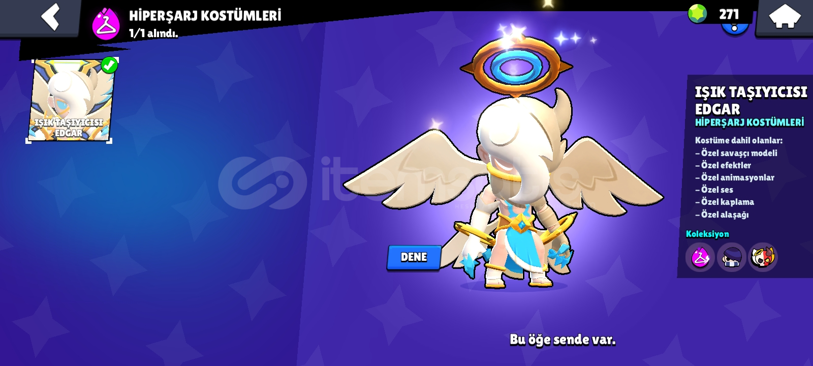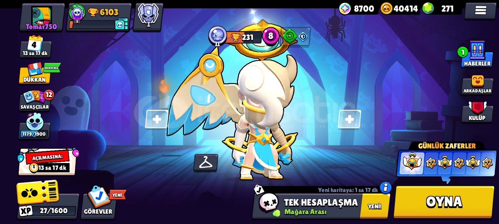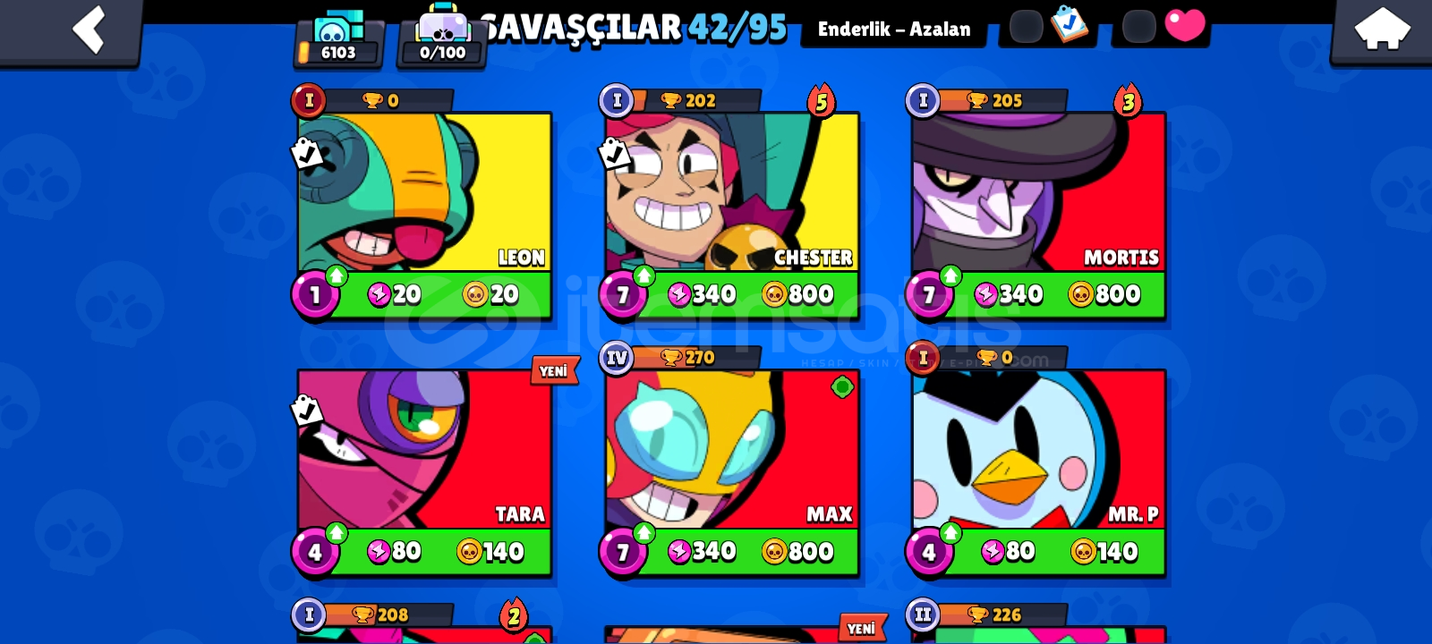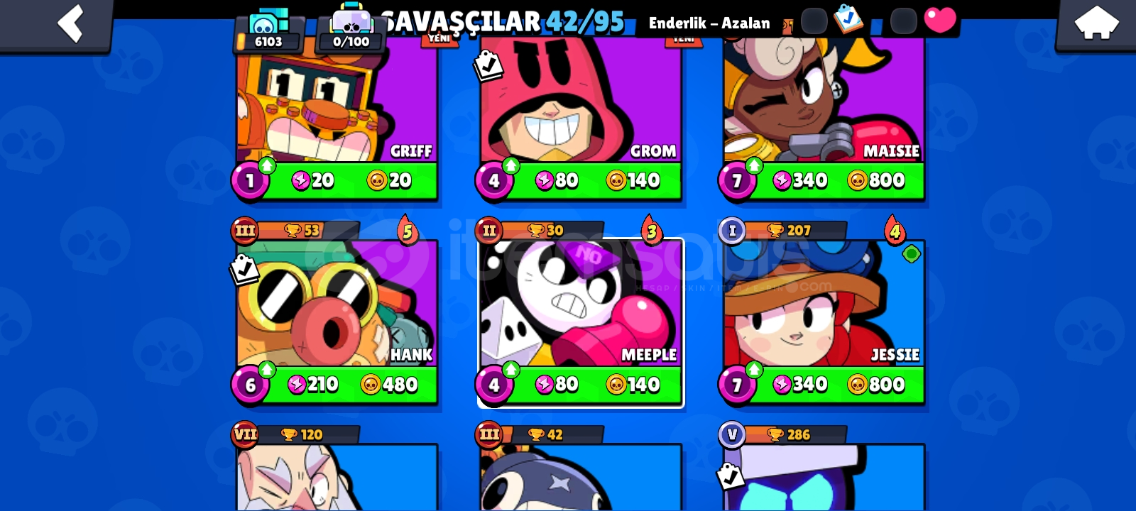 42 Karakter ve 6100 kupa içinde güzel kostümler var hiper şarj Edgar efsanevi 8 bit kostümü 40.000 altın 271 elmas 11.000 yükseltme şeyi çok güzel bir hesap