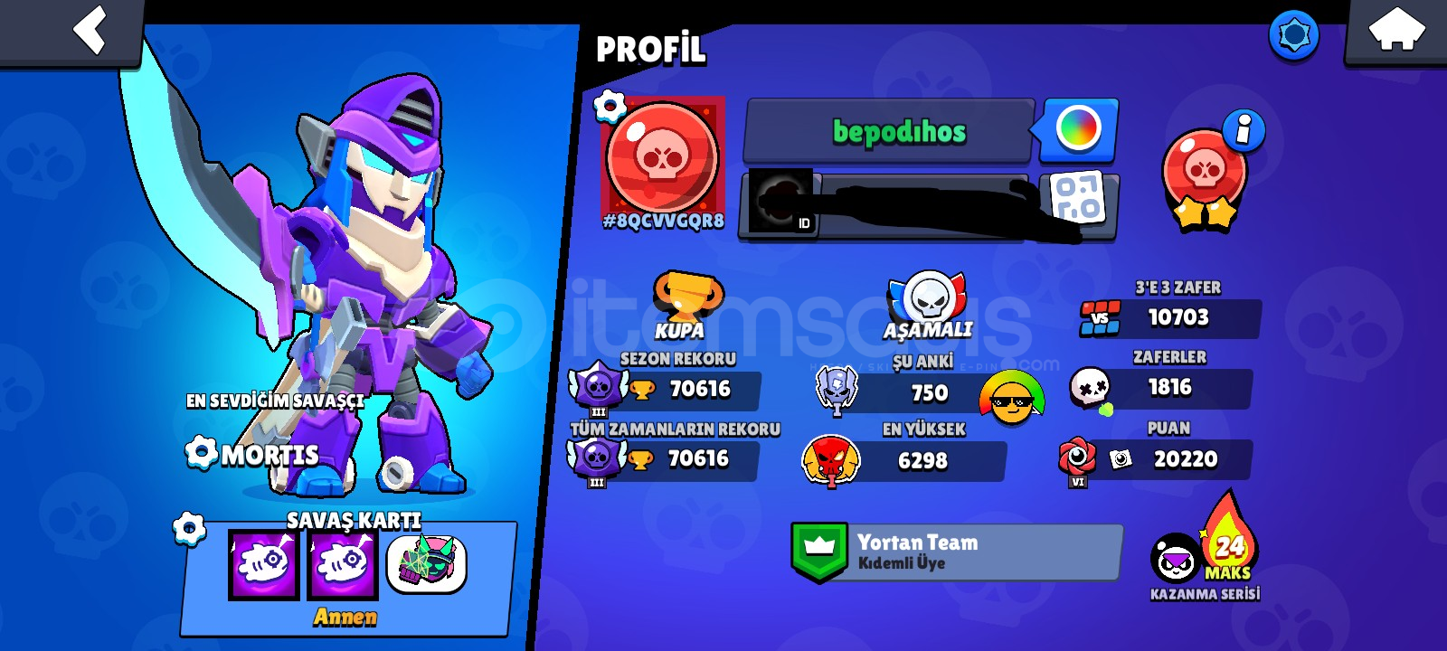 Hesaba 204 gün üst üste giriş yapılmıştır telefon numarası bağlı değildir e posta ile verilecektir en düşük karakter seviyesi 7 mars şöhreti 2 vardır 260 270 arası kostüm var hesapta pazarlık vardır