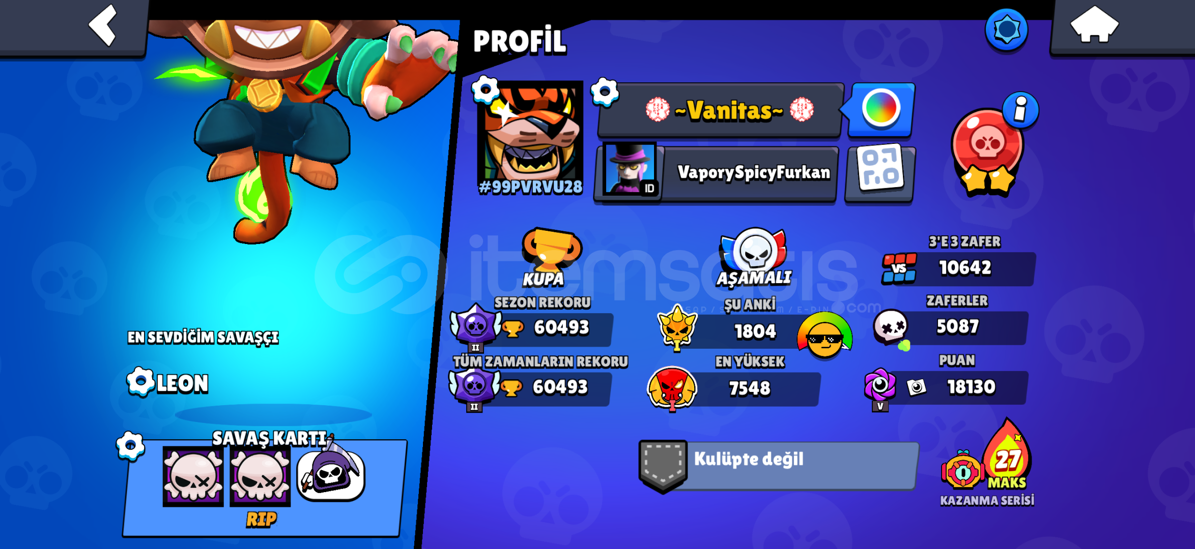 Hesapta koruma aktiftir değişimi olucaktır gmail değişimi yapılacaktır Hesapta 702 Elmas mevcuttur 97 karakter 15 efsanevi köstüm vardır eski sezon hesabı bidaha gelmicek köstümler mevcuttur hesapta Nadirlik abidesi alıcısını üzmez hesap şimdiden alıcısına hayırlı olsun pazarlık makul bir şekilde vardır Site aracımızdır.