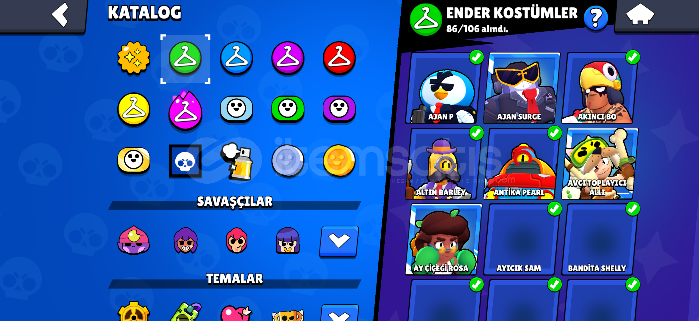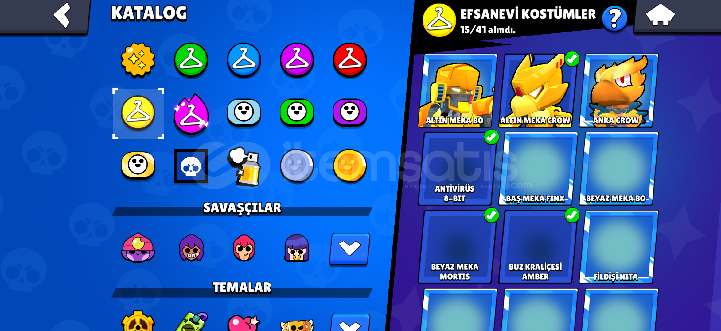 Hesapta 702 Elmas mevcuttur 97 karakter 15 efsanevi köstüm vardır eski sezon hesabı bidaha gelmicek köstümler mevcuttur hesapta